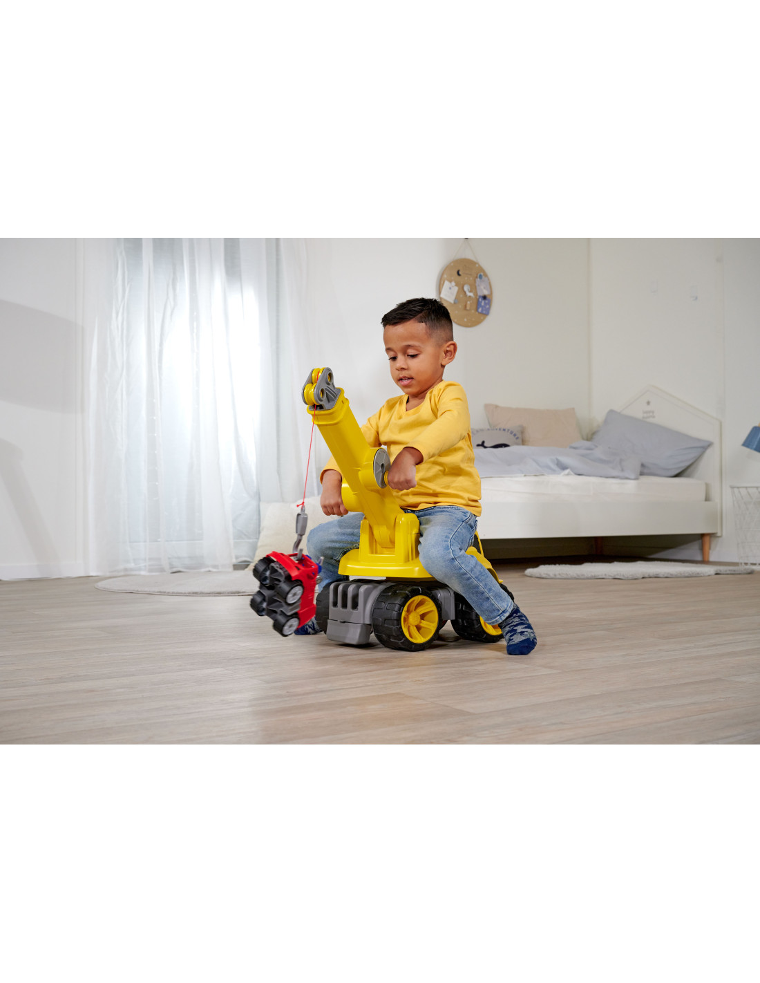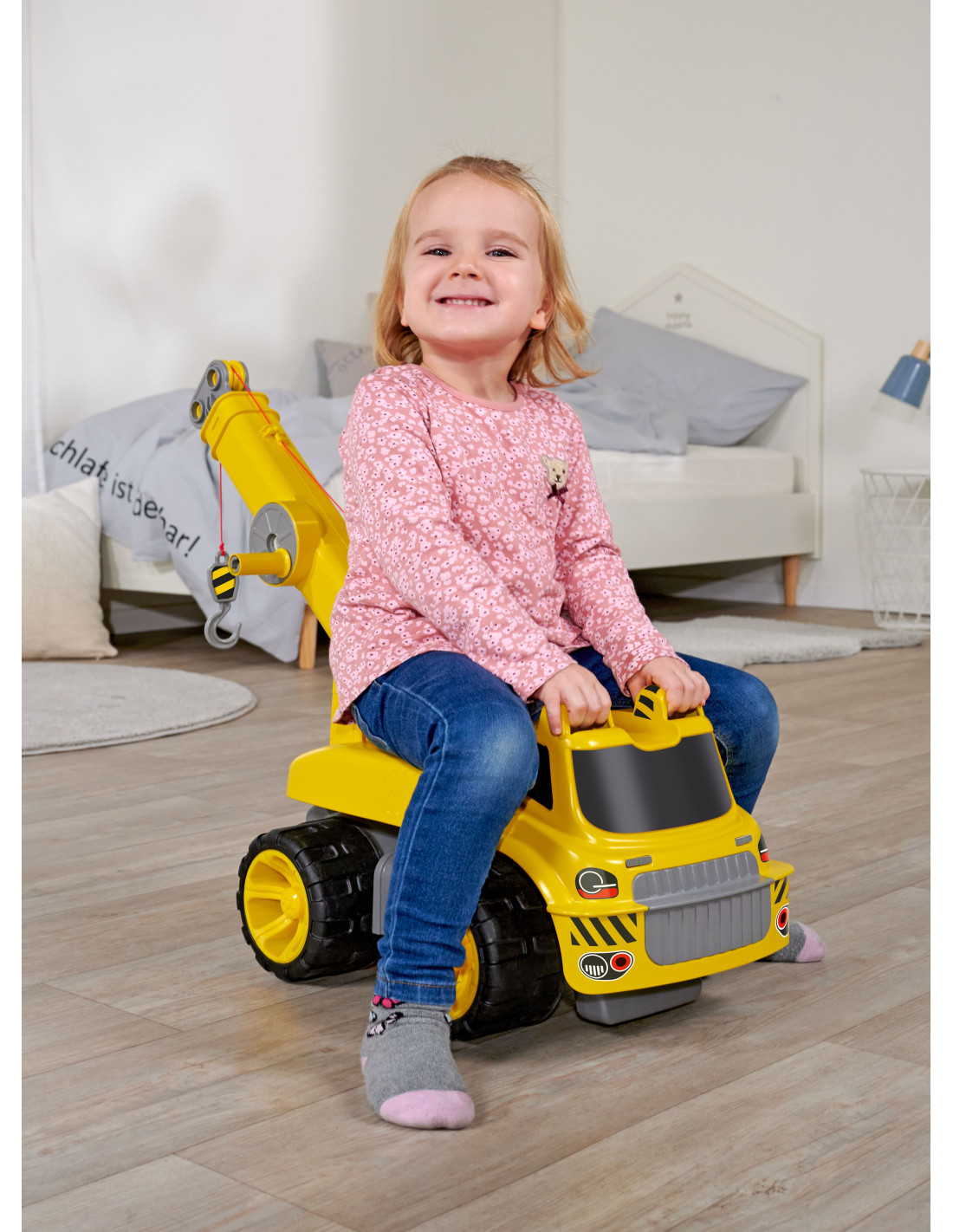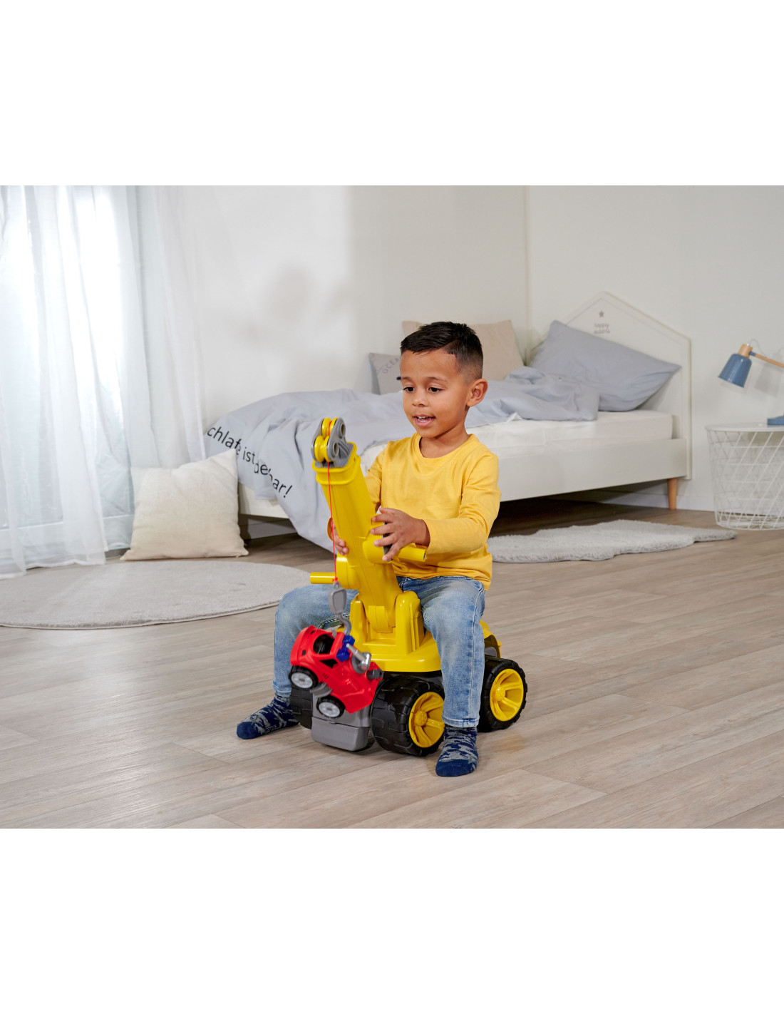 The Ride-on Crane is an excellent toy from the BIG brand For both indoor and outdoor play. The highest quality on the market! German durability and precision. A perfect gift idea for any toddler. This ride-on will delight both boys and girls. Designed with the safety of the youngest in mind, the ride-on has a large, comfortable seat. The crane rotates 360 degrees around its vertical axis. The crane can safely lift objects up to 450 grams . This will stimulate your child's imagination and improve their motor coordination . The fun will be endless!