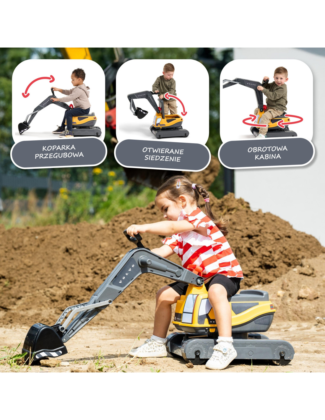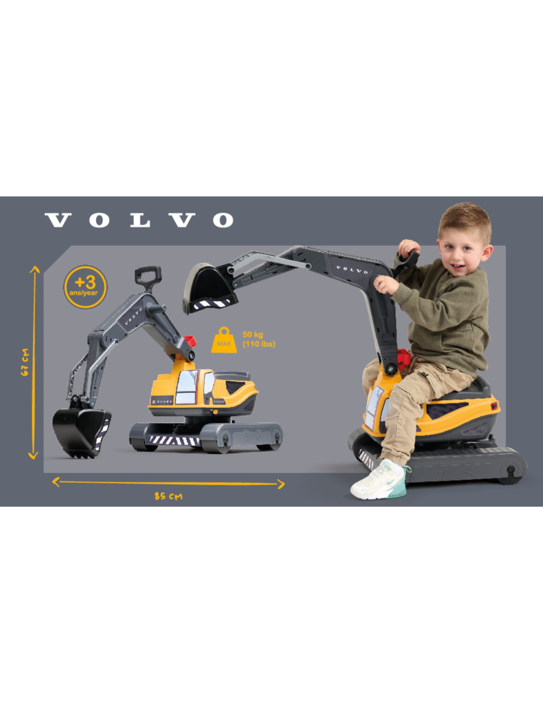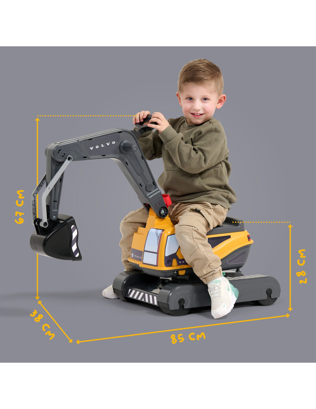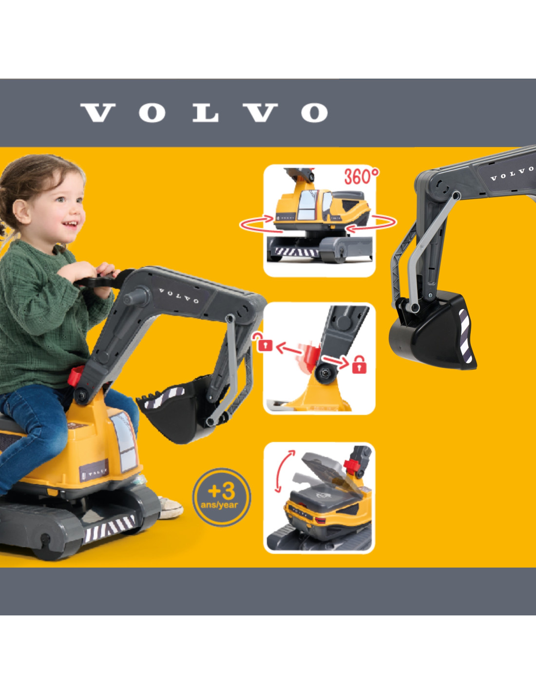 A realistic Volvo excavator from FALK. Every detail has been designed with vision and care, and the excavator faithfully resembles the real thing. The Volvo excavator boasts a very solid construction and high-quality, durable materials. The cab rotates 360°, and the excavator bucket rotates. This toy is highly maneuverable and easy to operate—perfect for playing in the garden or on the beach.