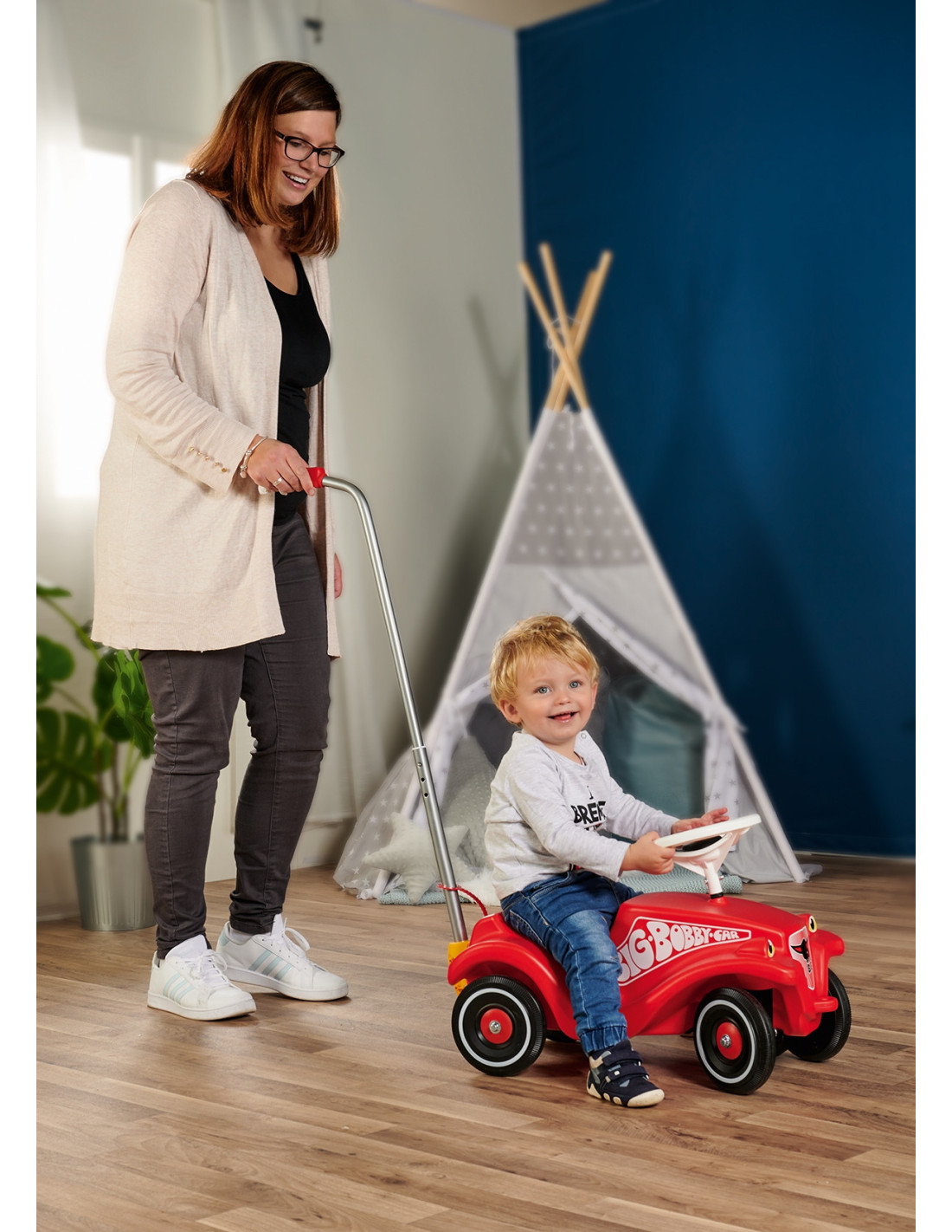 This push bar for ride-on vehicles from Big , a renowned manufacturer of children's toys, will be the perfect complement to your child's ride-on vehicle. This 3-position adjustable push bar for BIG Bobby Car ride-on vehicles is a very useful feature when you want to control the actions of a young driver or when little legs get tired during a long walk. The push bar is easy to install – it is attached using the trailer mount. It fits models from the BIG Bobby Car series equipped with a trailer mount.
