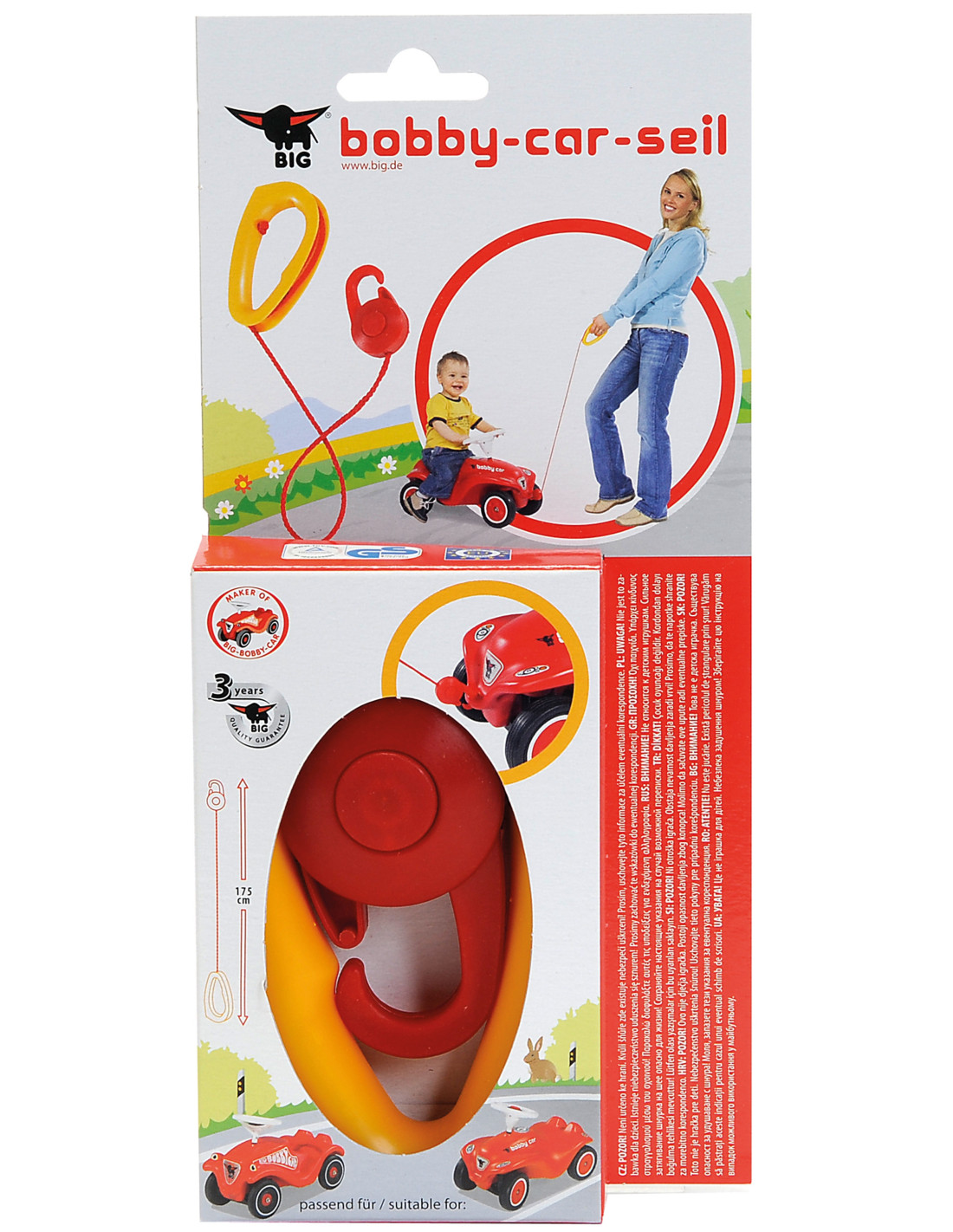 The BIG Red Tow Rope with Yellow Handle fits all BIG Bobby Cars equipped with a tow bar. It also fits easily into a pocket when not in use.