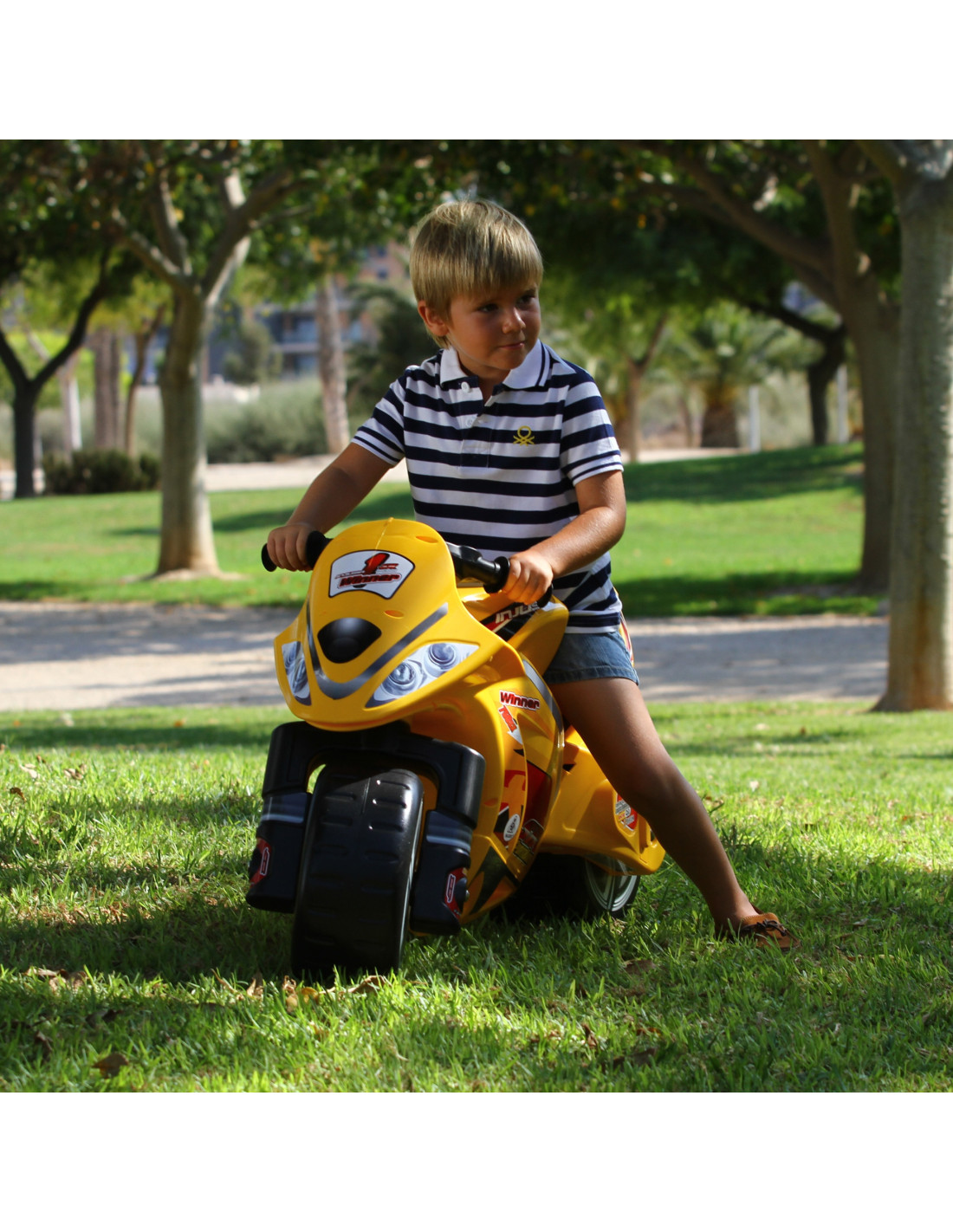 The Winner Running Bike from Spanish ride-on toy manufacturer INJUSA is a great gift idea for children aged 18 months and up . The contoured seat and steering wheel with a swivel front wheel make riding comfortable and safe . Wide wheels add stability, and the sporty design attracts attention.