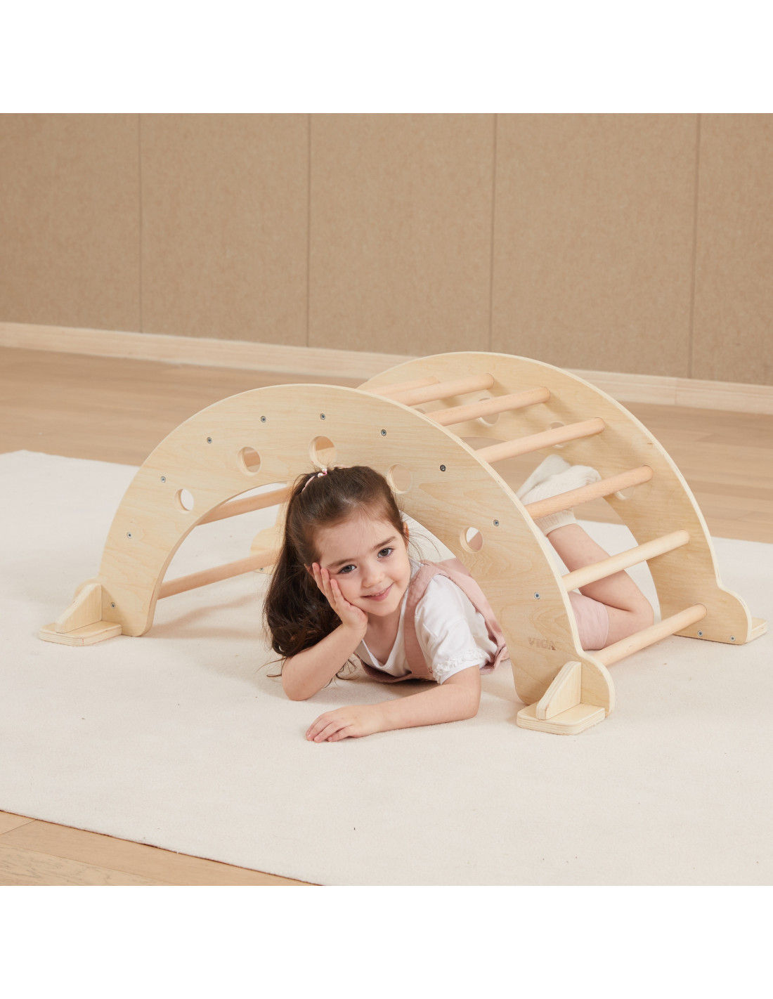This VIGA swing will draw your little one into the fun , tapping into their endless reserves of energy! The design and functionality of this swing perfectly align with the Montessori philosophy. It's designed for balanced play and supports the development of motor skills . Together with the climbing triangle and wooden slide, it can become a part of a home playground.