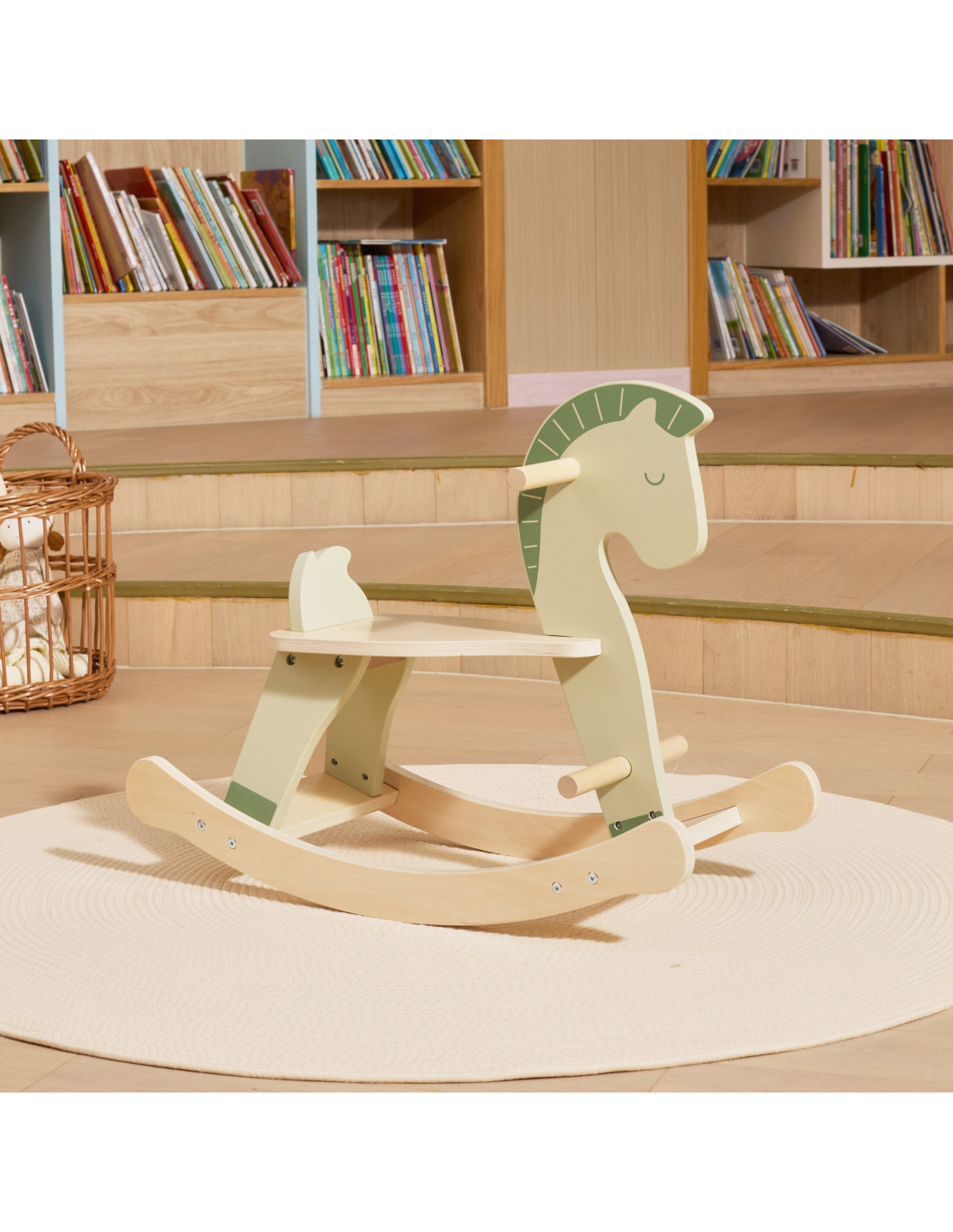 Discover the Rocking Horse , which combines fun with balance and coordination training for children aged 12 months and up. The green horse provides comfort on every ride, perfect for gentle adventures at home. Stable support and easy-to-grip handles help your child feel confident and secure. Thoughtful footrests further support balance , and the charming design inspires creative play .