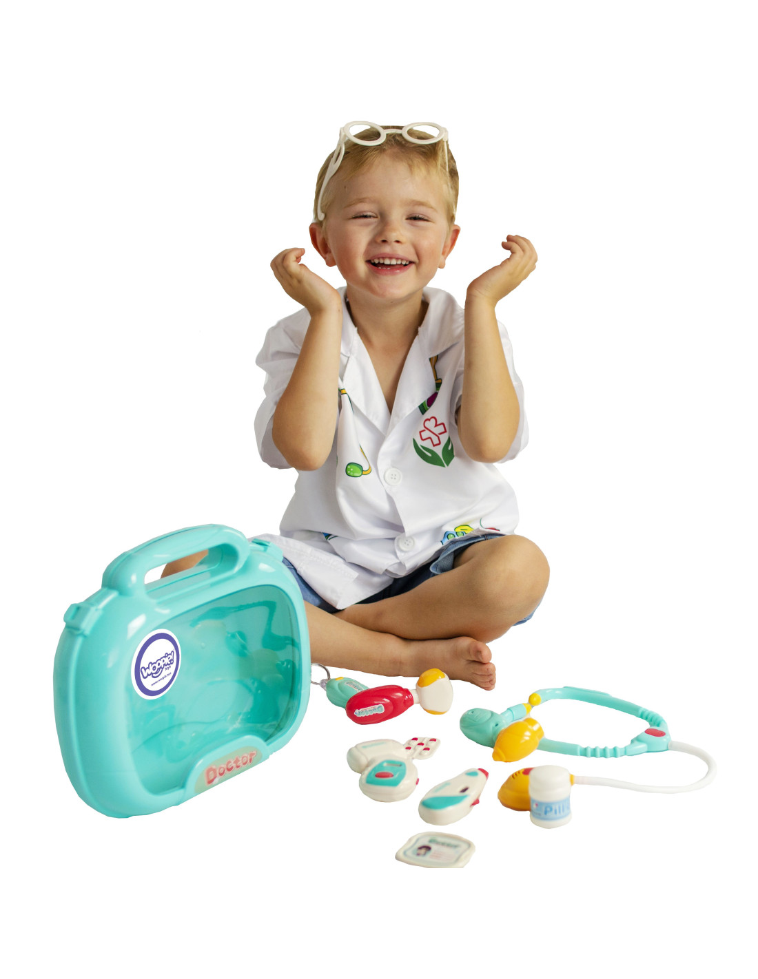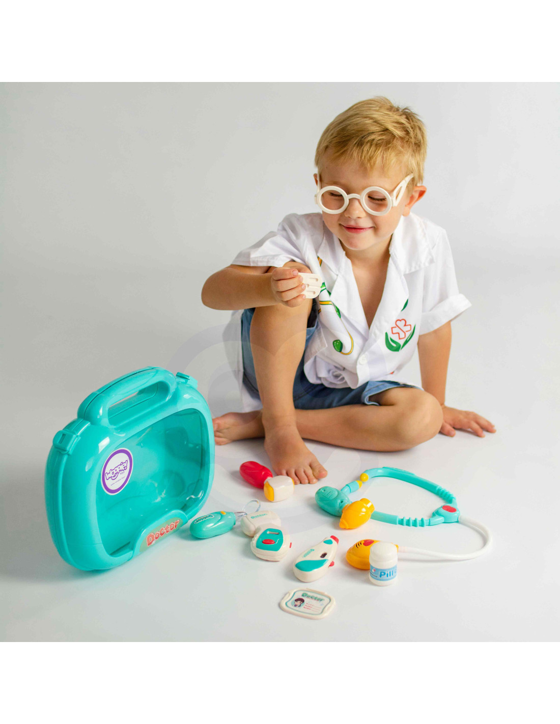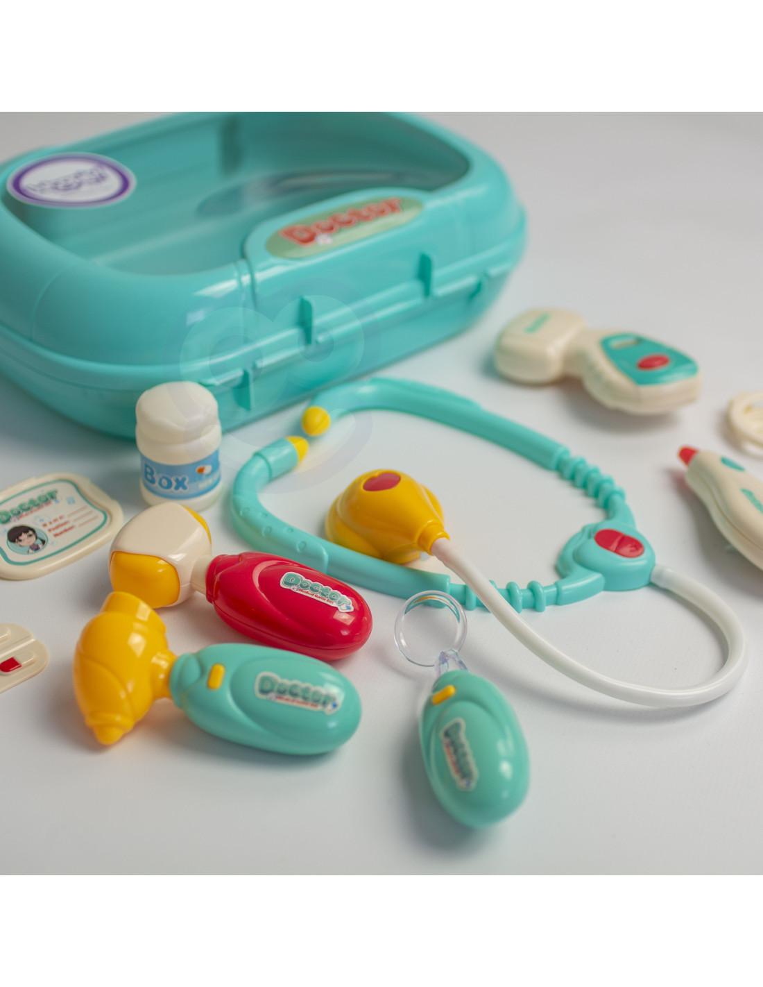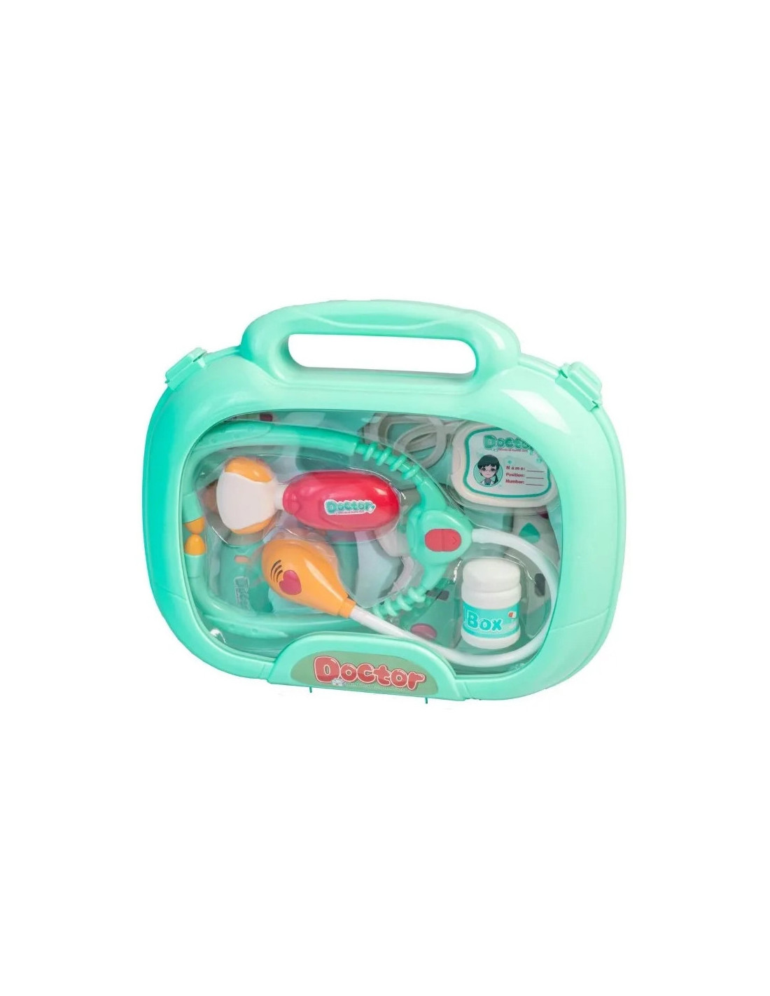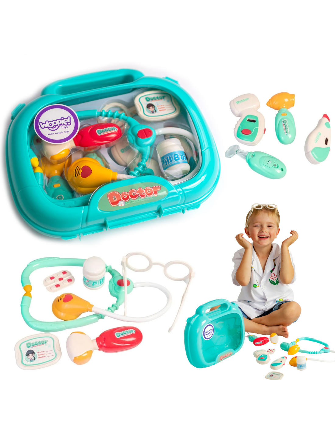 The Little Doctor Set from Woopie is the dream of every little child who wants to become a doctor! The set includes numerous treatment tools, including a stethoscope , a blood pressure monitor , a thermometer , and many other accessories. Each set has a special function that will make your child feel like a real doctor . The stethoscope has wide, comfortable headphones and a light that pulsates during the examination and makes a heartbeat sound . The blood pressure monitor displays three measurements and has a backlit screen . The thermometer displays one of three temperatures (adjustable with a dial) and highlights the result , while the otoscope and handheld mirror have lights . All this is organized in a convenient carrying case with a handle. Children can exercise their imagination and take on the role of a doctor or patient!