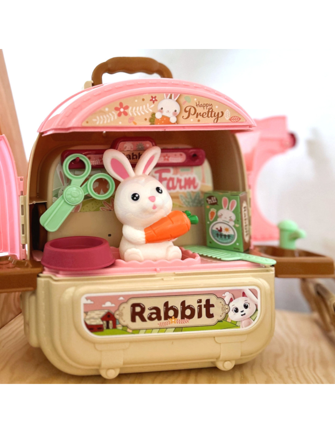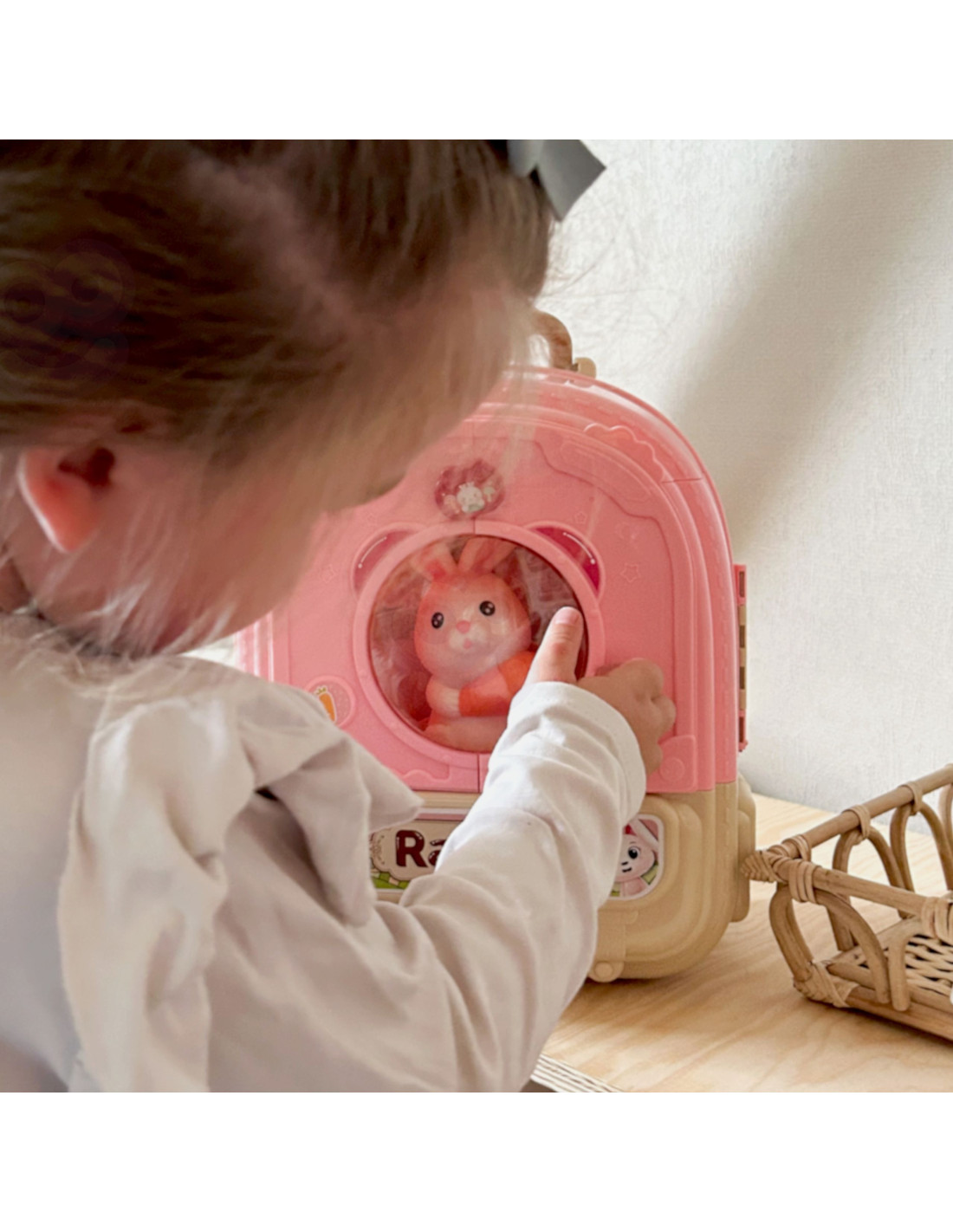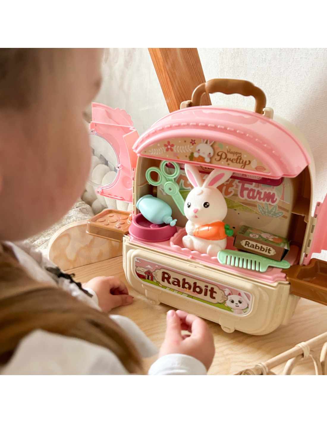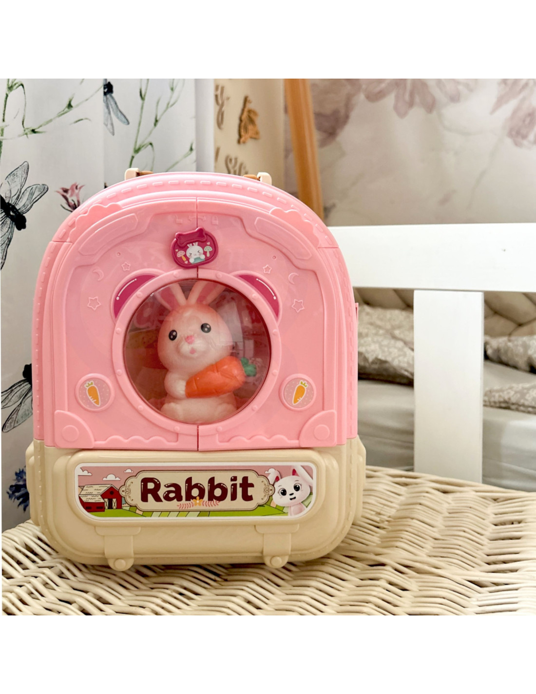 The Woopie 3-in-1 Bunny Backpack offers a world of exploration and creativity, making it the perfect companion for young explorers. Take your Bunny on a farm adventure and discover new furry friends. Grow vegetables and discover the joy of caring for and harvesting your own. Give your bunny a refreshing bath and make sure he's clean. Visit the cozy dog house and share some love with your furry companions. Learn the importance of caring for your furry friends with a delicious meal.