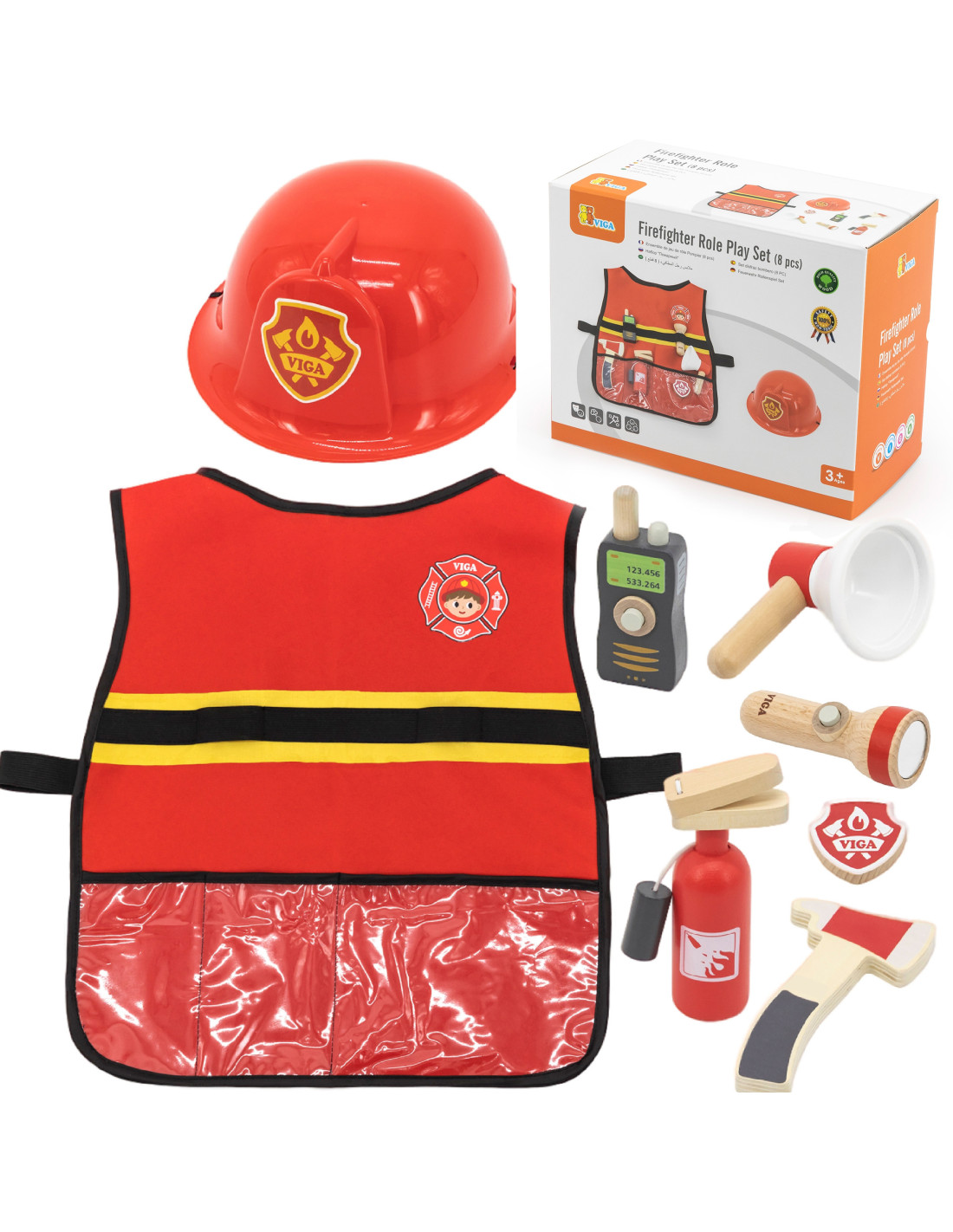 VIGA Little Firefighter Set Vest + Wooden Accessories 8 pcs.