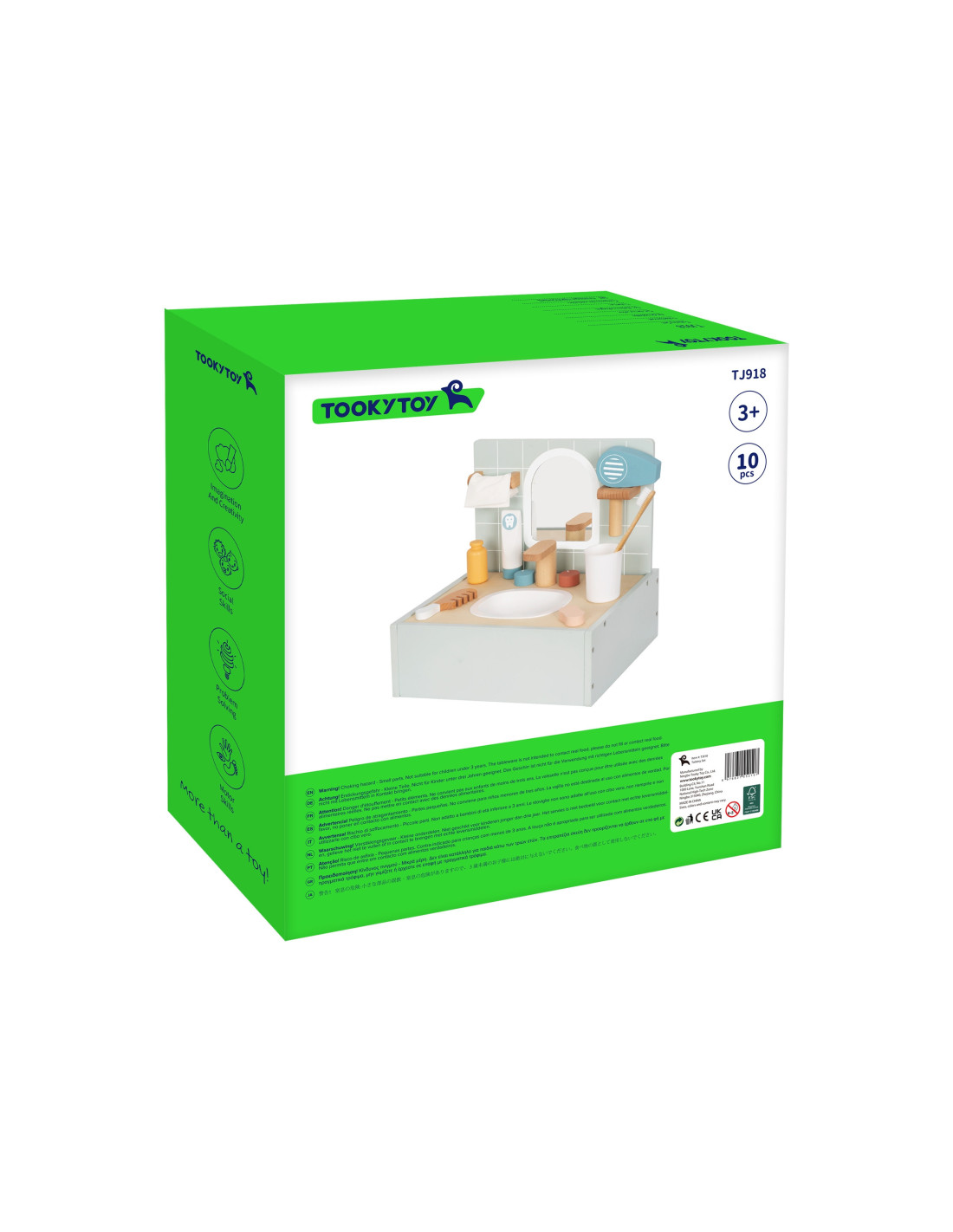 Transform daily bathroom rituals into creative play with the Toilet Bathroom set from Tooky Toy . This charming, miniature set includes everything you need to role-play bathroom scenes , including a mirror , a pretend sink with faucet , and a collection of realistic accessories . All items are designed to resemble real bathroom accessories, encouraging the development of important hygiene habits . The Toilet Bathroom set is a great way to develop creativity and learn daily habits while providing a unique addition to children's play.