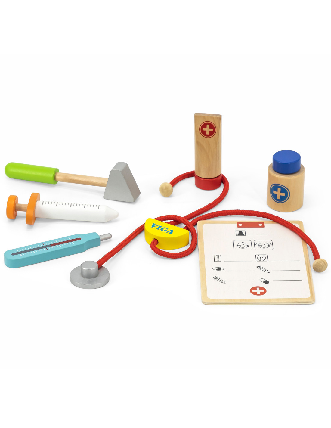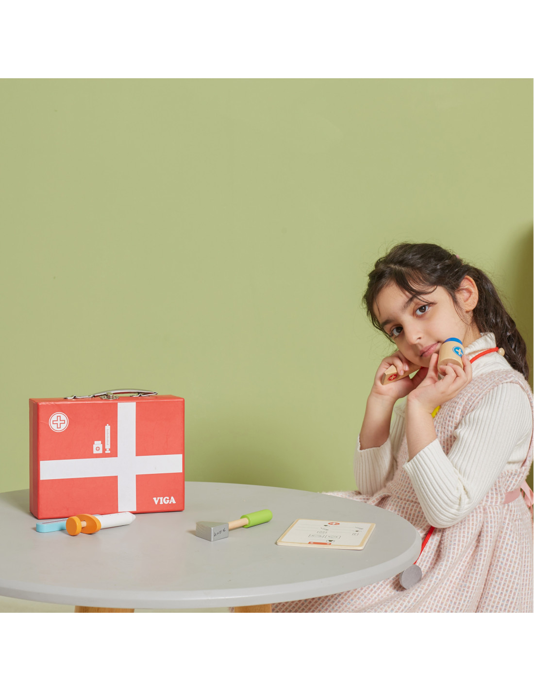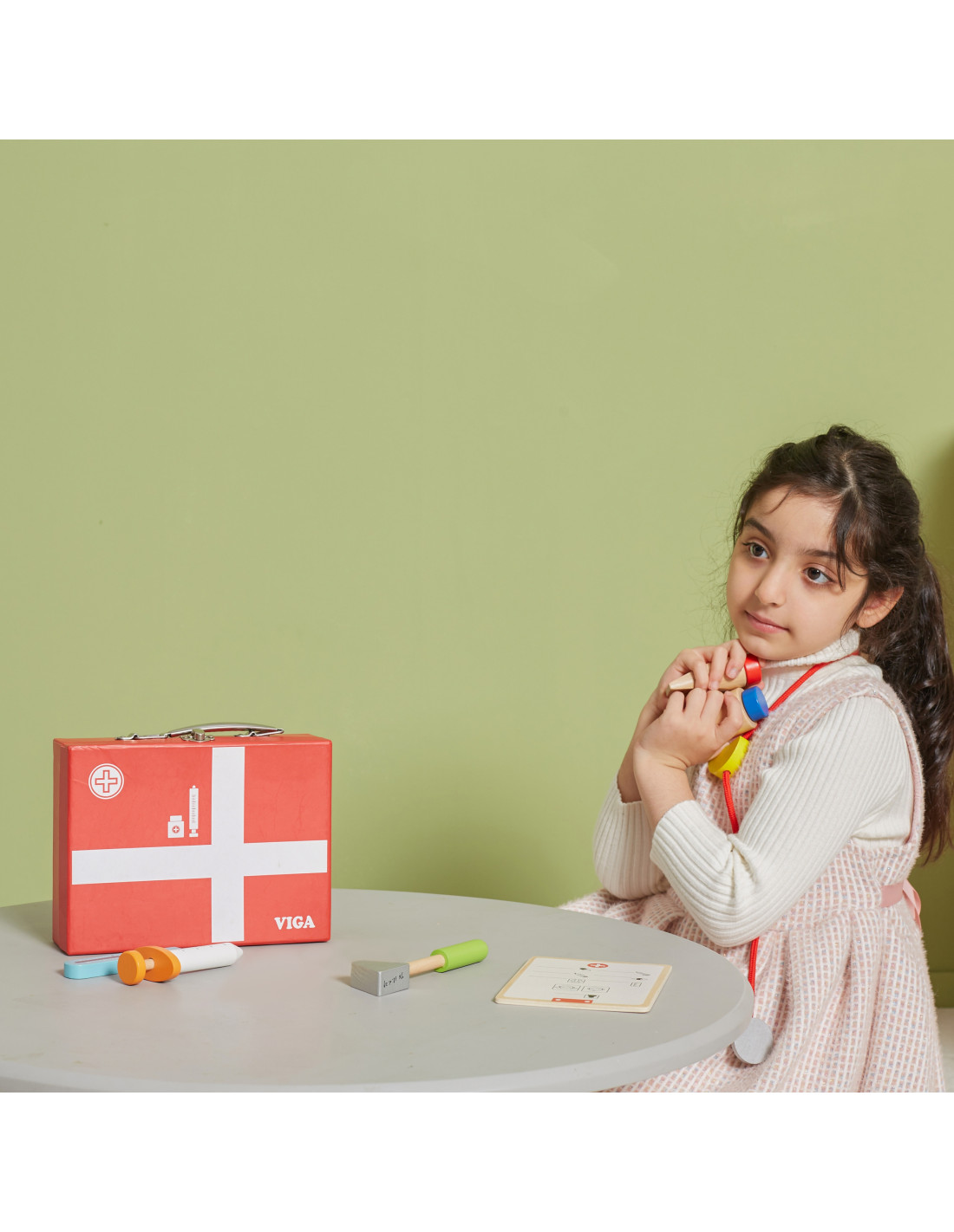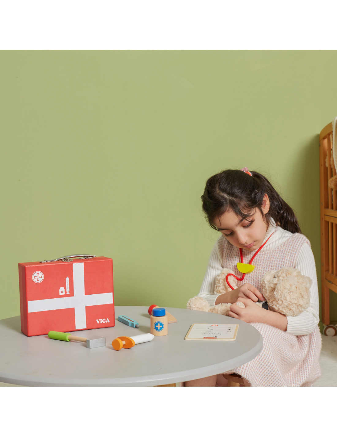 The Viga set includes everything your little doctor needs to play doctor. Future doctors, nurses, and nurses can listen to the heartbeats of patients (teddy bears and dolls) with a stethoscope, "take" their temperature with a thermometer, "administer" injections, and fill out patient records. Playing doctor isn't just a role-playing game; it also teaches empathy and compassion, which are crucial for social relationships. It supports imagination development and teaches problem-solving . The set will help overcome fear of doctors.