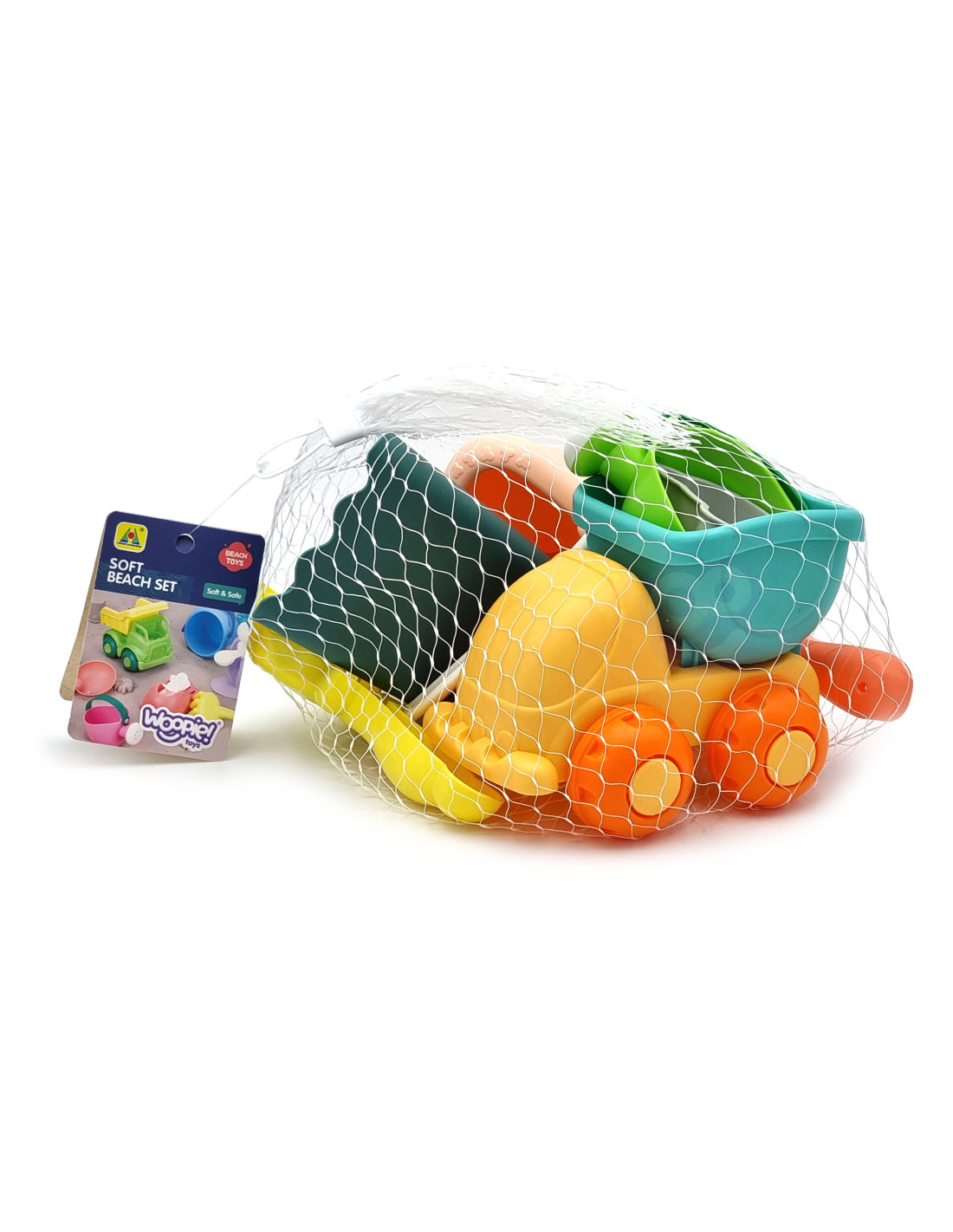 The Sand Bucket Set from WOOPIE is a great addition to the sandbox or even the garden. The set includes 7 pieces : a bucket, a watering can, 2 molds, a shovel and rake, and a toy car. The set features a beautiful pastel design . The bucket and watering can have a convenient carrying handle . Great fun guaranteed in the sandbox , on the beach , or even in the garden !