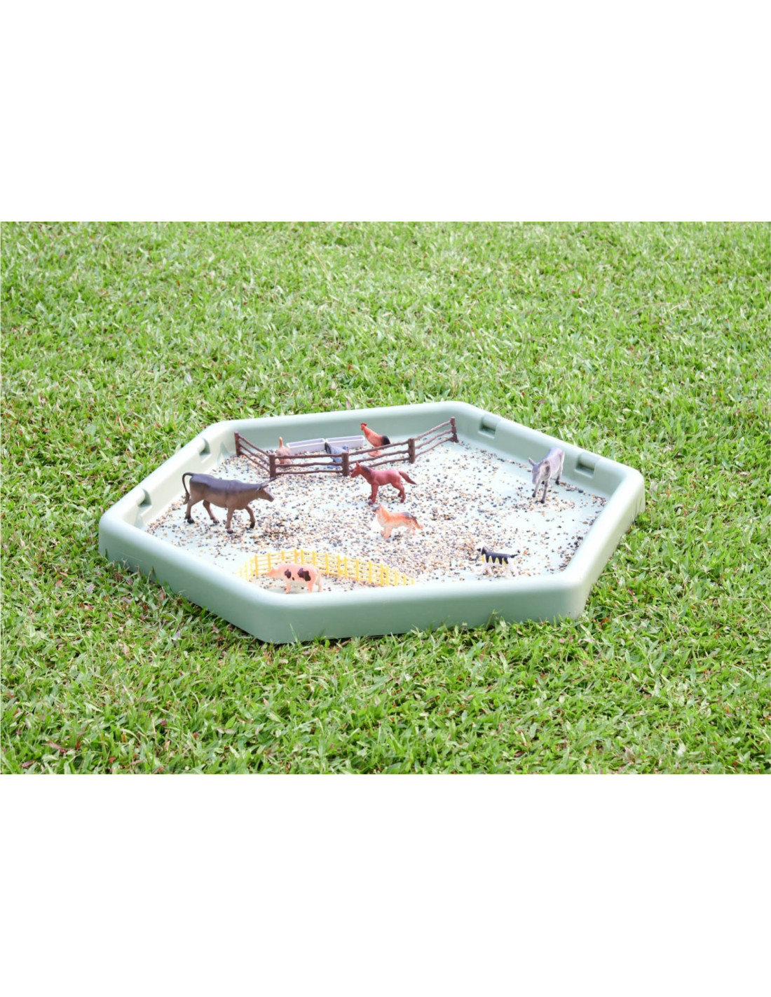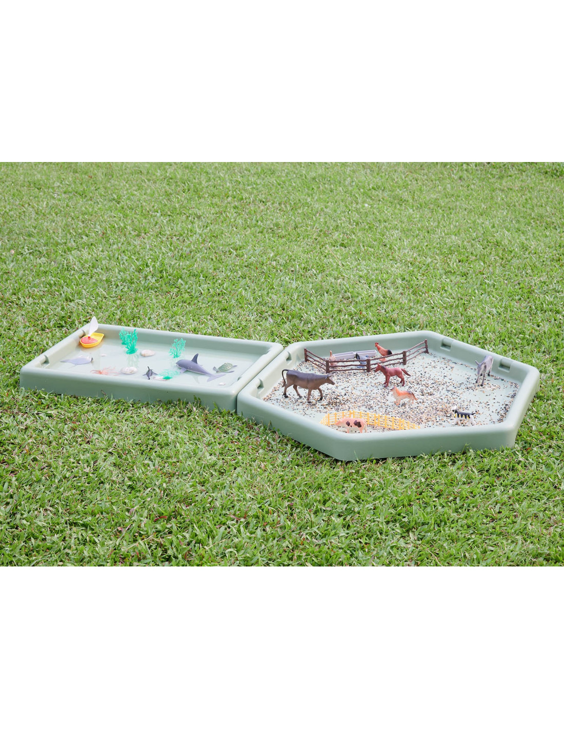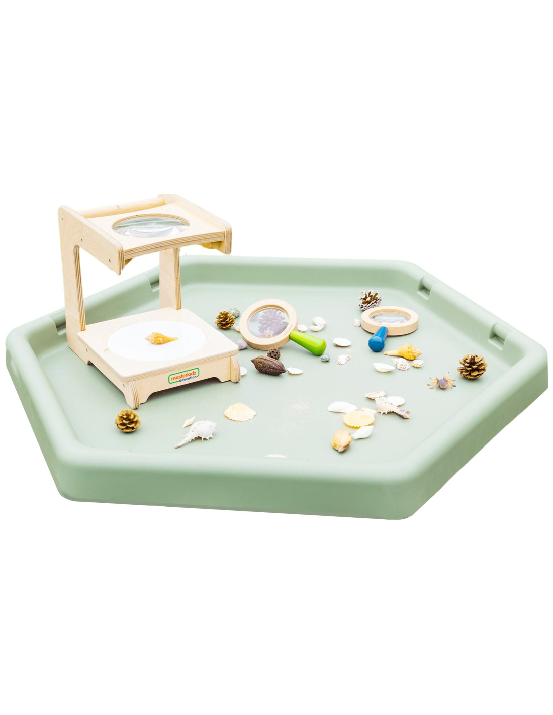 This hexagonal play table is a great tool for developing children's imagination and creativity . Its natural, sage color blends seamlessly with its surroundings, and its large surface allows for free play and exploration. This tray is an excellent choice for parents and caregivers looking for a versatile and practical toy that will provide children with hours of creative play and learning.