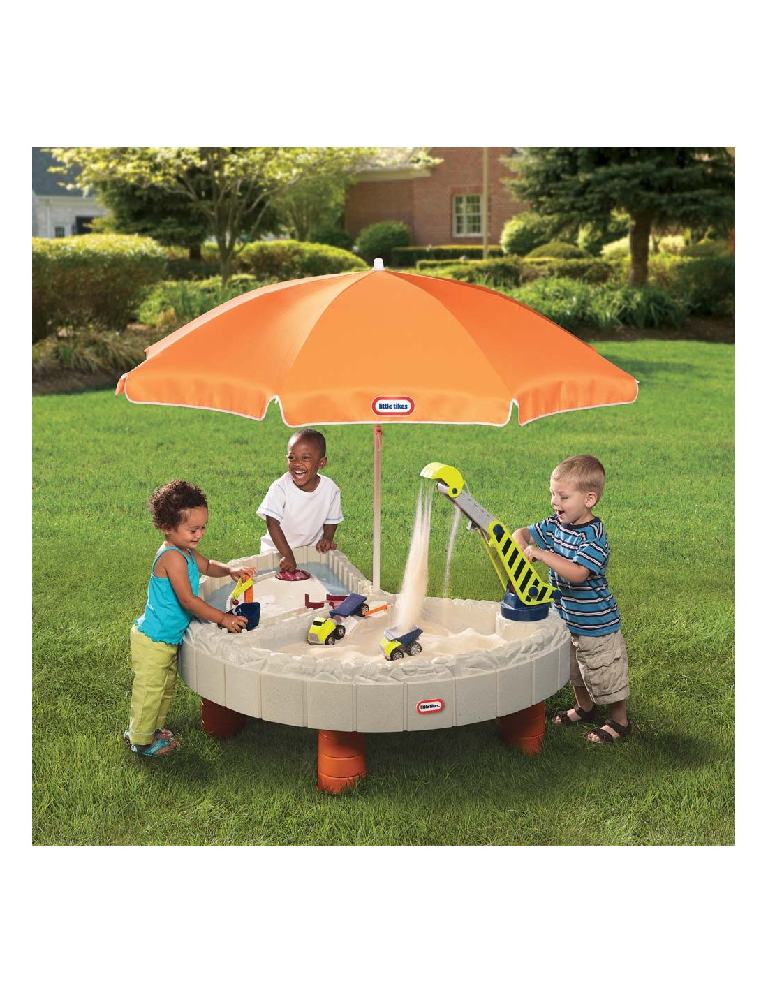 The Construction Site Sandbox with Umbrella, designed by the renowned toy manufacturer Little Tikes, offers every child their own fantastic construction site. This unique table allows for fun with sand and water. The sandbox allows young builders to actively and enjoyably spend time outdoors.