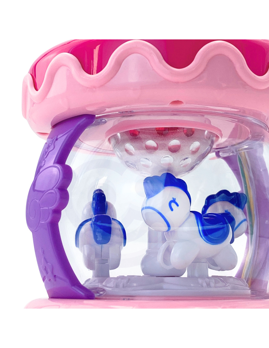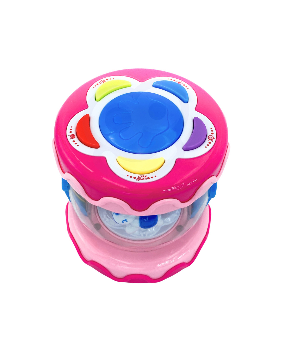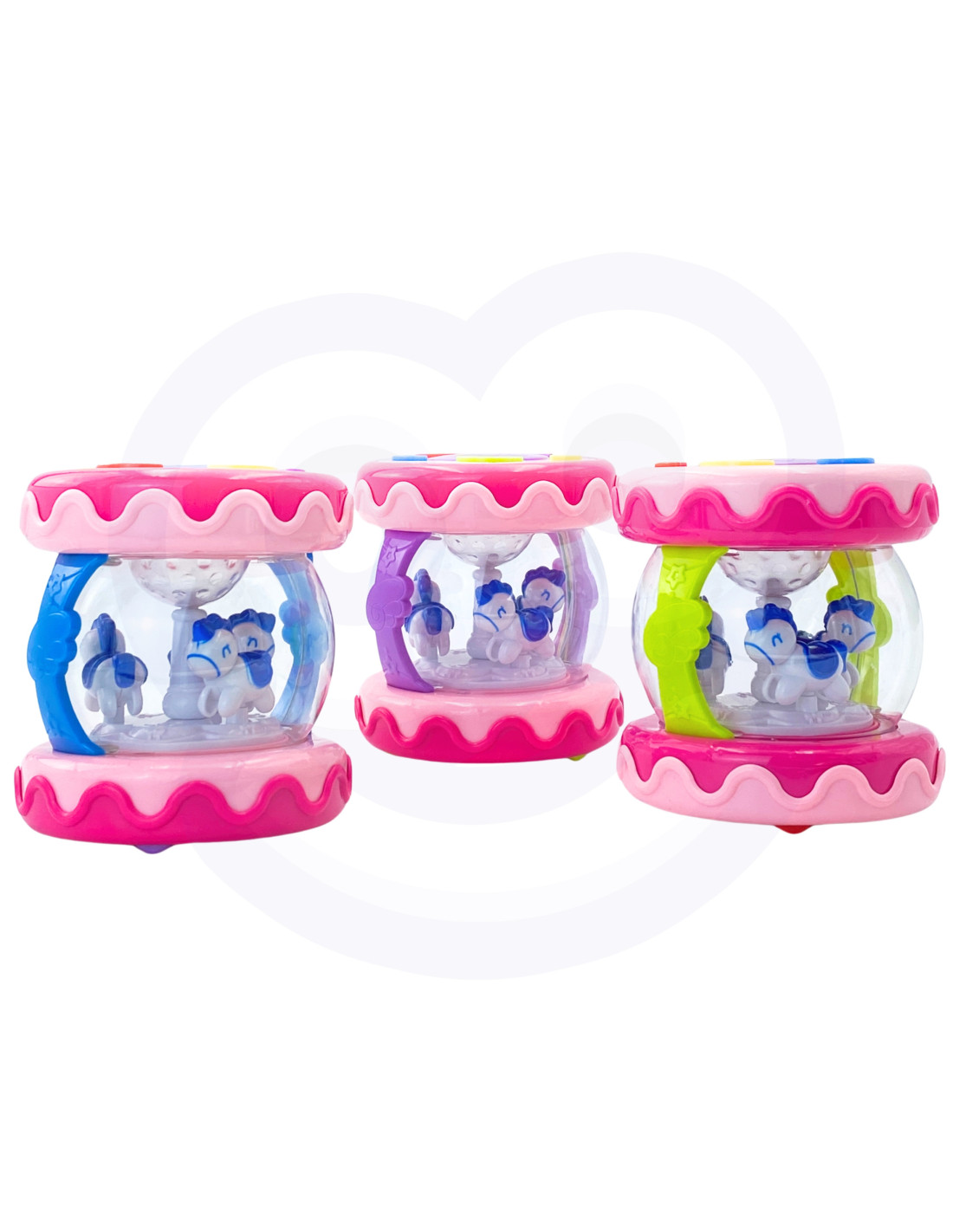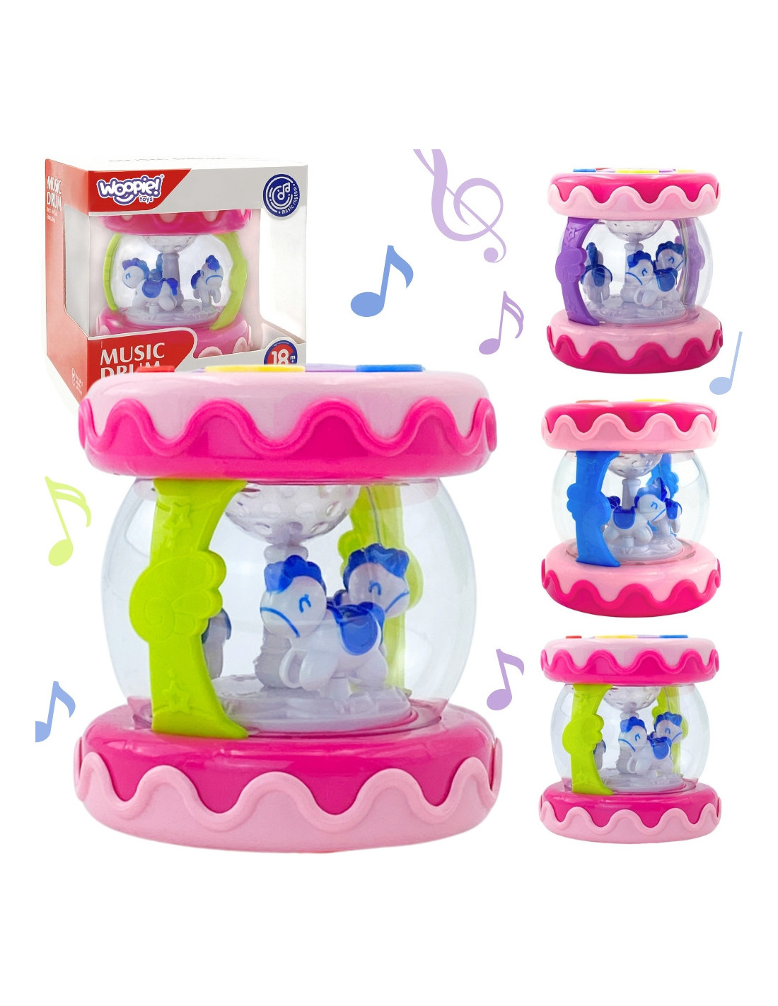 The Musical Drum from WOOPIE is a must-have toy for every child. This toy is primarily designed to develop the senses and also help soothe the baby to sleep. It also functions as a music box with spinning horses inside. It has six sound buttons, including a large drum. Lights flash while playing melodies. At night, the toy acts as a projector – the lights glow and imitate stars. The toy has a sleep mode after 60 seconds without sound. This toy highly develops the child's senses and helps them concentrate for long periods.