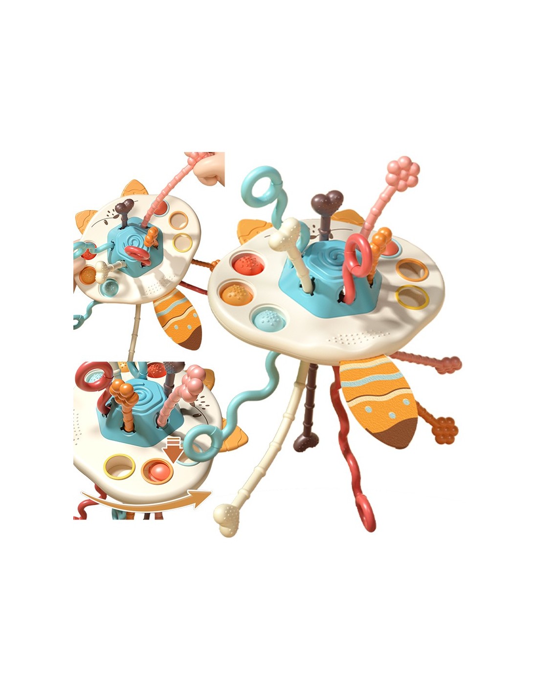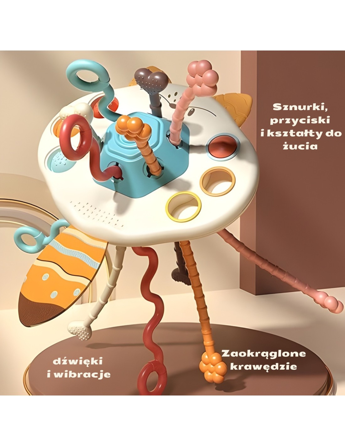 The Montessori Sensory Toy "Tug Toy" Fox Teether from WOOPIE is not only great fun but also an innovative way to support your baby's development . It encourages sensory exploration, focuses on developing coordination and motor skills , and soothes the discomfort associated with teething . The set includes colorful, safe , and easy-to-grasp strings with a variety of textures that encourage action and exploration while providing relief during teething. Pulling the string produces a variety of sounds and vibrations . The toy also features a row of soft buttons that encourage touch and pressing . The elevated position stimulates baby's curiosity and develops dexterity in little fingers. This sensory teether is the perfect gift for a baby that combines entertainment with learning. With it, you can ensure your child's healthy development and hours of engaging play. Provide comfort and development for your little one!