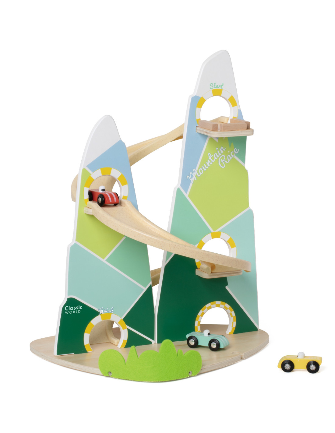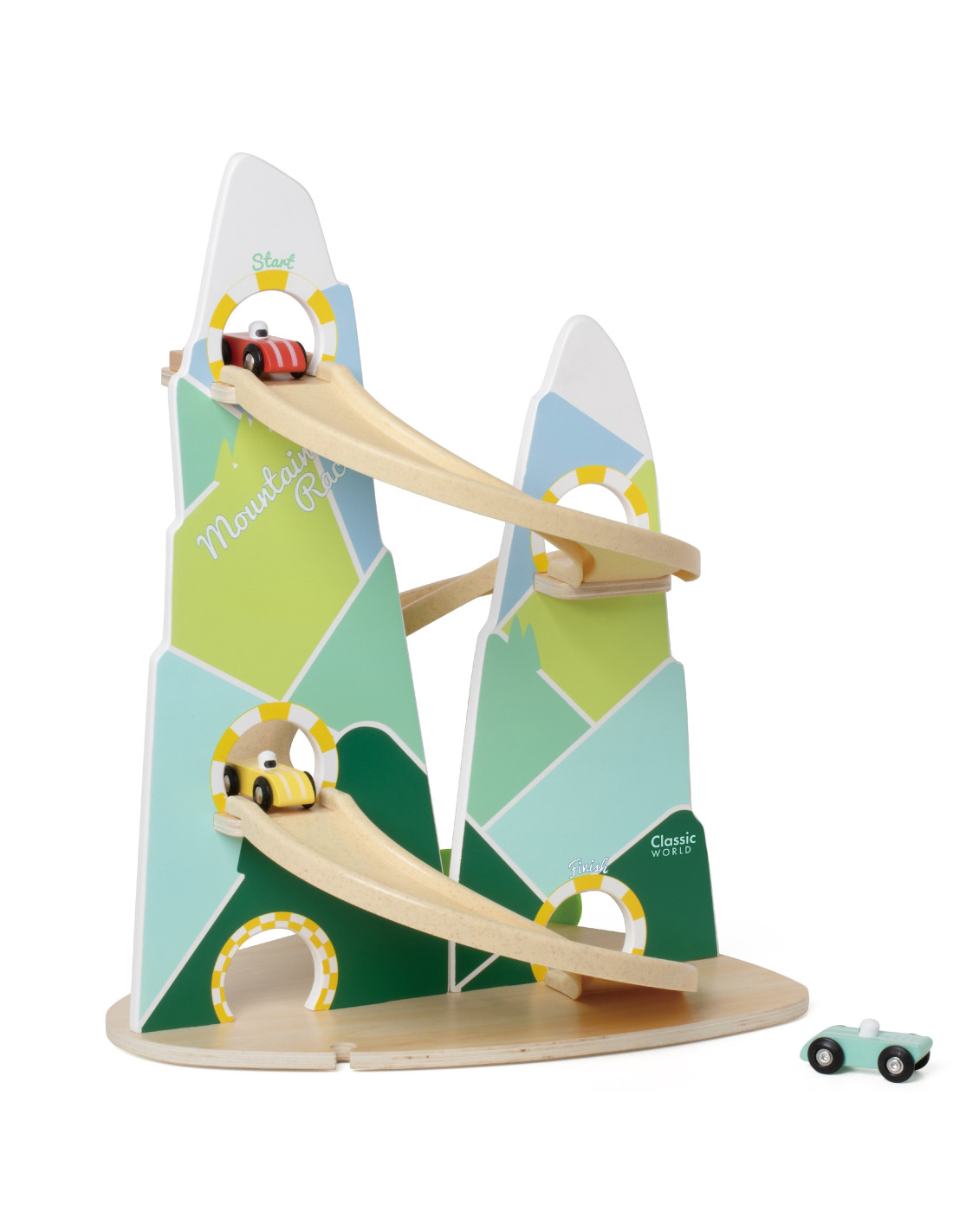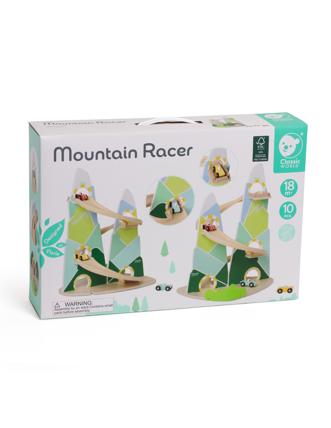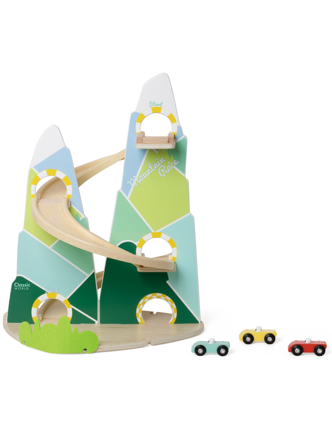 The Wooden Race Track from Classic World is a unique toy that transports children to a world full of racing excitement! Inspired by a beautiful mountain landscape, its unique shape of two mountains will delight every child, while the carefully crafted wooden structure and pastel colors will catch the eye. The set includes three colorful cars that will compete on a track full of curves. Thanks to its safe, edge-free design, the track is perfect for even the youngest. It's a game that not only entertains but also teaches logical thinking, supports the development of hand-eye coordination, and fosters competition in a healthy atmosphere.