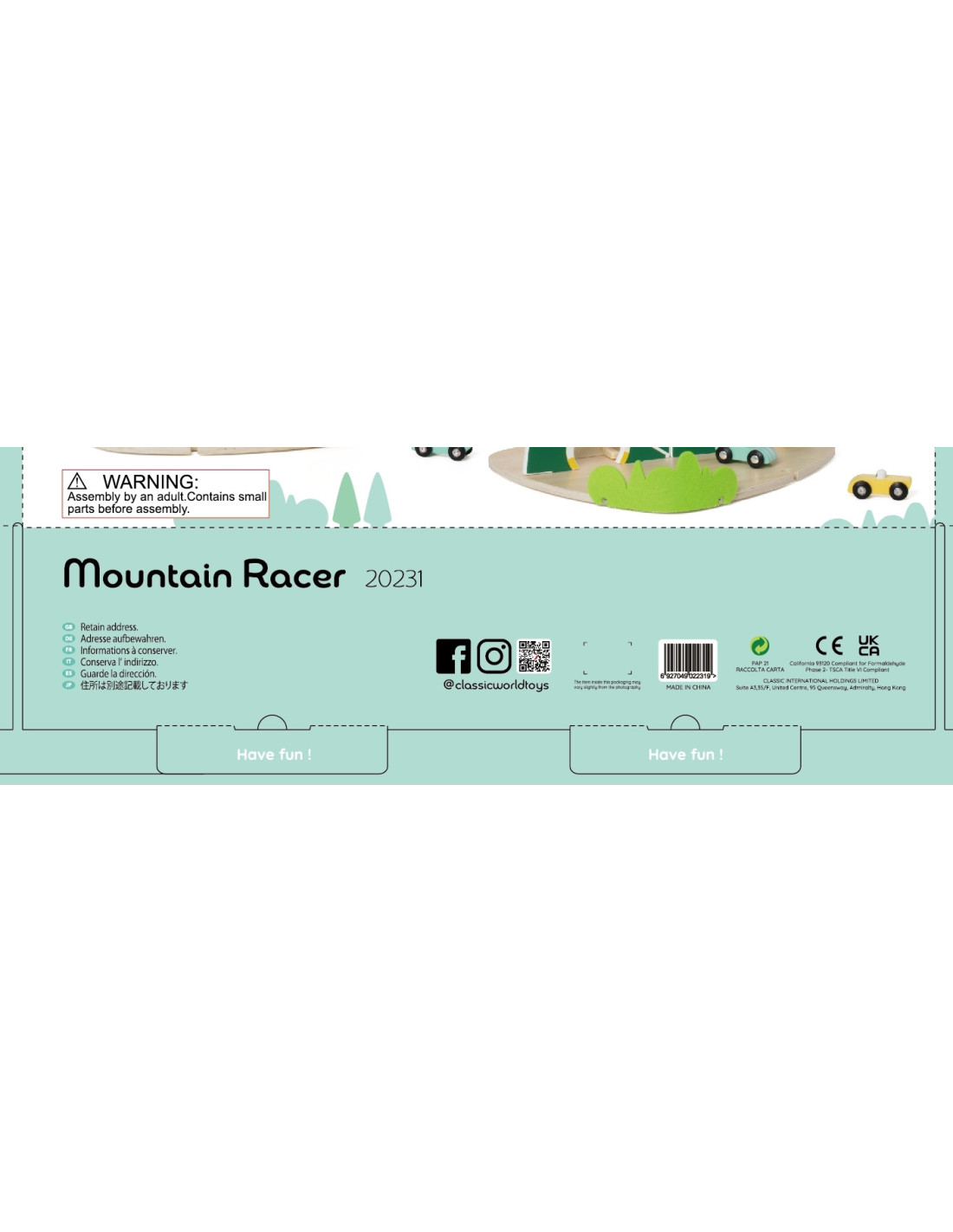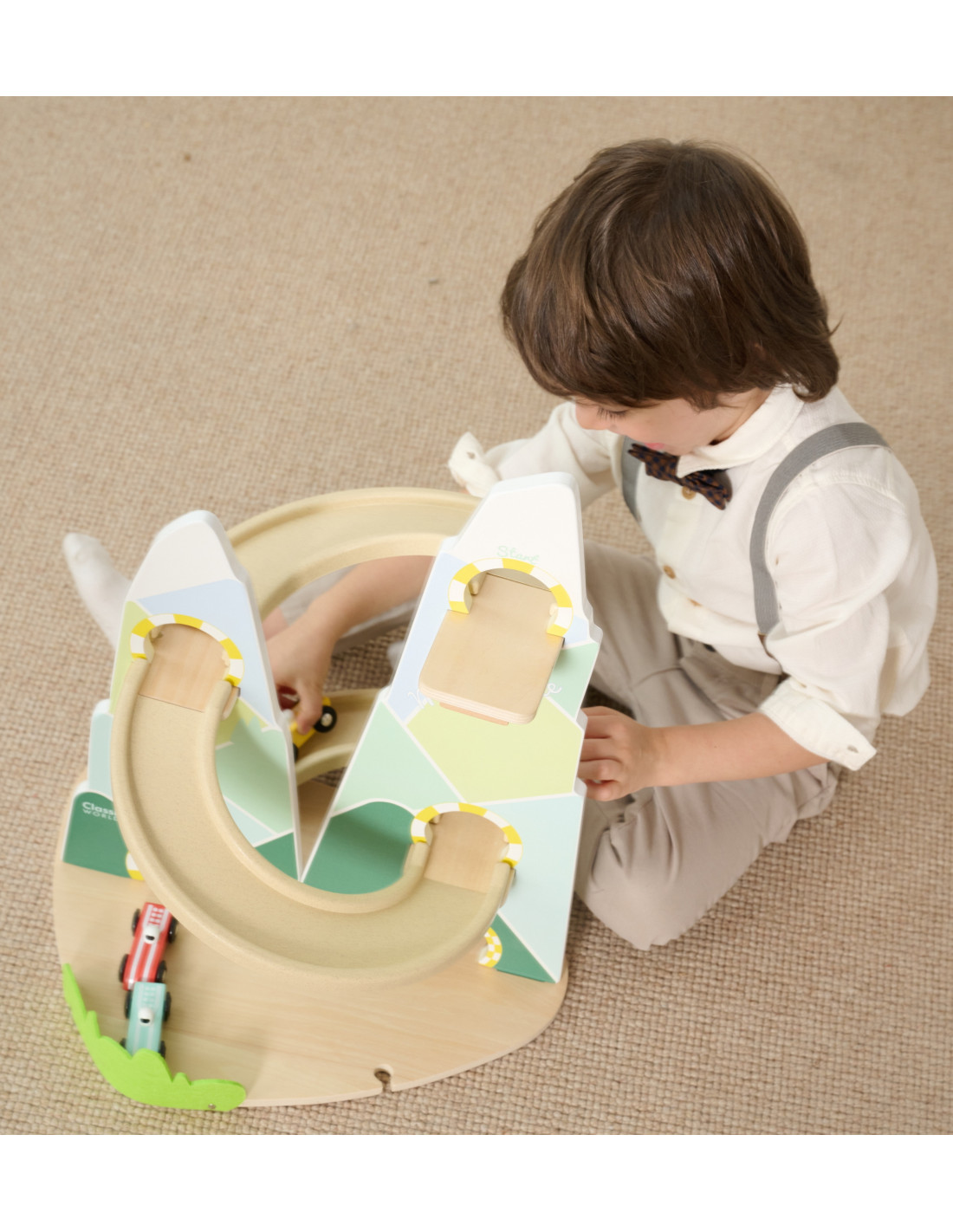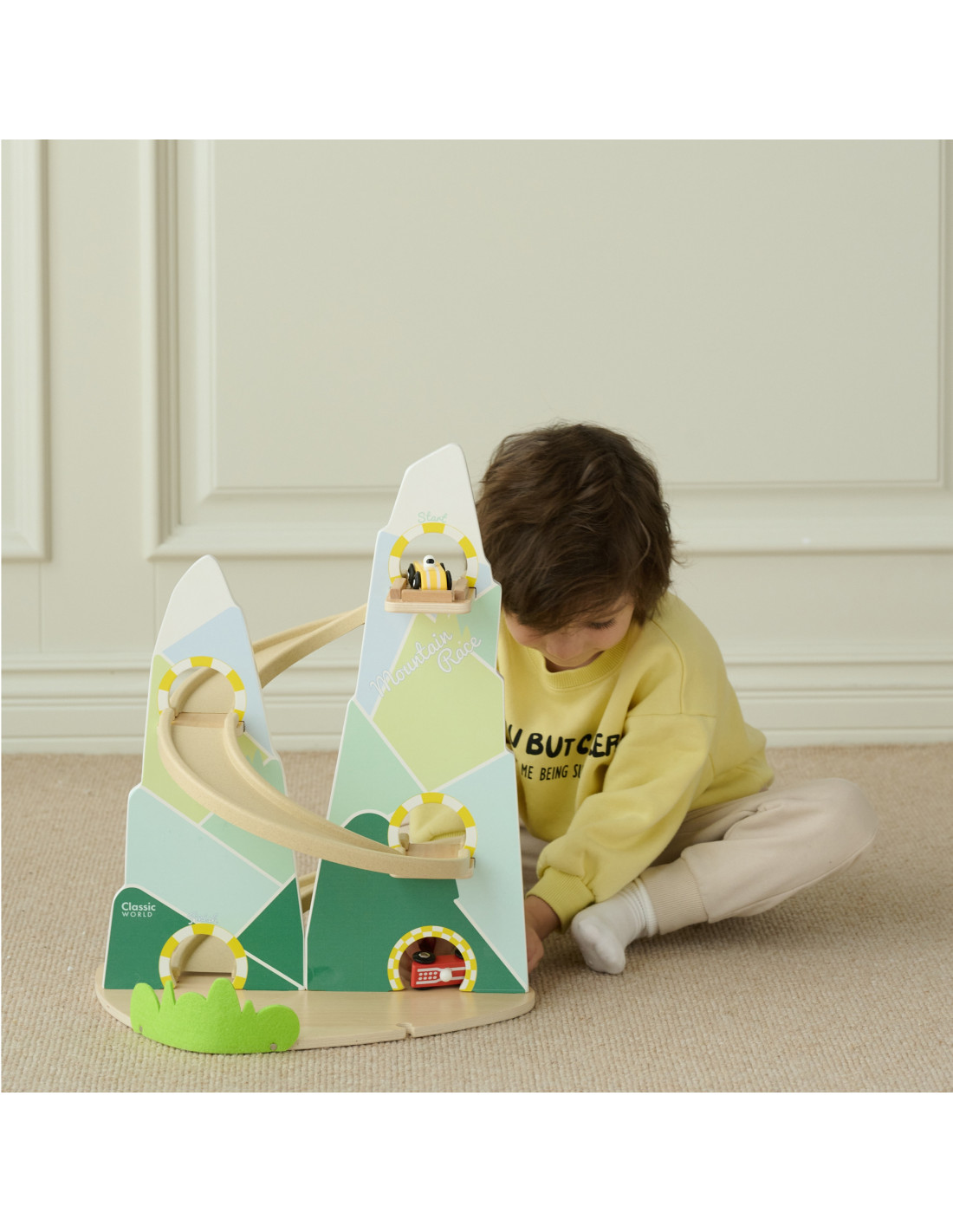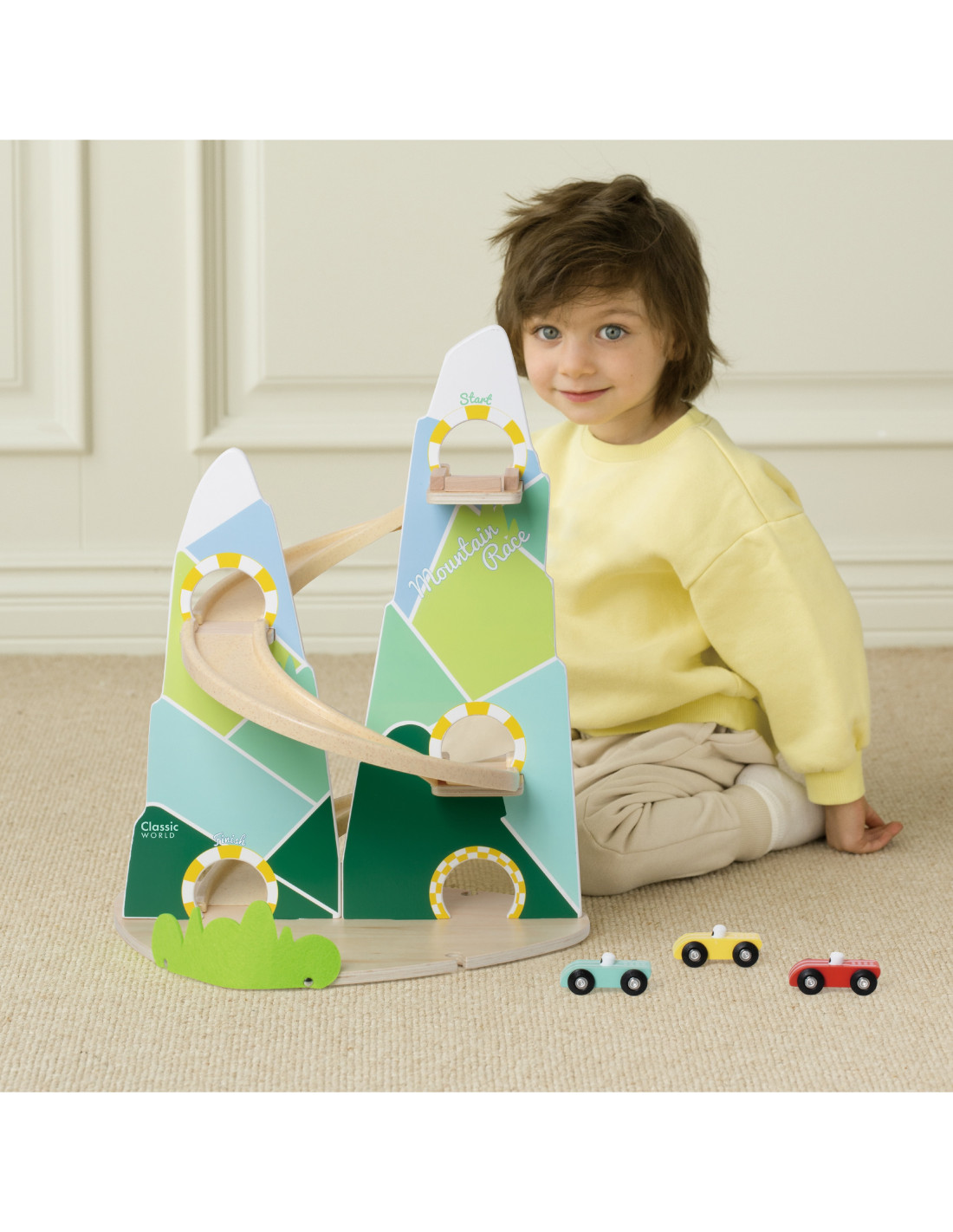 The Wooden Race Track from Classic World is a unique toy that transports children to a world full of racing excitement! Inspired by a beautiful mountain landscape, its unique shape of two mountains will delight every child, while the carefully crafted wooden structure and pastel colors will catch the eye. The set includes three colorful cars that will compete on a track full of curves. Thanks to its safe, edge-free design, the track is perfect for even the youngest. It's a game that not only entertains but also teaches logical thinking, supports the development of hand-eye coordination, and fosters competition in a healthy atmosphere.