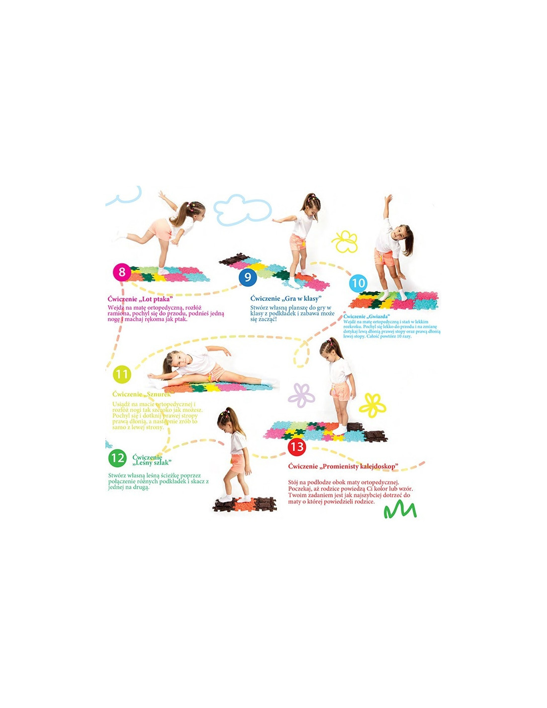 The mat allows your child to have fun by performing up to 19 exercises (including: "sun salutation", "little soldier" exercise, "hopscotch" and "little genius" ).