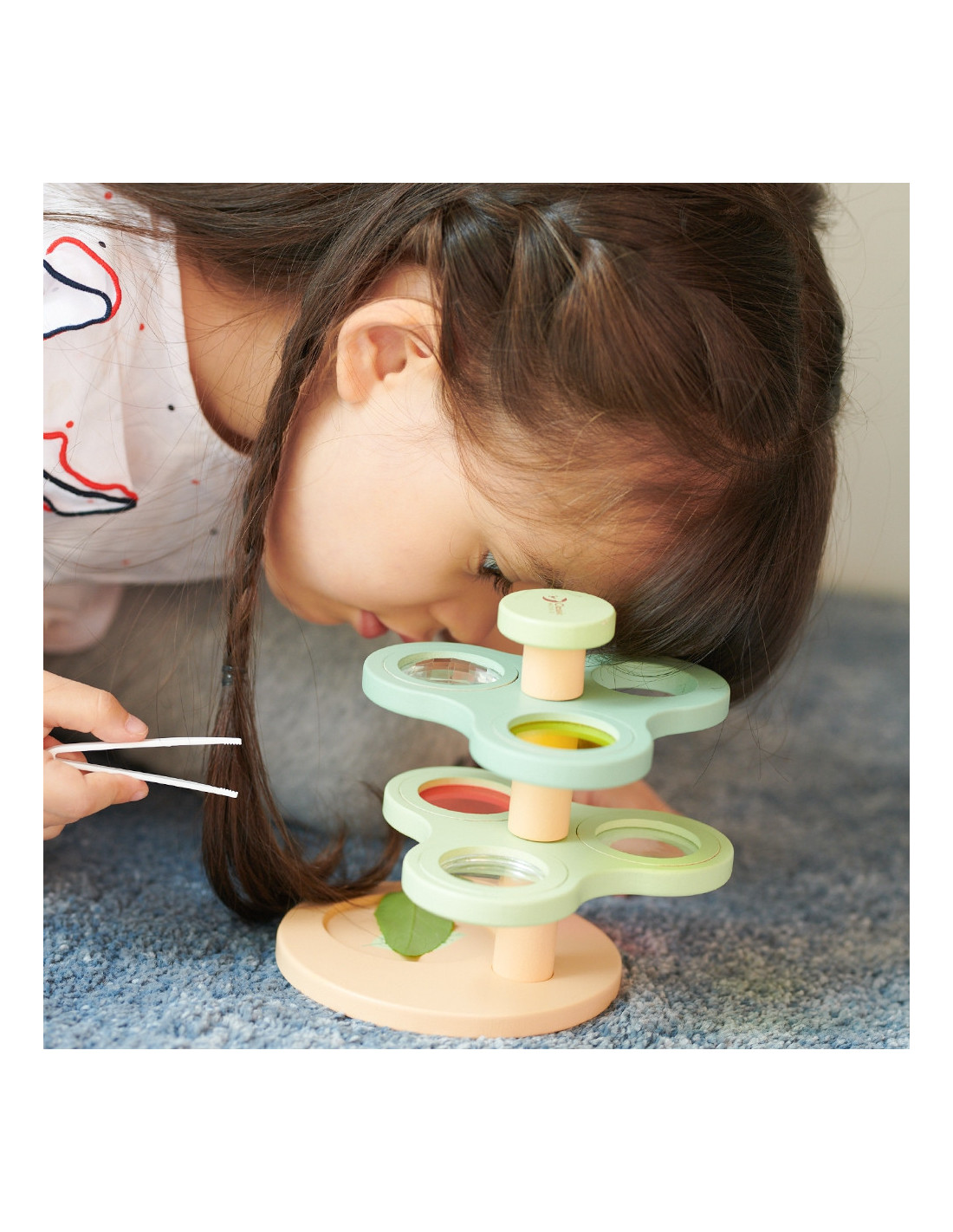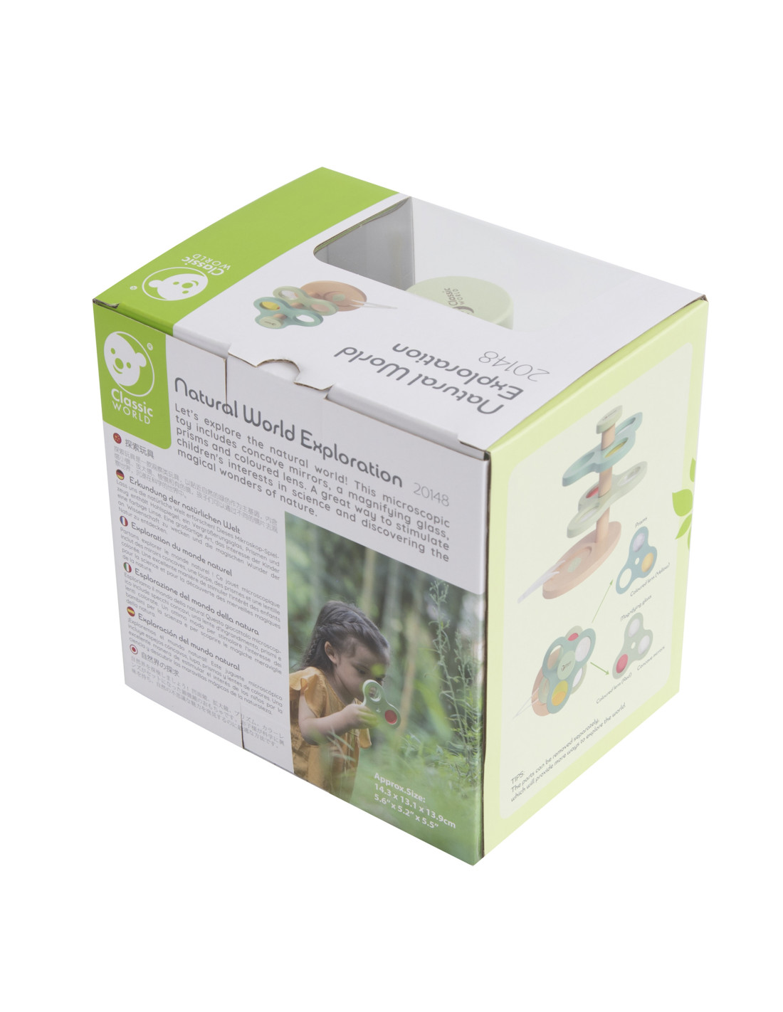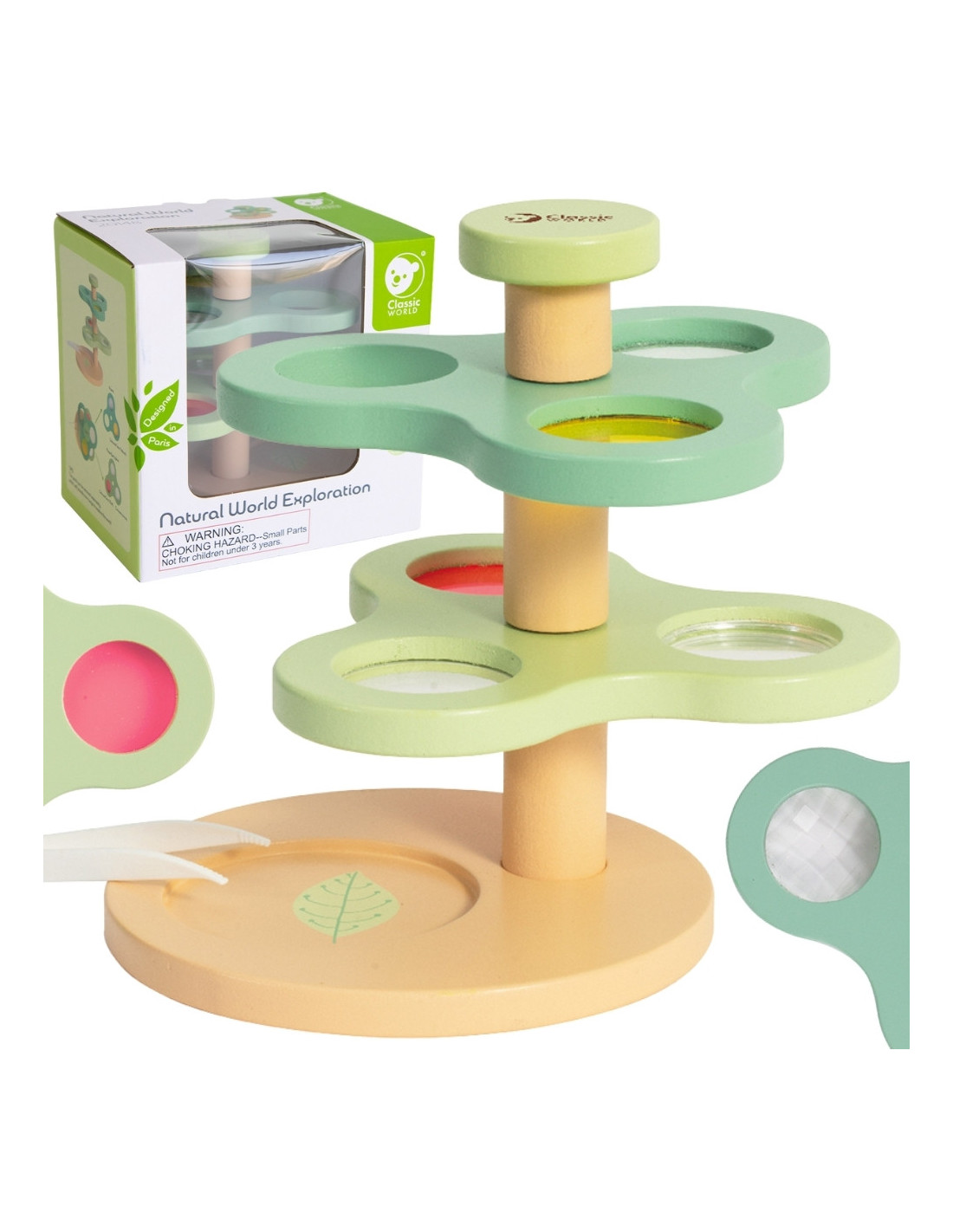 The 2-in-1 Wooden Microscope Magnifier "Exploring the Natural World" from CLASSIC WORLD is great fun for little explorers. This microscopic toy features concave mirrors, a magnifying glass, prisms, and colored lenses. It's a great way to spark children's interest in science and discover the magical wonders of nature.