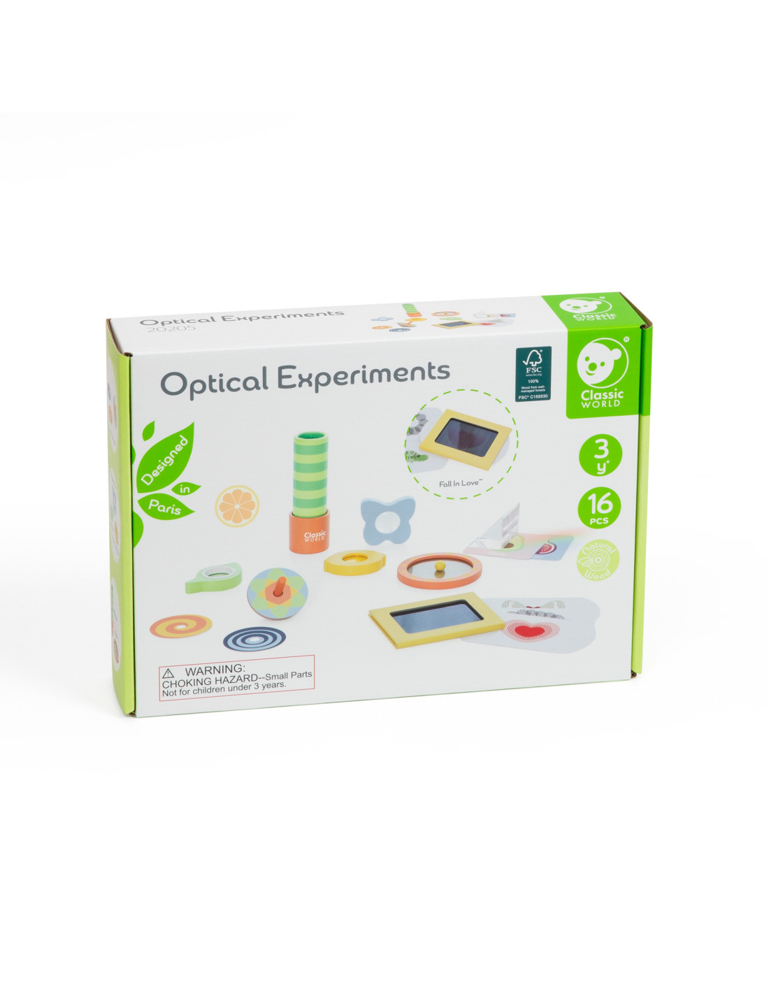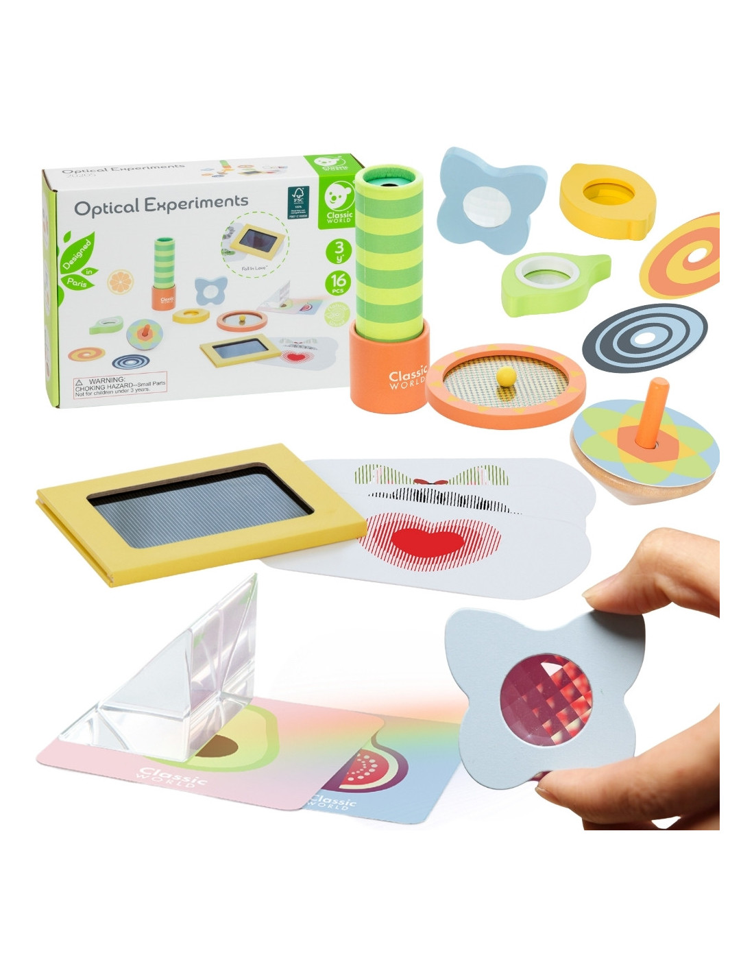The Optical Experiments Set from Classic World is a great gift idea for your child. High-quality products, refined in every aspect of production, will introduce children to the magical world of optical illusions . The set contains 16 different pieces, and each one will surprise your child! Encouraging exploration, creativity, and hands-on learning, it is an invaluable tool for budding scientists and young students, instilling a love of discovery! This toy seamlessly blends aesthetics with scientific inquiry, making it both visually captivating and intellectually stimulating.