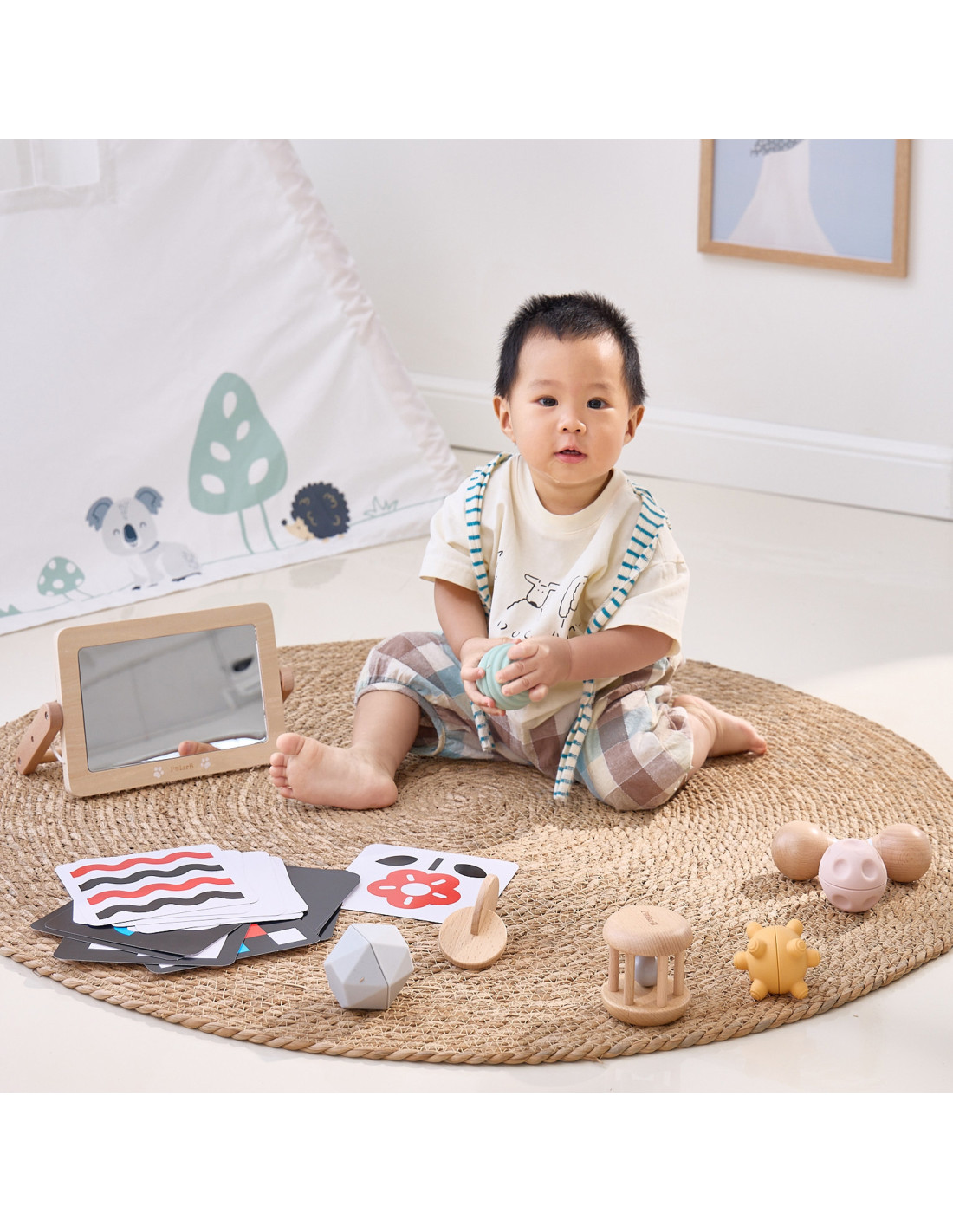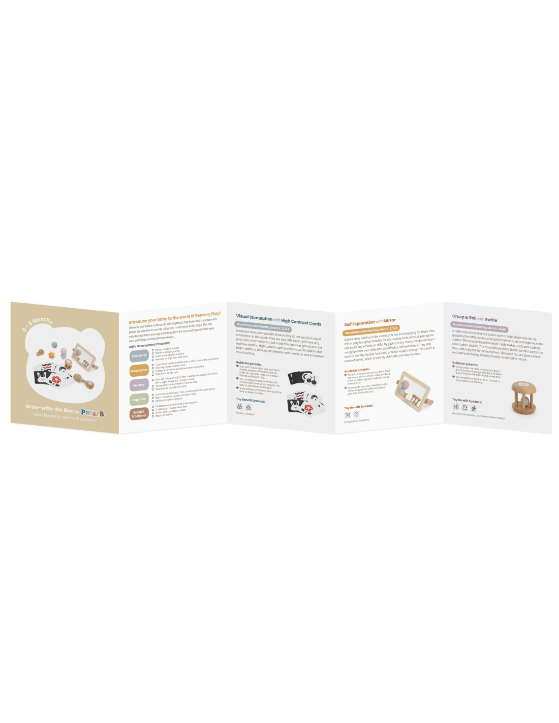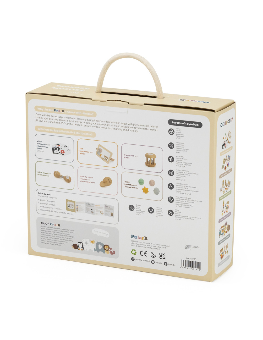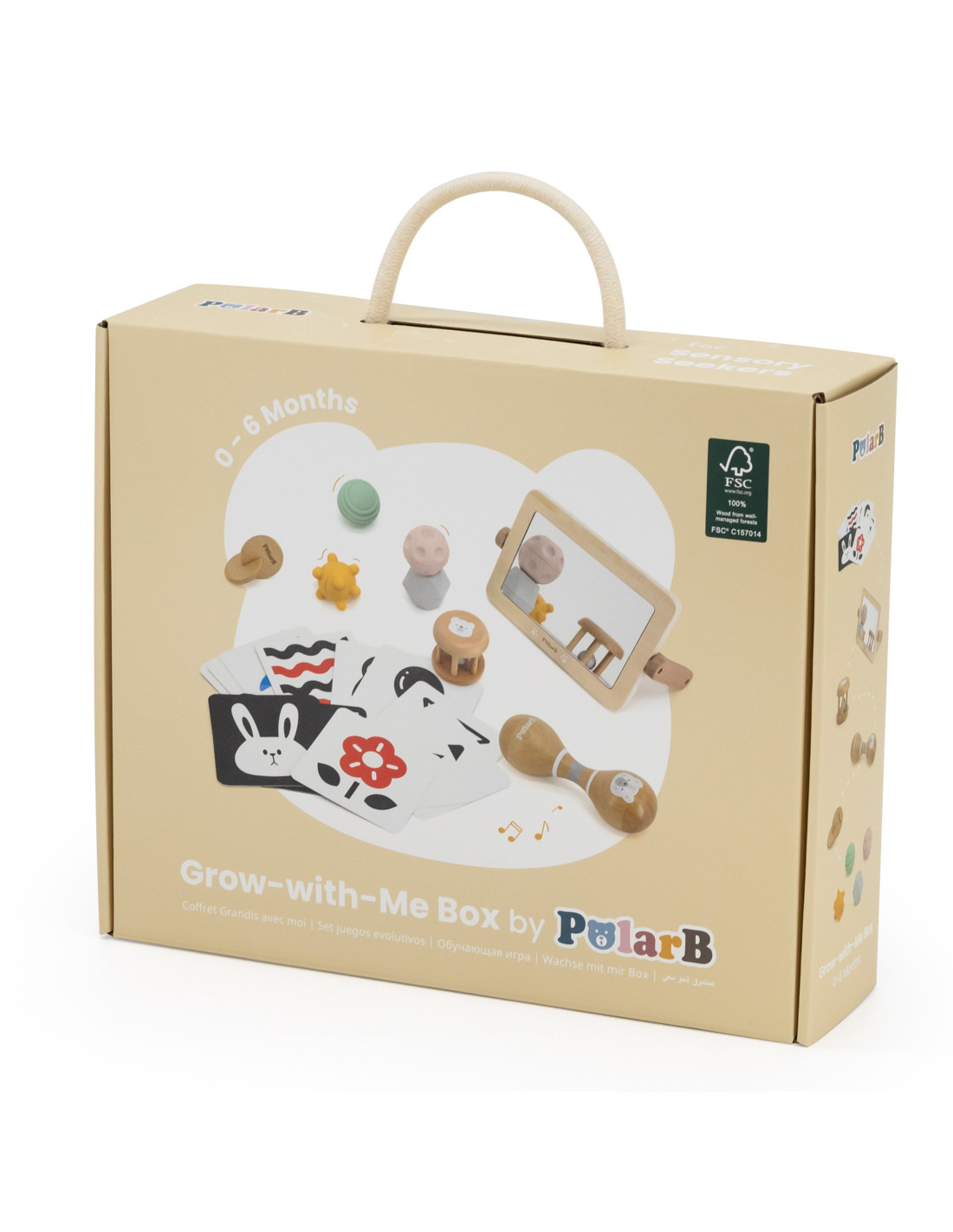 Grow-with-Me Box (0-6M) is a sensory playset designed specifically for little ones to support their development from the very first days of life. Inside, you'll find toys that stimulate sight, hearing, and touch, helping develop coordination and motor skills. Each piece is crafted from the highest quality materials, including FSC-certified wood, ensuring safety and durability. It's the perfect solution for parents seeking comprehensive developmental support for their child.