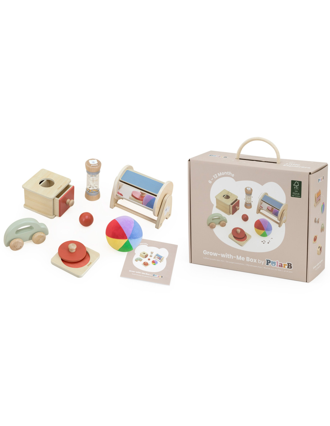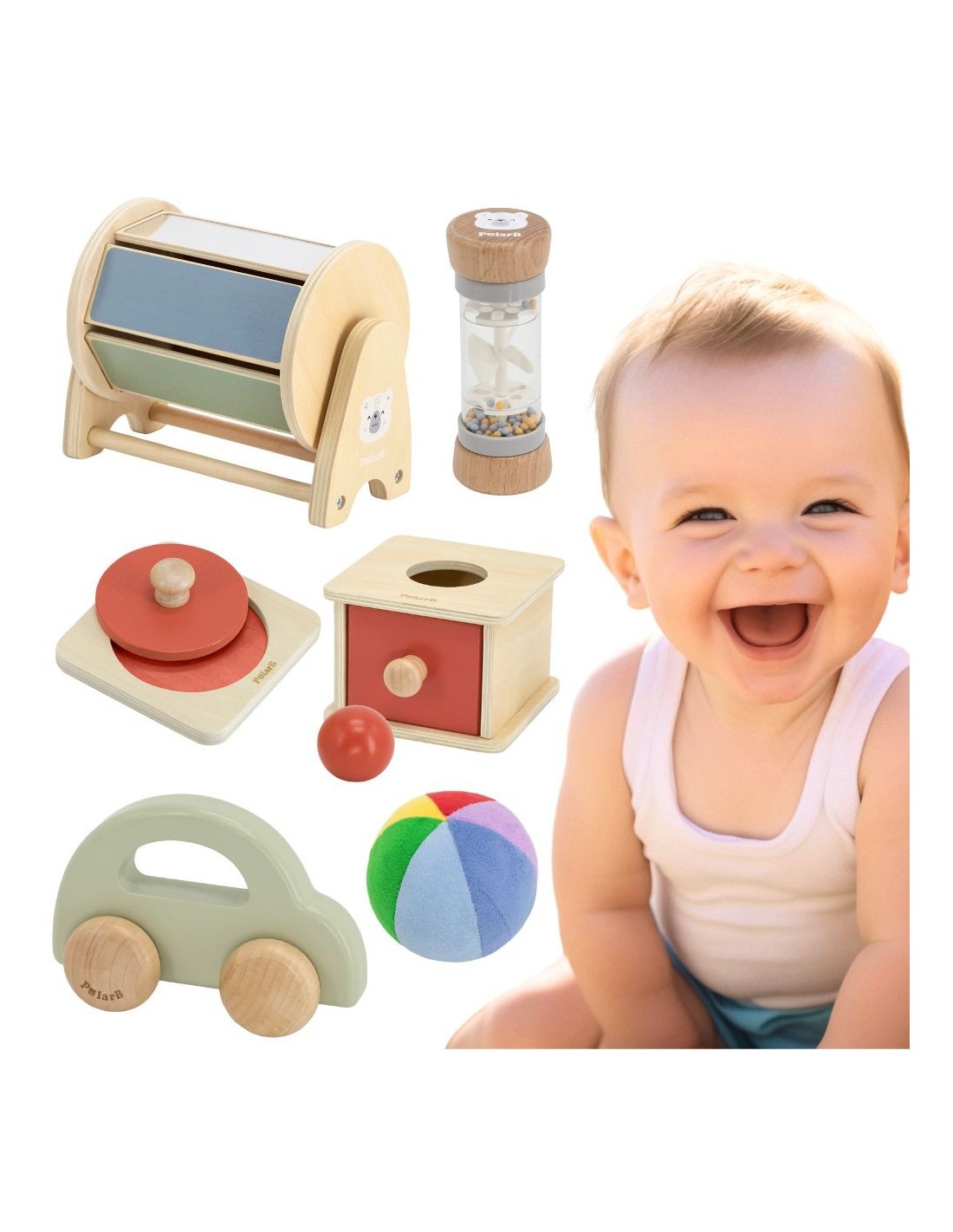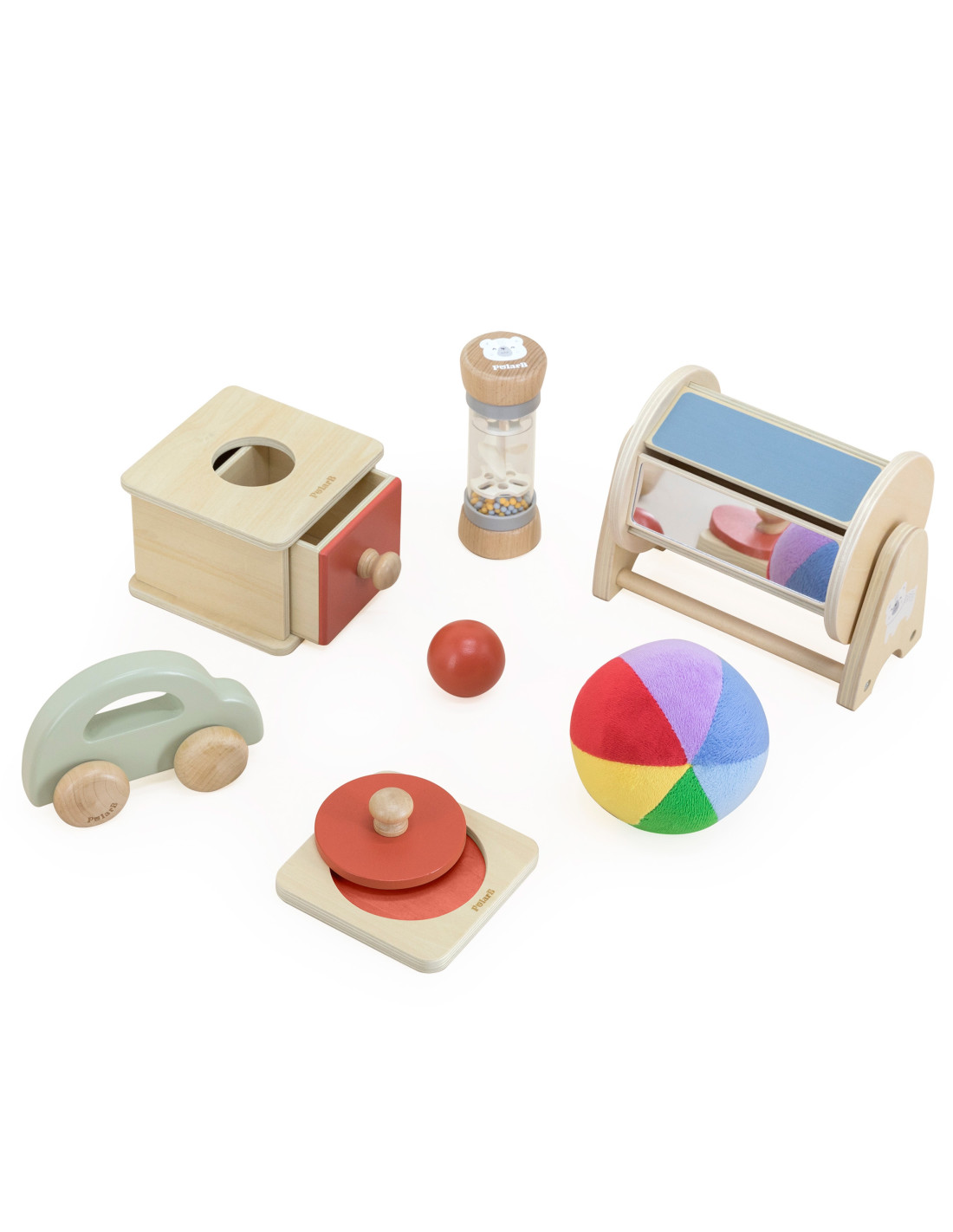 Little Explorers (6-12M) is a wonderful educational set that supports toddler development in the first year of life. It features a variety of toys designed to engage children and stimulate their senses through play. Each piece is perfectly sized for little hands, allowing children to easily explore new shapes, colors, and sounds, supporting fine motor skills and hand-eye coordination. The set is not only safe but also visually appealing, encouraging children to explore the world in an interactive way.