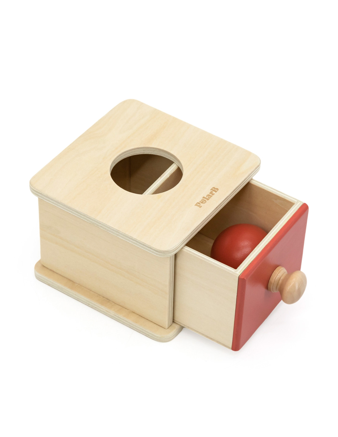 - box with a drawer – supports learning the concept of object permanence, developing cognitive skills
