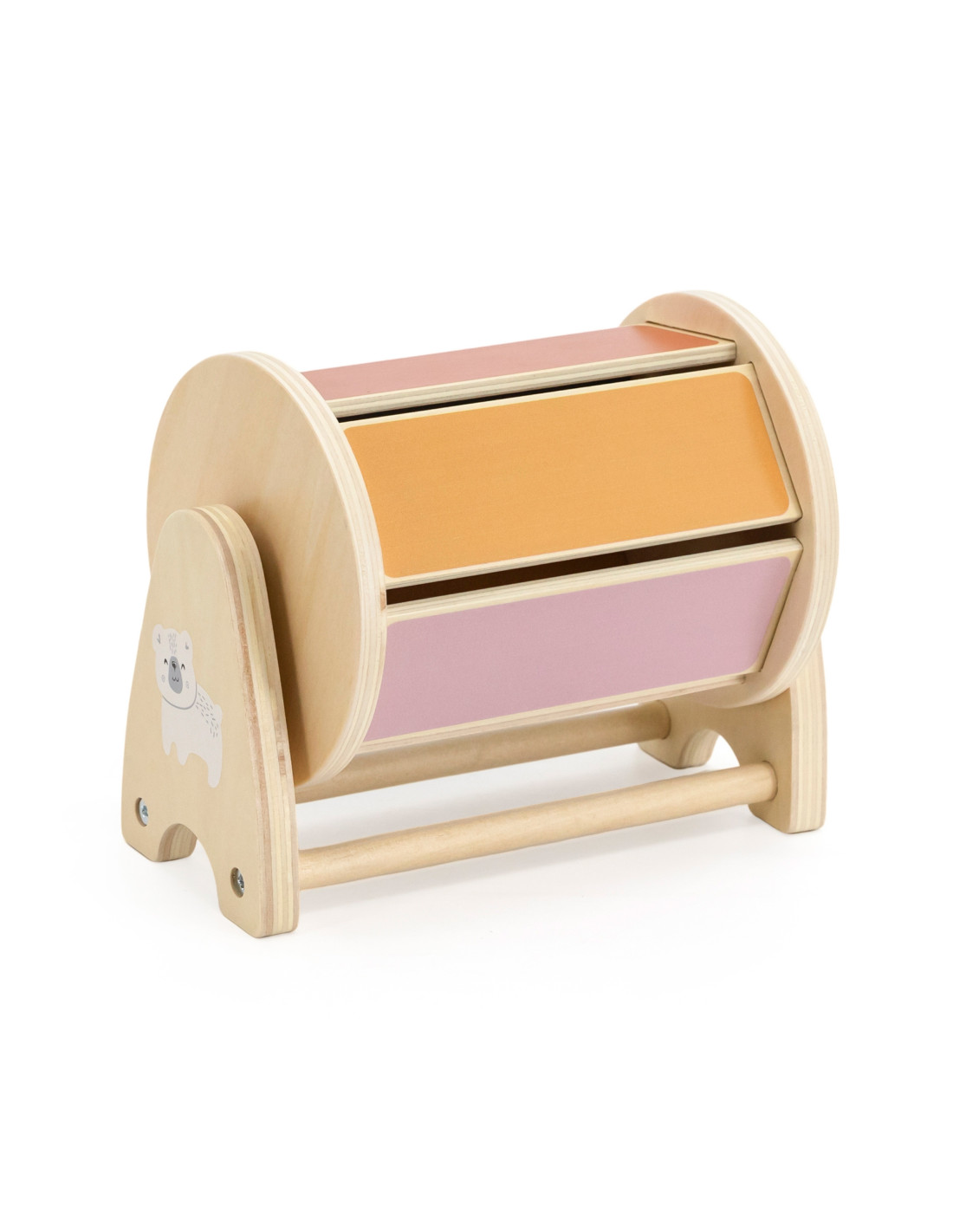 - rotating drum – stimulates the sense of touch and hearing through its simple but engaging mechanics