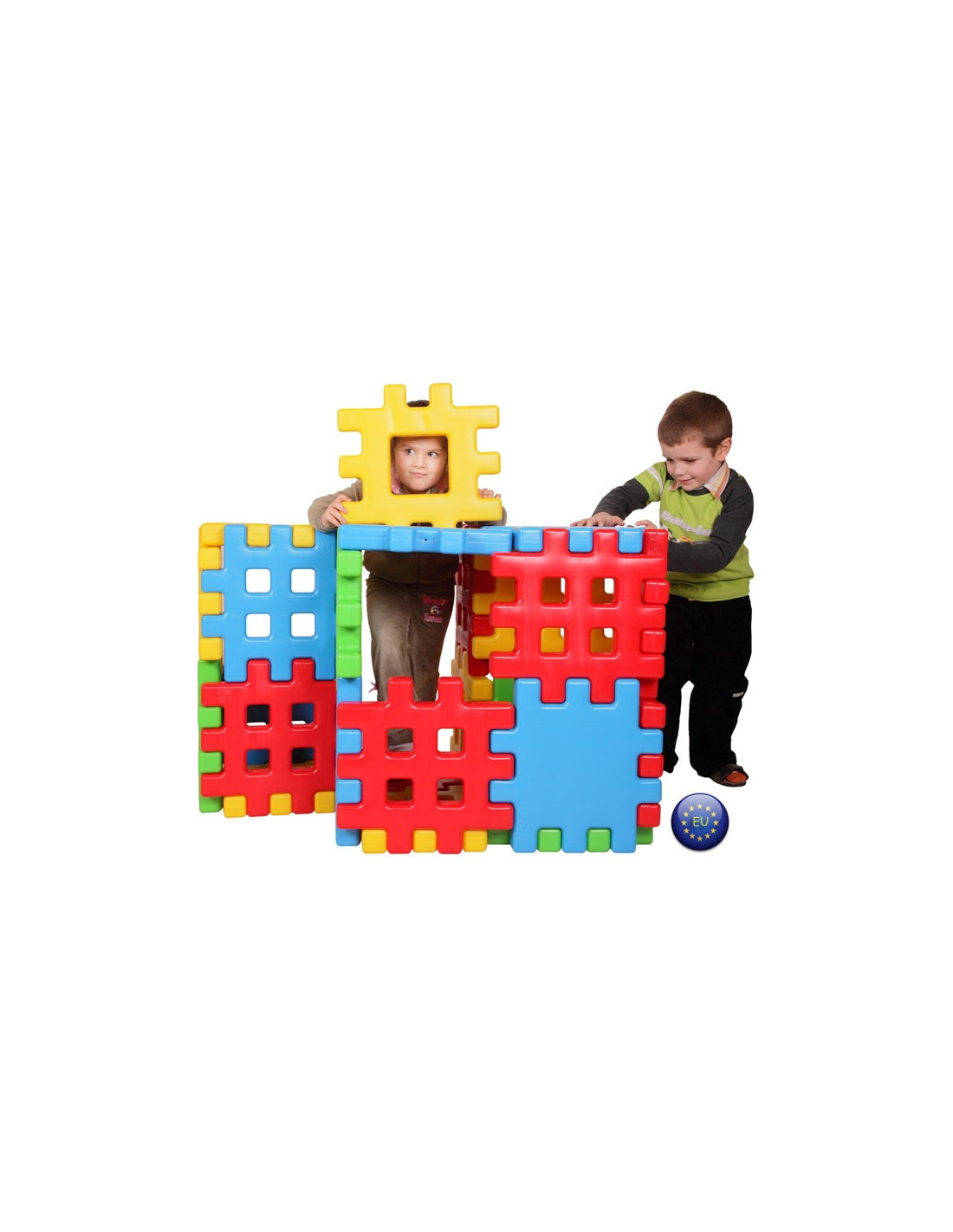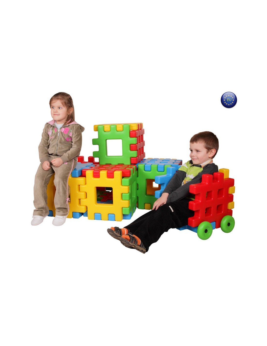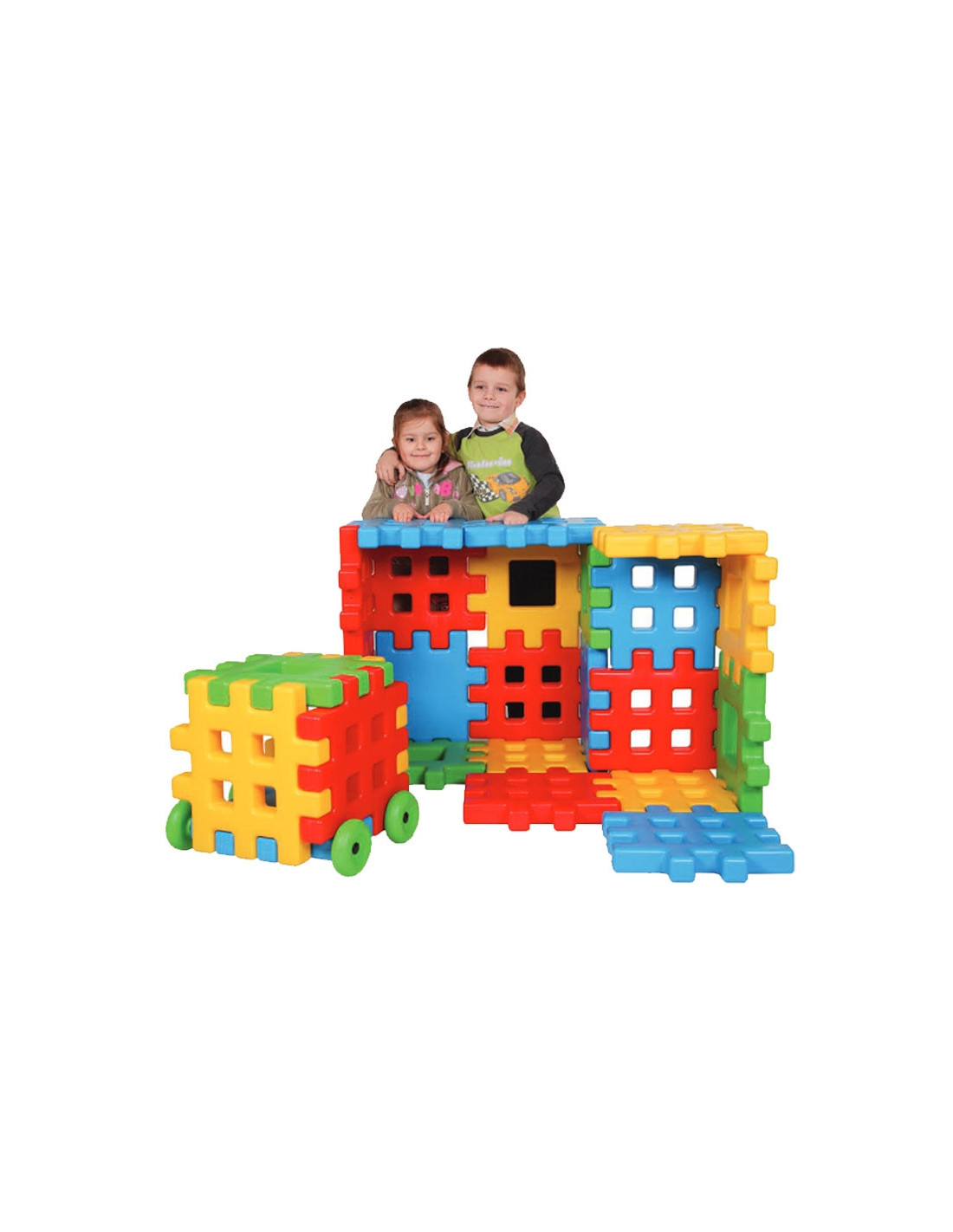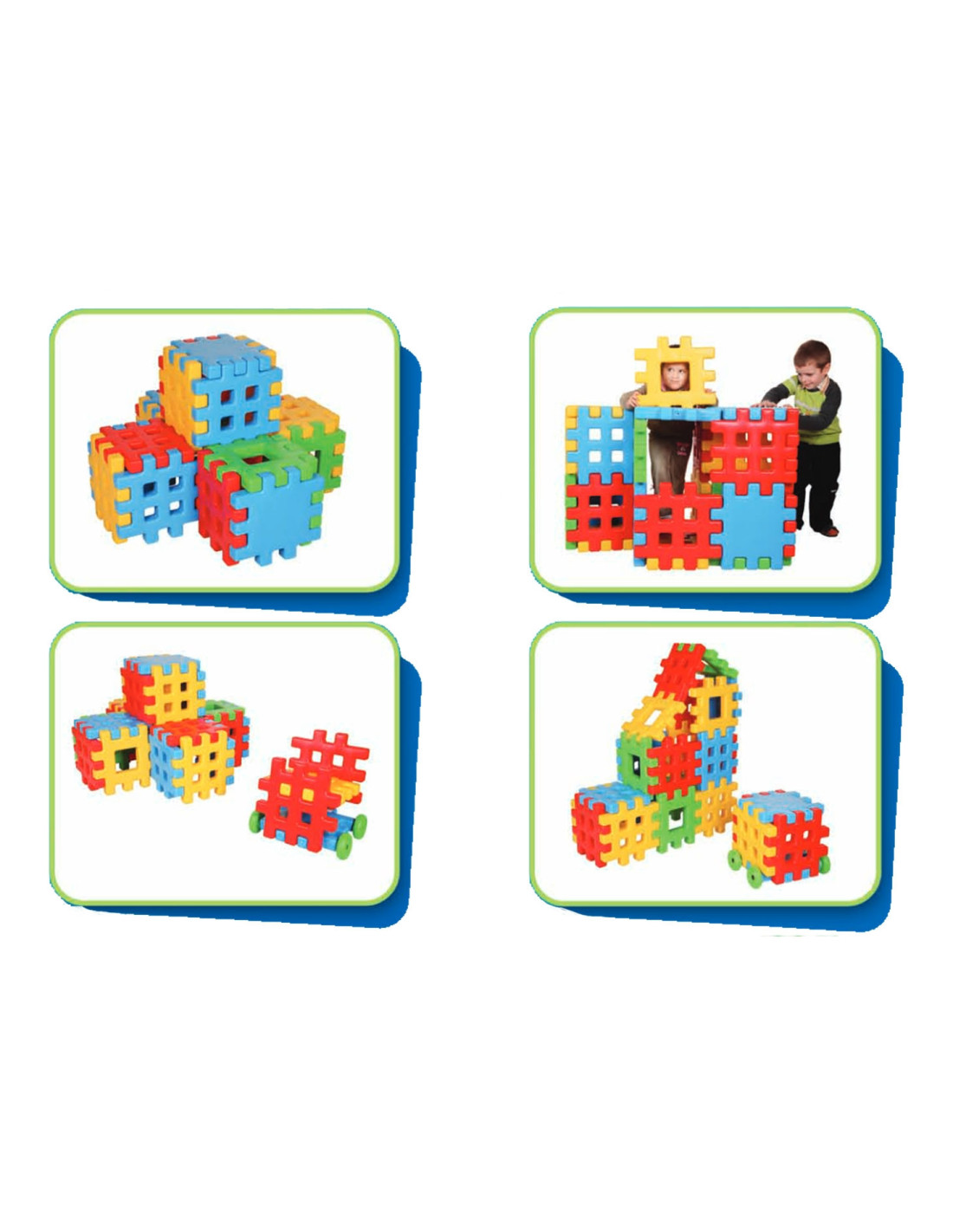 The blocks are designed to fit together at different angles . Children use these blocks to develop their concentration and imagination . They learn new shapes while building interesting structures such as a toy car, a house, a farmyard, a wall, a maze, and many more.