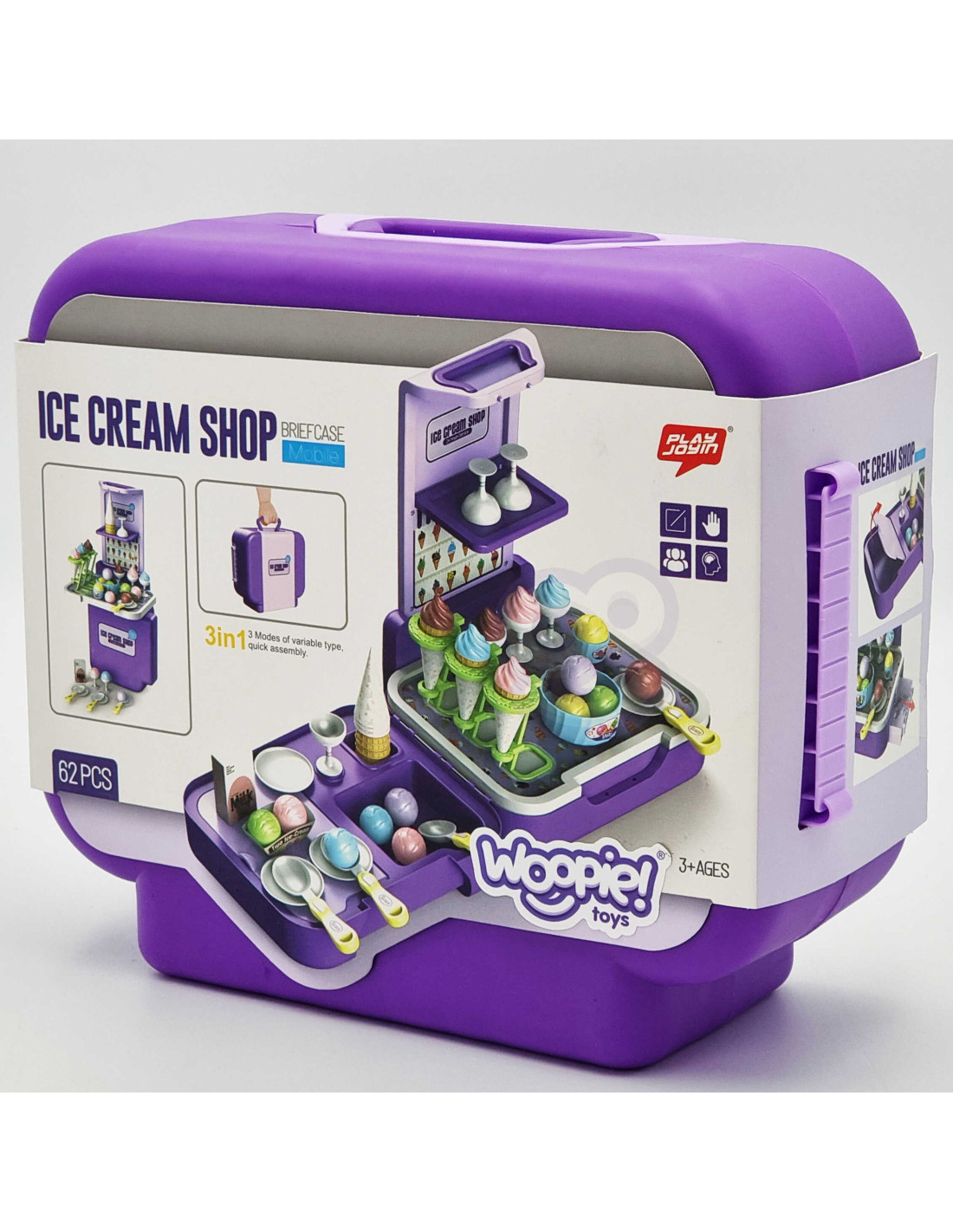 This ice cream stand was created to meet the needs of even the most demanding children . The toddler shop was designed with ice cream sales in mind. You and your children will love the original design and the way it stimulates imagination. This kids ' ice cream shop not only encourages play but also serves as an educational toy for children. The set is perfect for birthday parties , pool parties , playgrounds , classrooms , or preschools . This fantastic product makes a great gift for your little ones! Everything is packaged in a stylish carrying case.