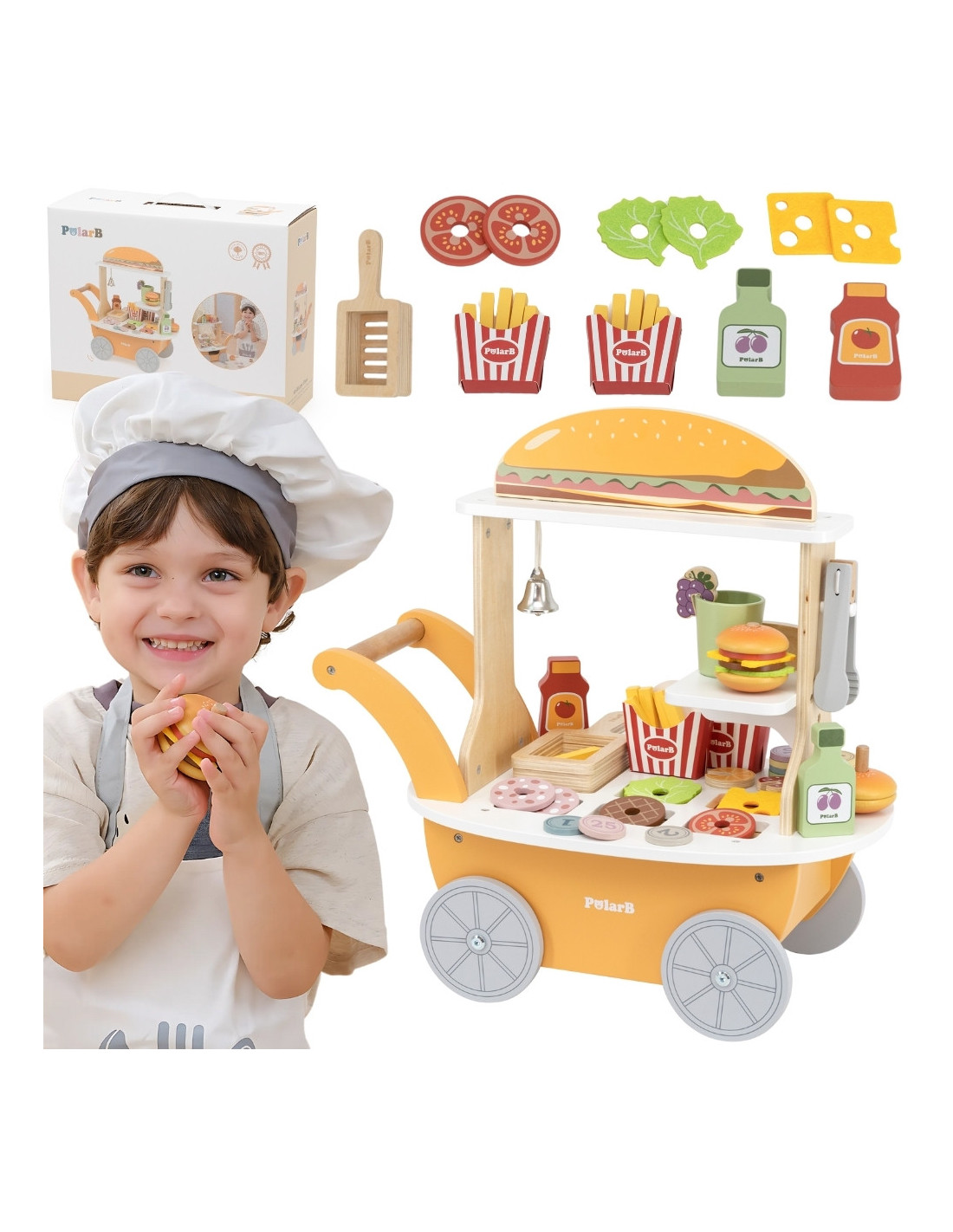 Discover the Mini Hamburger Shop , which will transform any room into a mini restaurant for children aged 3 and up! Little ones can fry crispy fries, prepare burgers , and serve drinks , while developing their imagination and social skills. A set of 46 accessories allows them to pretend to be a waiter or customer , teaching the basics of money management in a friendly way. The colorful, practical mini bar encourages creative role-play and great hands-on fun. It's the perfect way to combine learning and entertainment in your child's everyday play.
