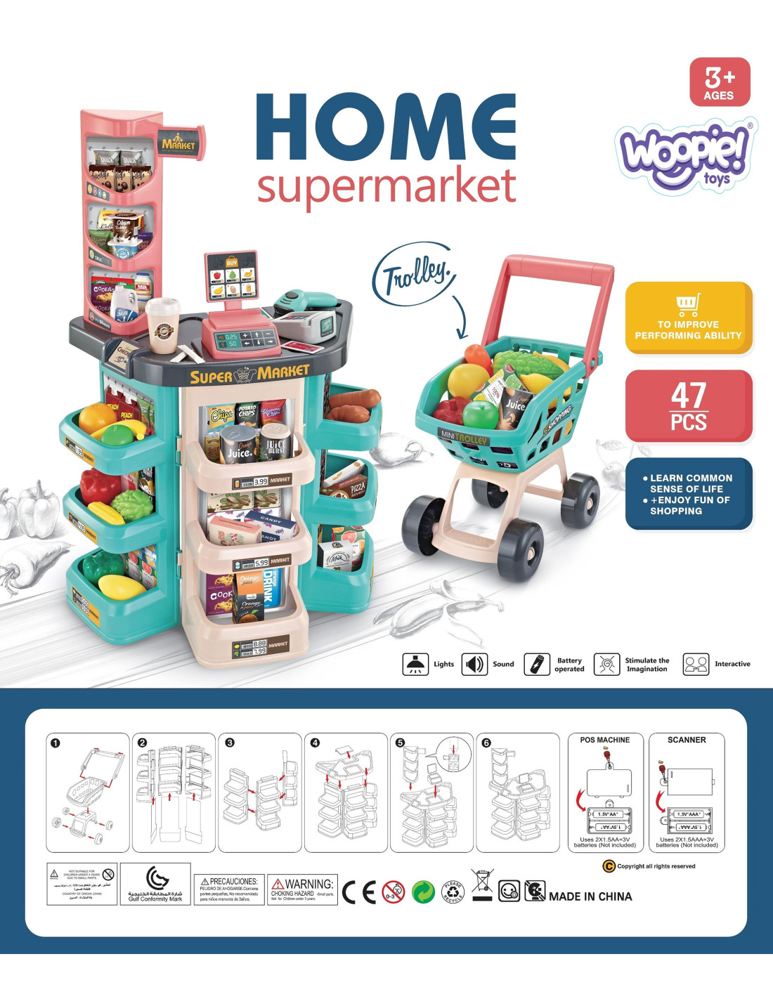 This Supermarket with a Shopping Cart, complete with 47 accessories from the reliable brand Woopie , is perfect for children over 3 years old . Children love to imitate their parents, so this is the perfect set for your child. Role-playing truly develops a toddler's imagination and creativity . The shop includes all the necessary elements to equip a small shopkeeper's workstation, including a cash register with a scale , a scanner , and a payment card reader. The included shopping cart allows for fun with friends no matter where or when, and your child will always know how to behave in a supermarket!