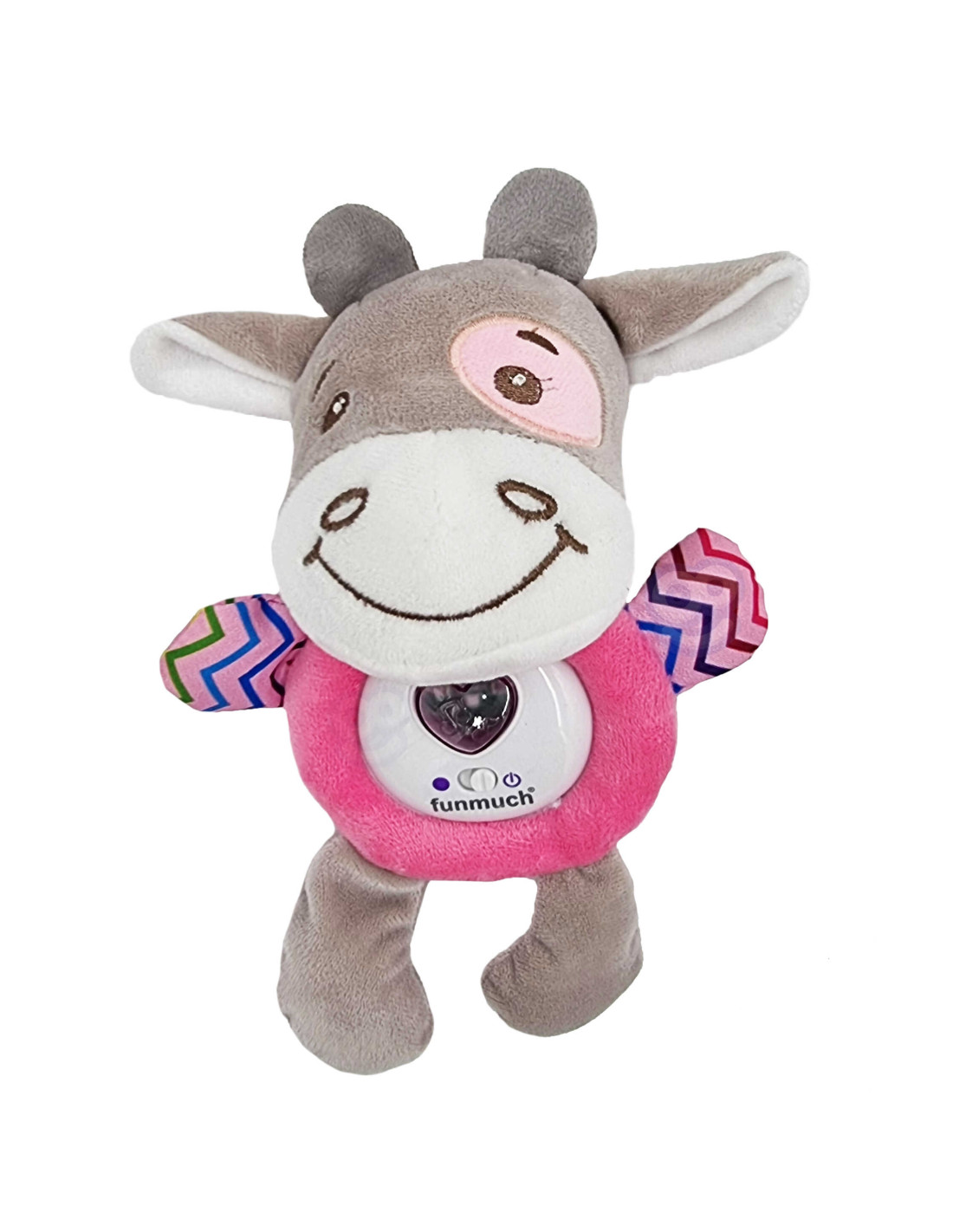 The interactive plush bull will soothe and lull your child to sleep. The toy features a lullaby function and colorful light display, ensuring your little one doesn't get bored with the toy. This soft-touch teddy bear will become your child's friend from a very young age. Suitable for infants, the toy is soft and filled with cotton wool, so you don't have to worry about your little one injuring themselves. Furthermore, the plush toy can be safely and easily cleaned ( by removing the mechanism ) without fear of damage.