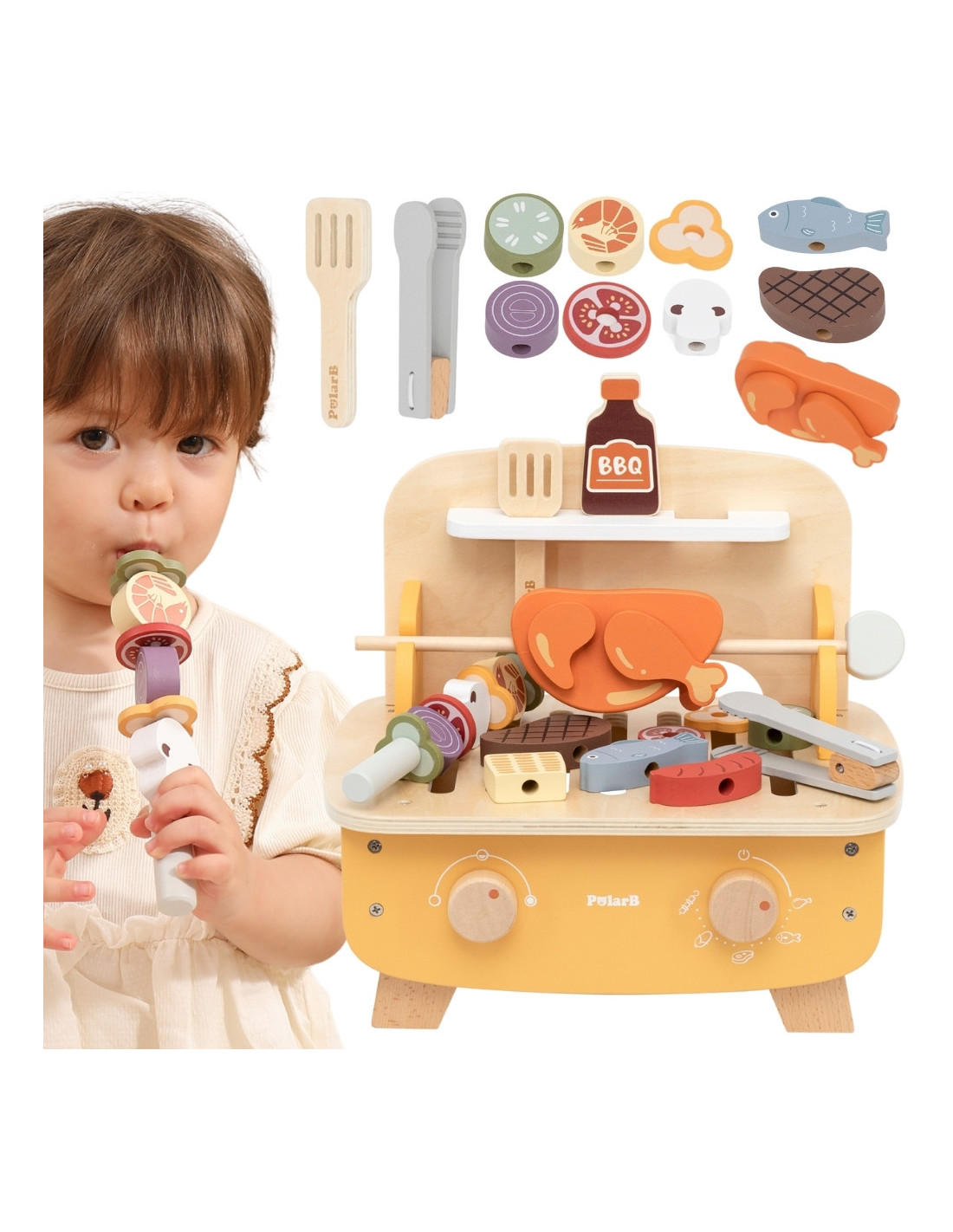 Ignite your little one's imagination with this unique grilling set from VIGA ! Children as young as 18 months can take on the role of little chefs and enjoy grilling just like adults. Skewers for turning, spices for sprinkling , and realistic accessories make the experience incredibly authentic. The 22 pieces allow for endless flavor combinations – from chicken and fish to colorful vegetables. It's the perfect way to develop creativity, manual skills , and learn to recognize food in a safe, wooden way.