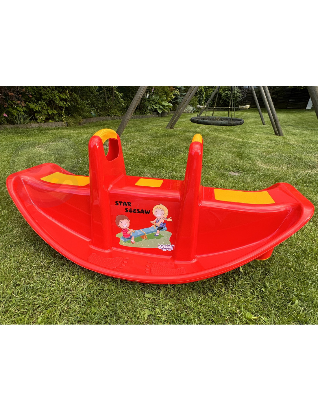The Woopie STAR Red Multi-Person Rocker is a true star among children! Up to three children can use the rocker at a time, and even one will have a blast. When children swing together , it further develops their teamwork skills. The rocker has special anti-slip pads on the seat and handles. The rocker itself offers many benefits for children. Swinging itself soothes the child and develops motor skills , which is ideal for proper development. The swing can be used both indoors and outdoors!