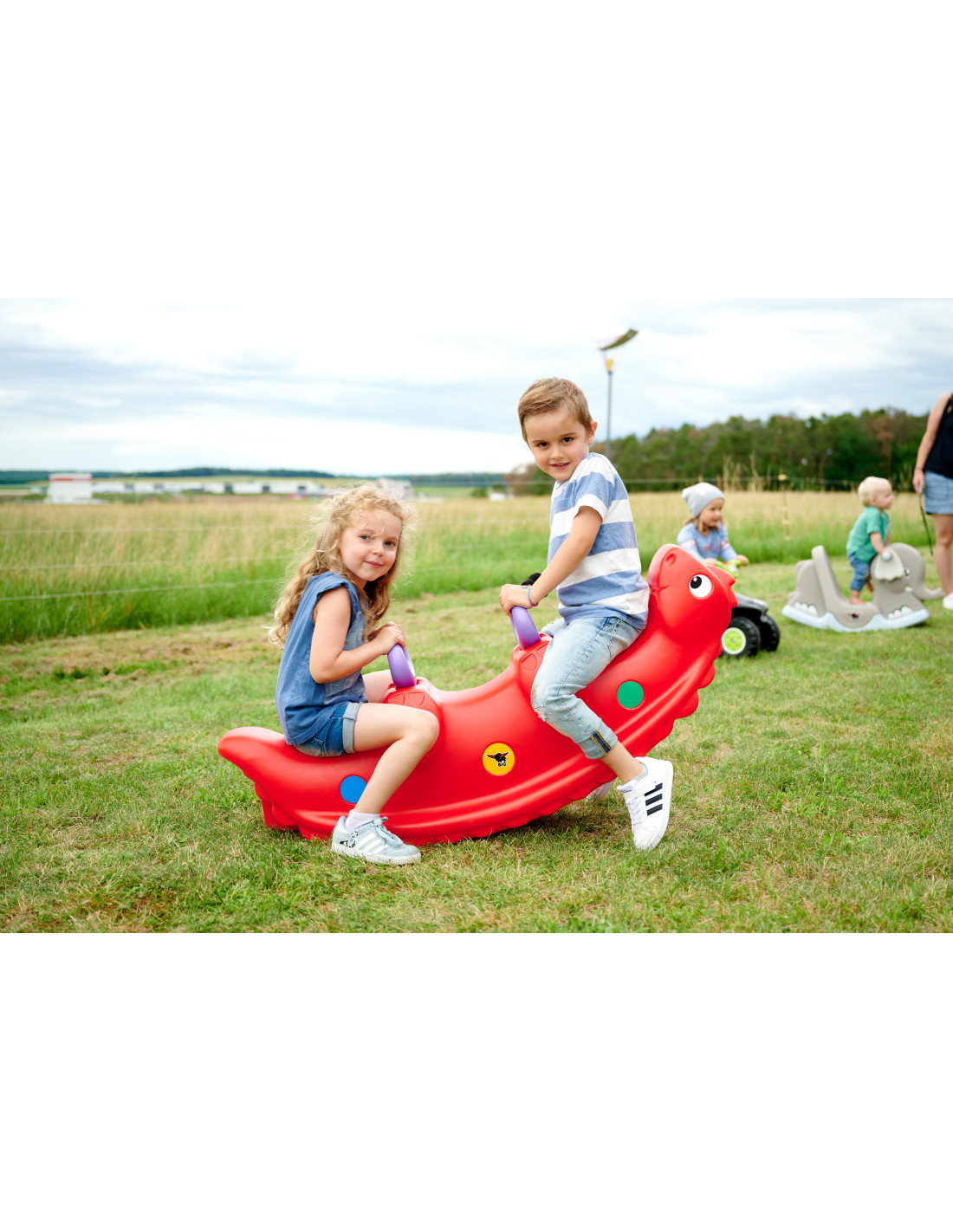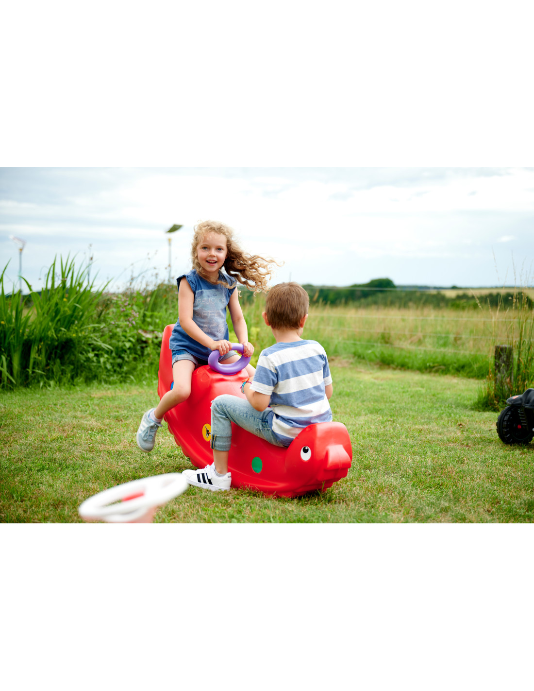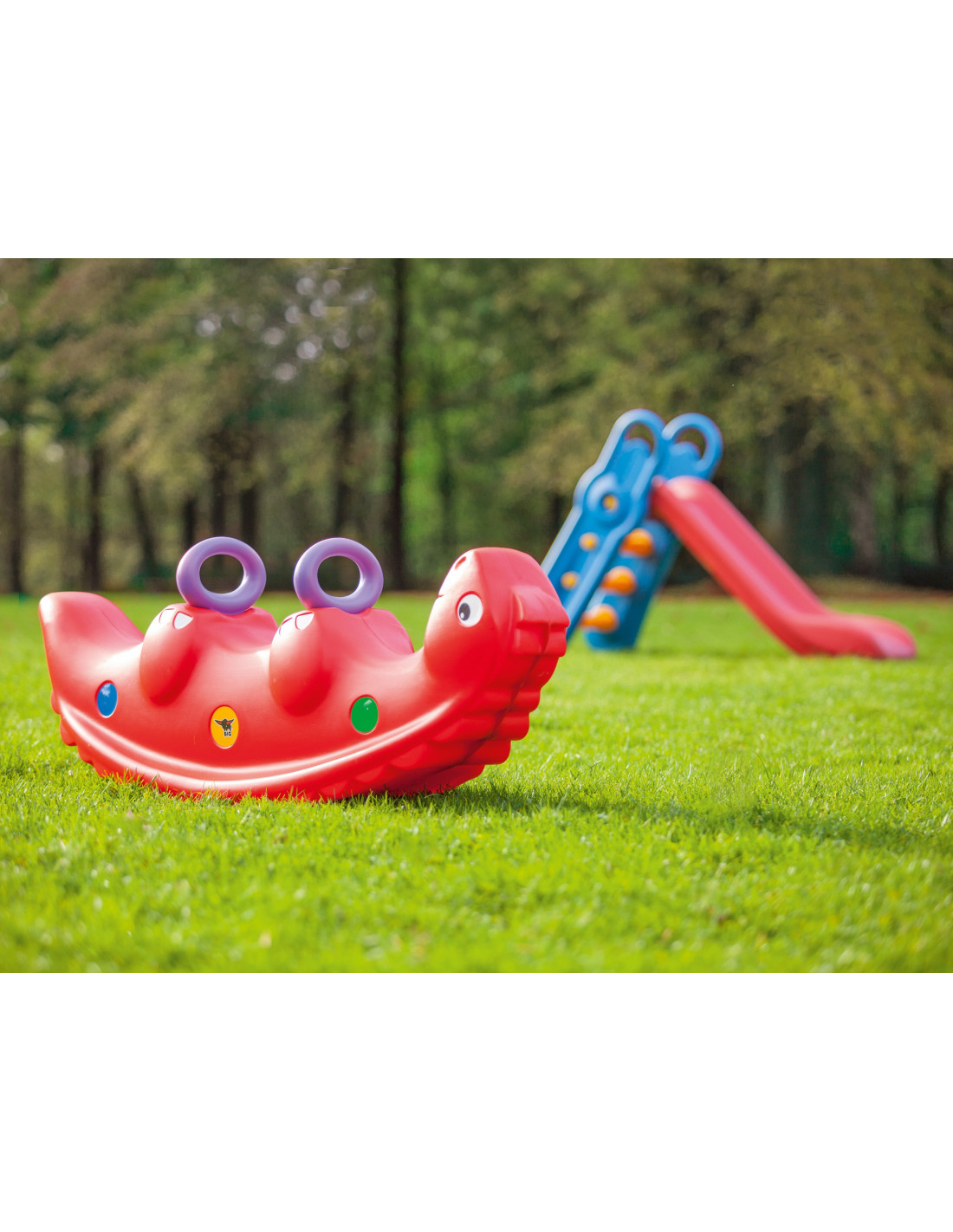 The Feber rocking table with eyes that move as you swing is the perfect addition to any home playground. When flipped over, the table transforms into a rocking swing. The toy features four comfortable seats. The entire structure is made of high-quality, weather- and UV-resistant plastic.