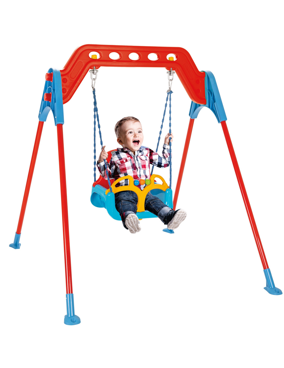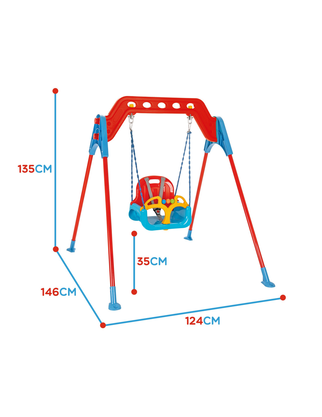 The 3-in-1 swing by Woopie will provide great fun from an early age! This single swing features a stable , sturdy , and durable base with safety leg guards . Thanks to its design, the swing can be used both indoors and outdoors . The removable foot guard and backrest make it ideal for older children as well. The product offers three options : a baby swing with a backrest and foot guard, a swing with a backrest, or a swing without a backrest. As your child grows, parts of the swing can be easily removed – the swing grows with your child ! Safety harnesses ensure safe play, and the moving parts encourage hand movement . The seat height from the ground is 35 cm. Swinging positively impacts the development of a child's motor skills and is an ideal activity toy!