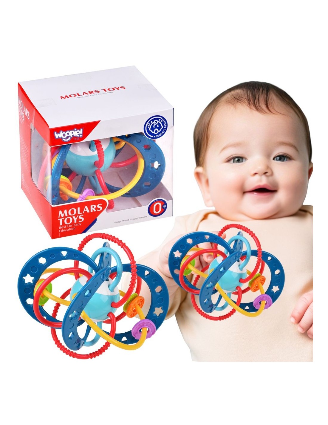 The Sensory Toy from WOOPIE boasts a multitude of textures, colors, shapes, and functions . It's designed to be child- safe , with no sharp edges and soft elements that can be used as a teether . It stimulates the development of tactile, visual, and auditory senses . It also includes a rattle to attract baby's attention. Colorful elements can be moved around on flexible, swirling squiggles.