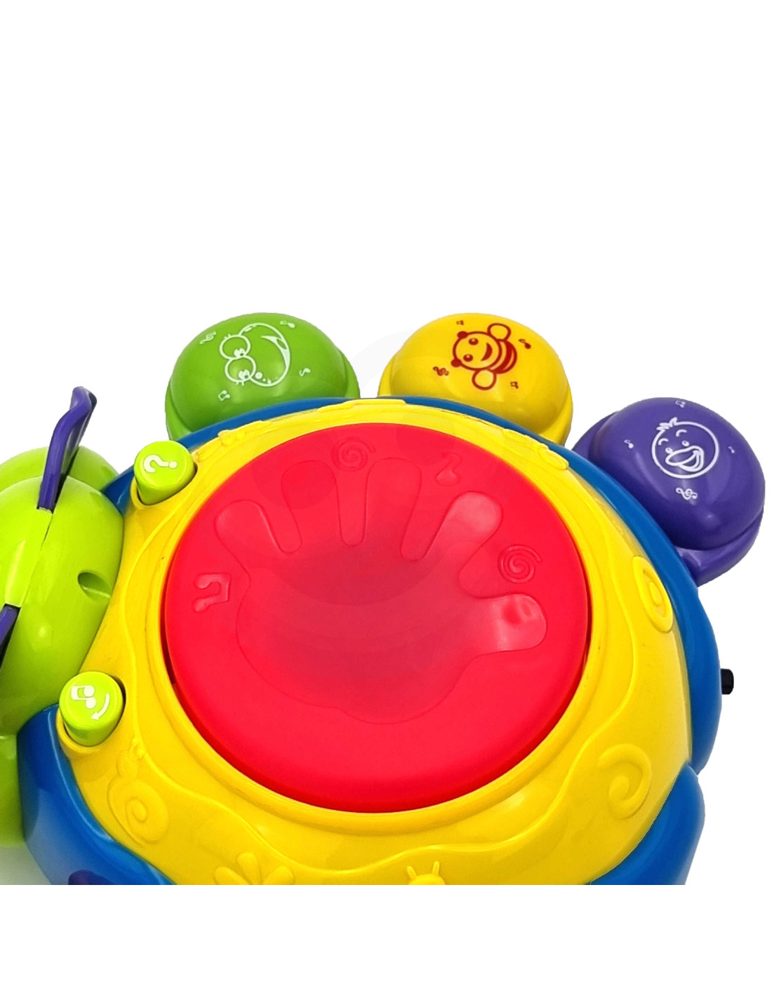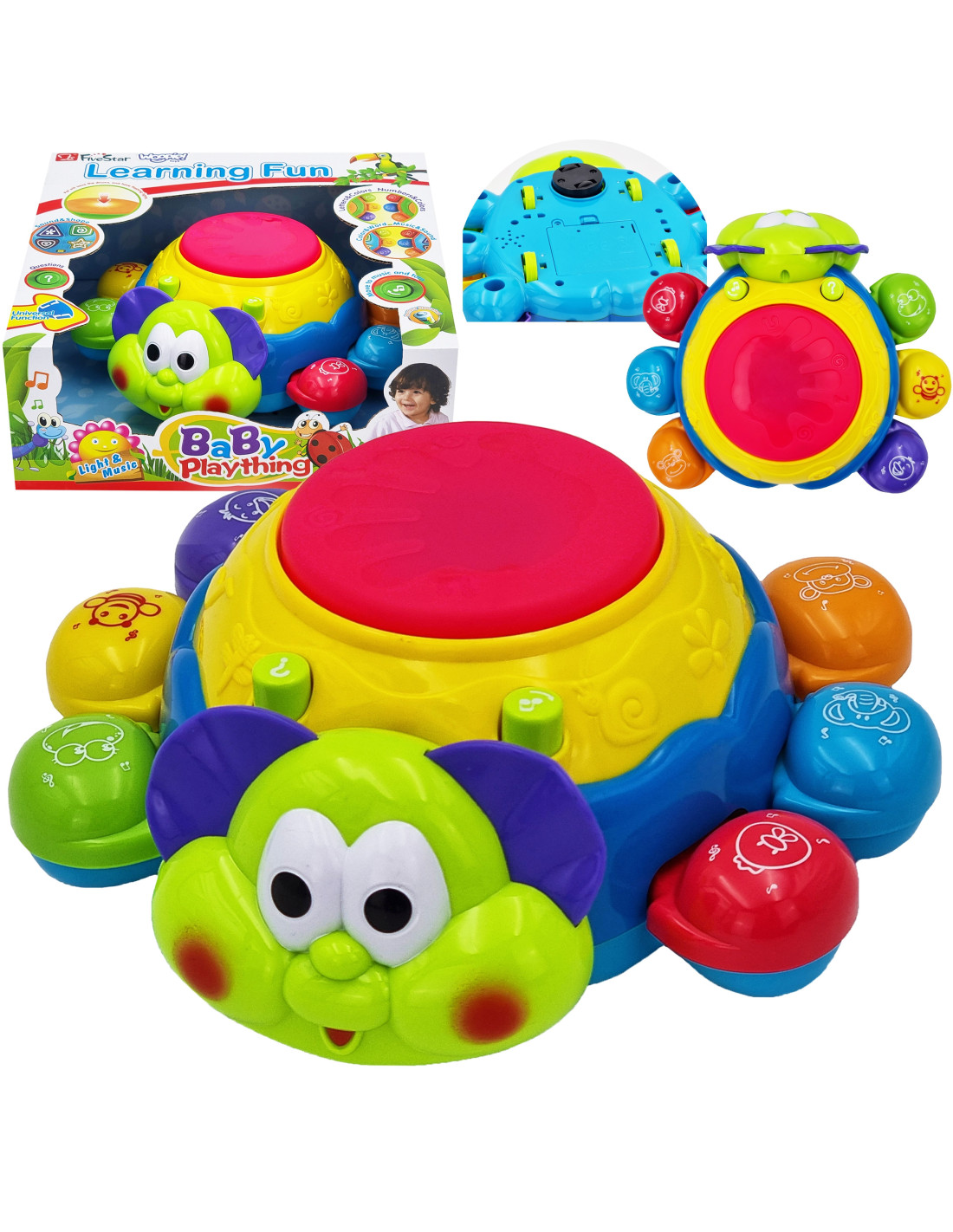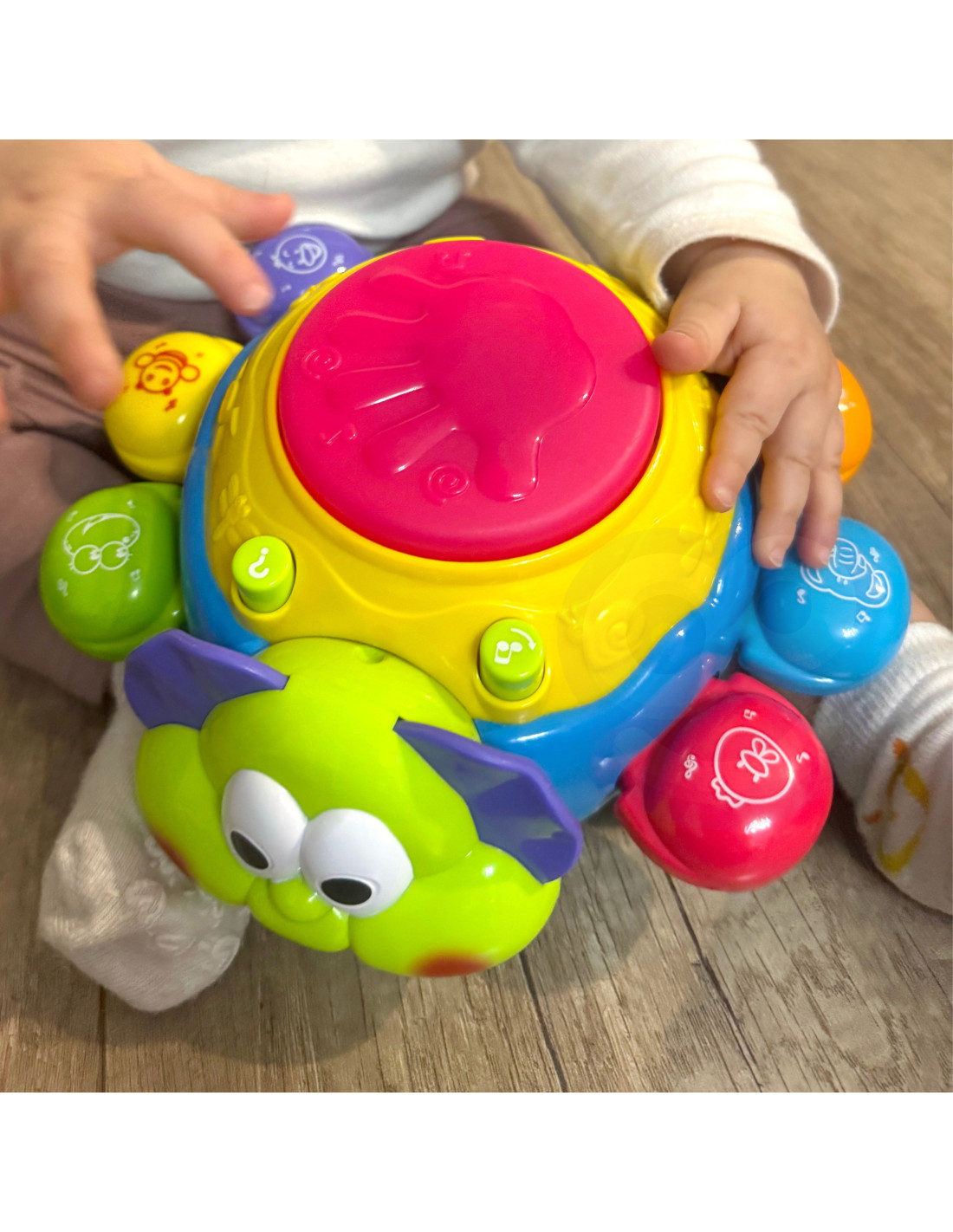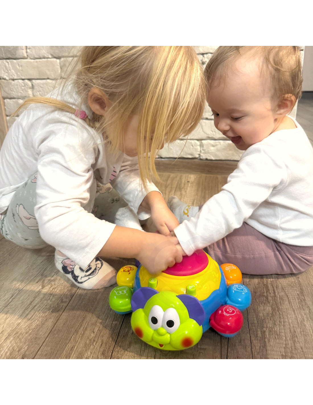 The interactive Ladybug crawling toy from WOOPIE is a great tool for learning first steps. The toy rides and runs away from your baby, encouraging them to move and catch it. A special sensor allows Ladybug to sense an obstacle and turn around. The Ladybug has numerous educational benefits. Each leg has a different color and a different animal, allowing you to learn with your child. Additionally, pressing a leg will reveal the animal's name and the sound associated with it. The animal names are in English , allowing your child to learn their first words. Light and sound effects are activated by beating the drum on top of the toy. This toy develops children's cognitive skills from an early age, including improving concentration, hand-eye coordination, and cognitive skills.