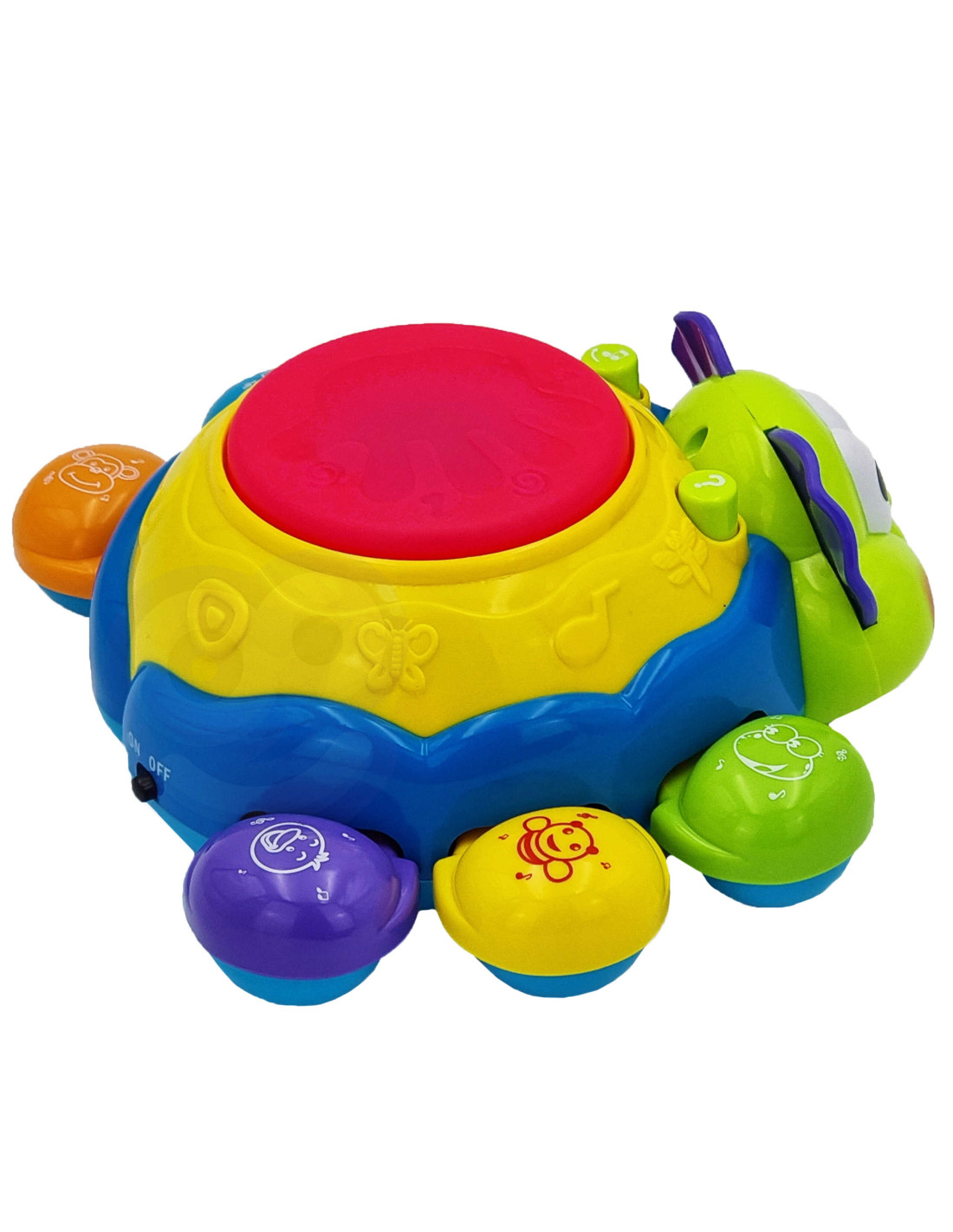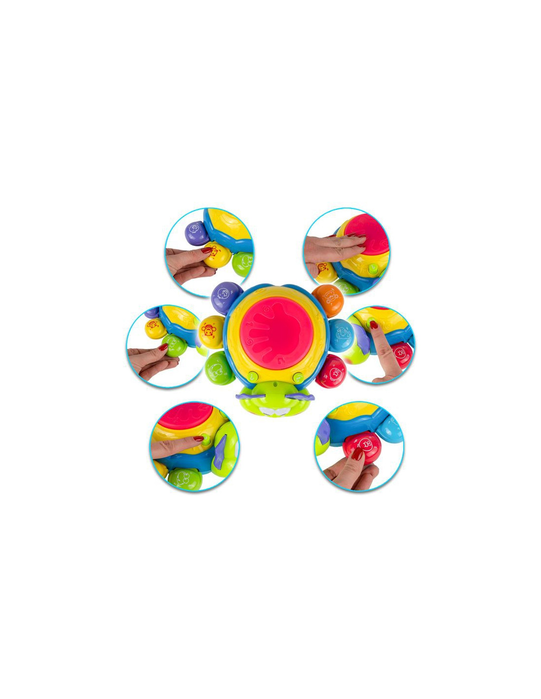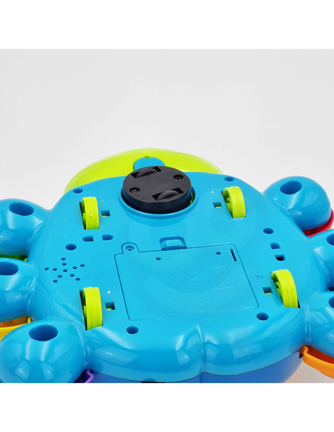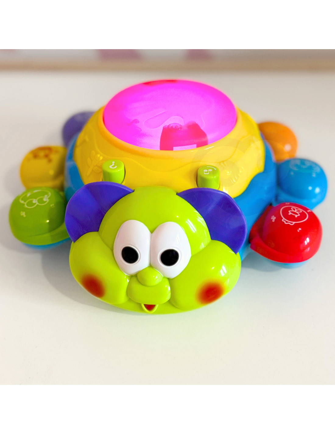 The interactive Ladybug crawling toy from WOOPIE is a great tool for learning first steps. The toy rides and runs away from your baby, encouraging them to move and catch it. A special sensor allows Ladybug to sense an obstacle and turn around. The Ladybug has numerous educational benefits. Each leg has a different color and a different animal, allowing you to learn with your child. Additionally, pressing a leg will reveal the animal's name and the sound associated with it. The animal names are in English , allowing your child to learn their first words. Light and sound effects are activated by beating the drum on top of the toy. This toy develops children's cognitive skills from an early age, including improving concentration, hand-eye coordination, and cognitive skills.