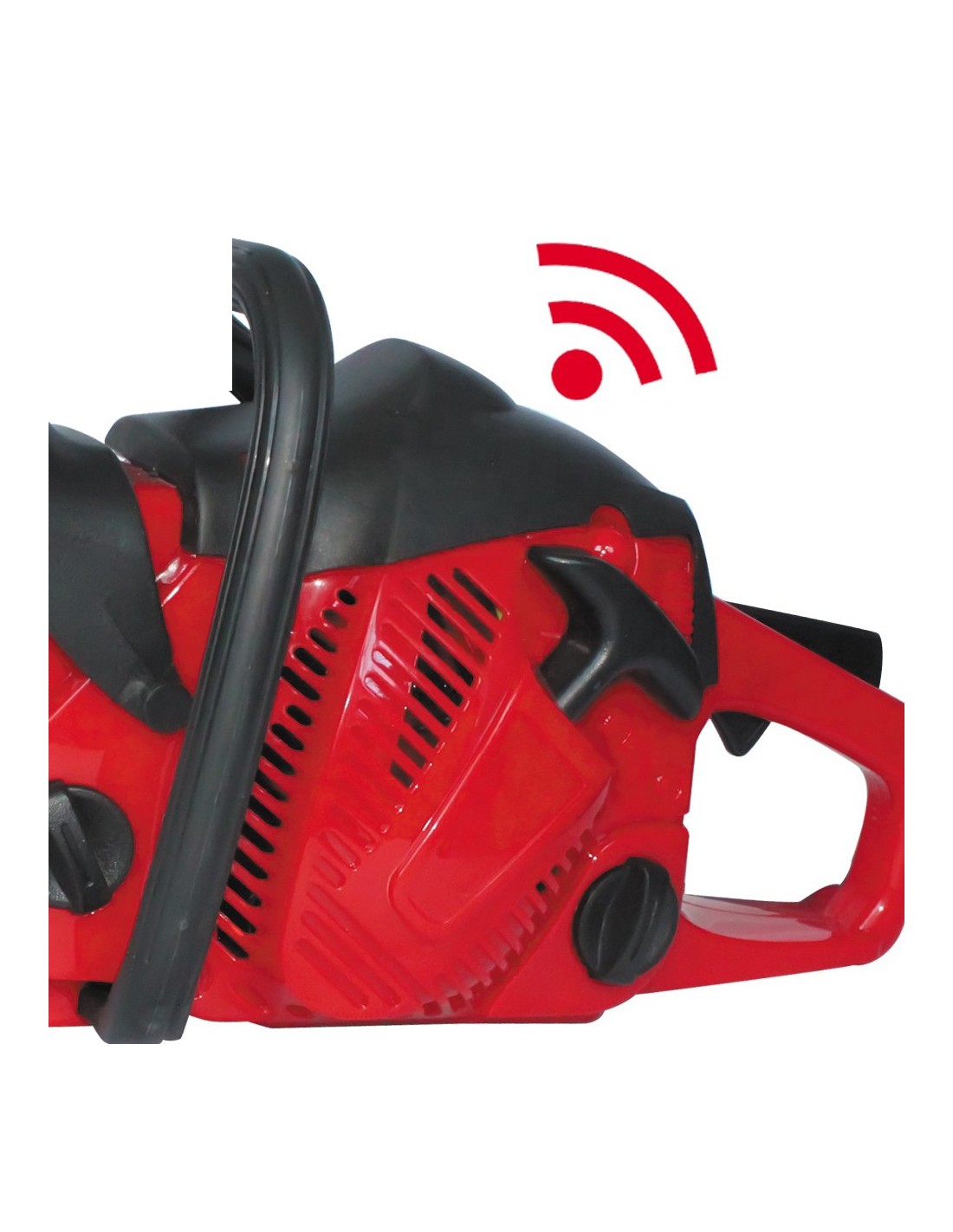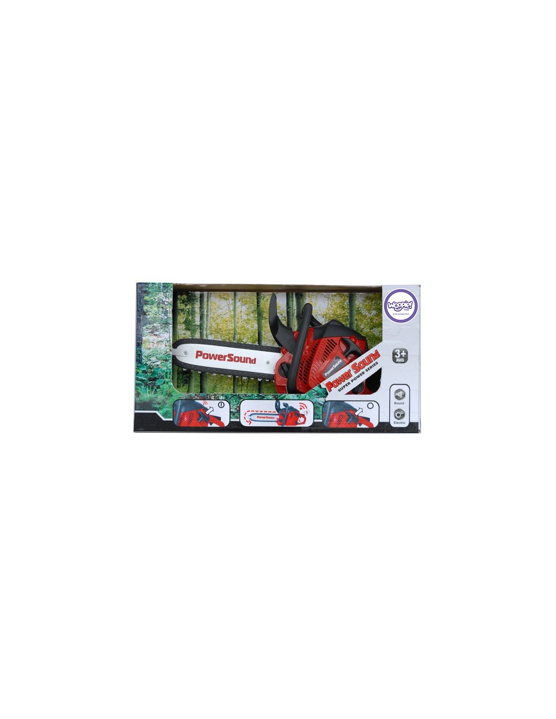 The WOOPIE Toy Chainsaw is 100% child-safe . The rotating chain of this toy chainsaw for children is made of rubber – there's no risk of injury. This chainsaw for children starts just like a real one ! To turn on the toy chainsaw, pull up the starter handle, then press the top button on the handle, and then the bottom button. Once this is done, the chain on the toy chainsaw will begin to rotate, and the toy will make realistic engine sounds. This toy chainsaw develops a child's imagination and allows them to feel like an adult doing important work.