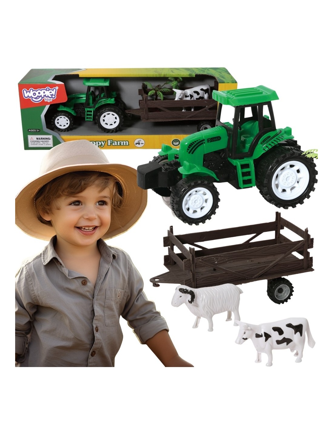 WOOPIE Farm Tractor with Trailer and Animals