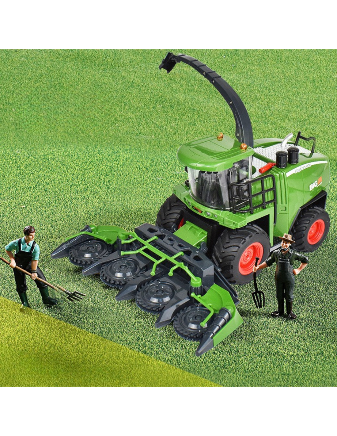 The Woopie inertial drive combine harvester is an impressive vehicle that transforms a room into a field full of adventure and realistic harvesting action. Large wheels, interchangeable functional front attachments, and a rotating chaff chute encourage real-world farm scenarios, sparking imagination and providing the immense satisfaction of operating the machine like a real operator.