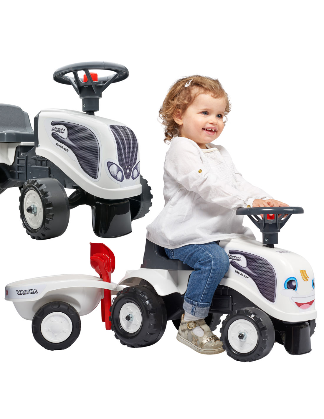 FALK Baby Valtra White Tractor with Trailer + accessories from 1 year