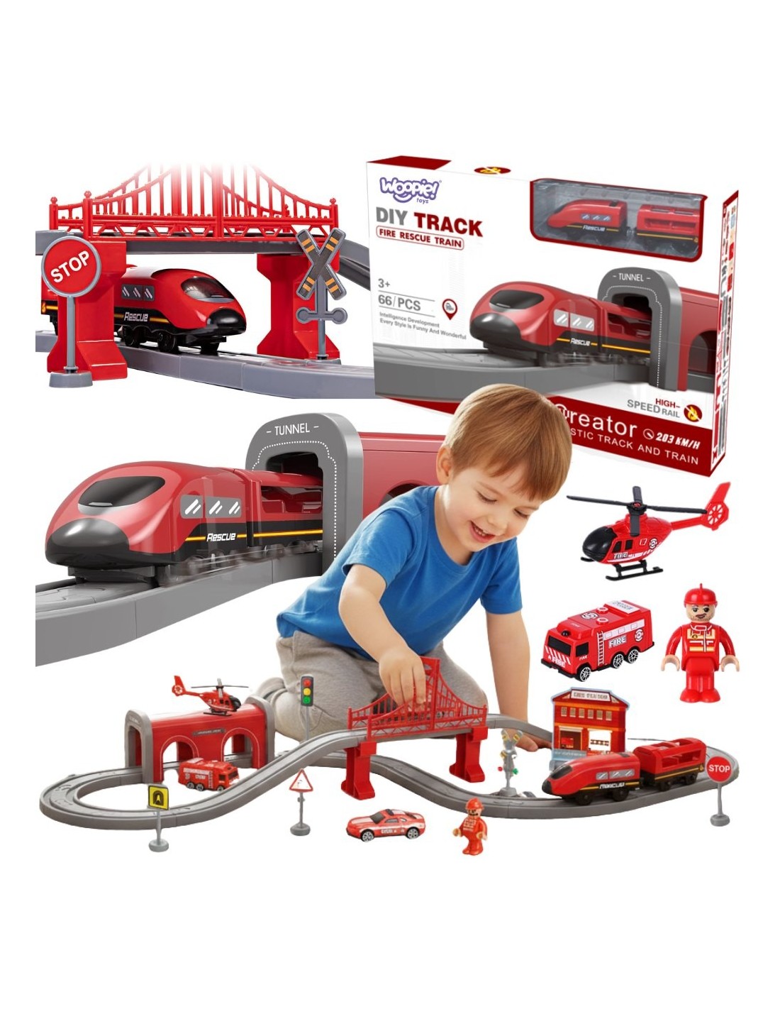 WOOPIE Pendolino Electric Train Set Fire Department 66pcs.
