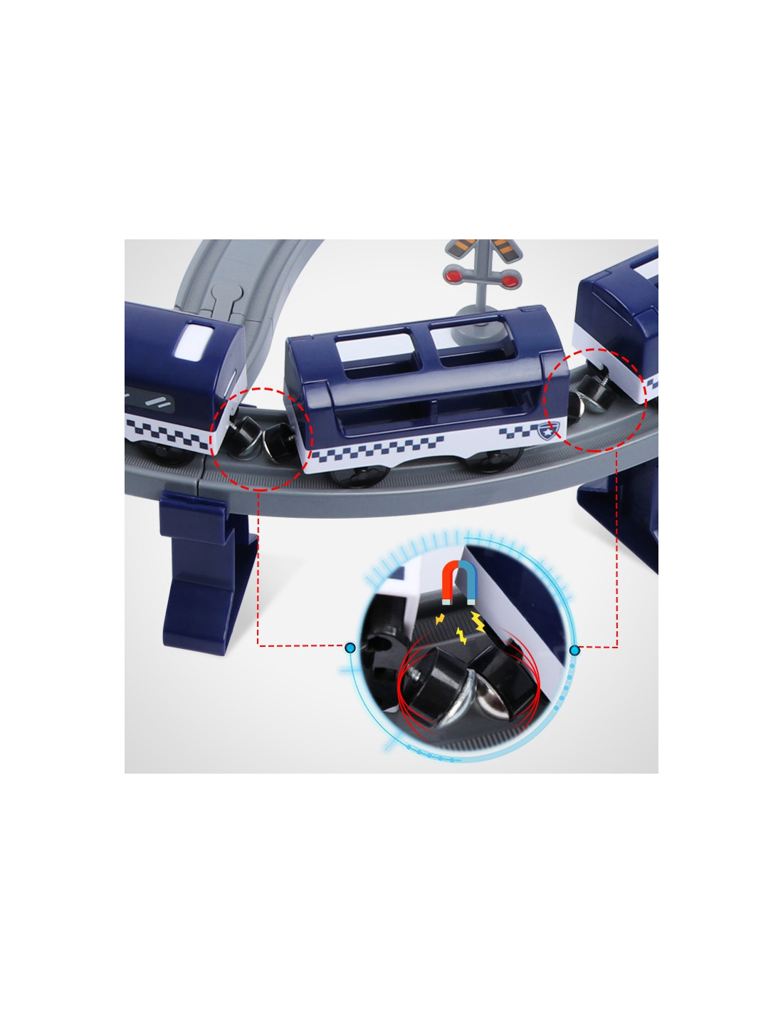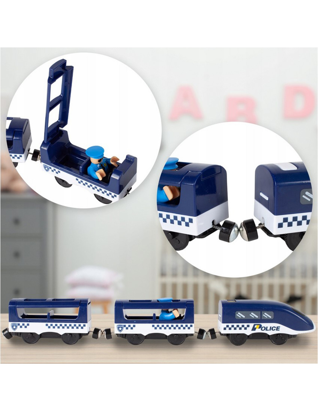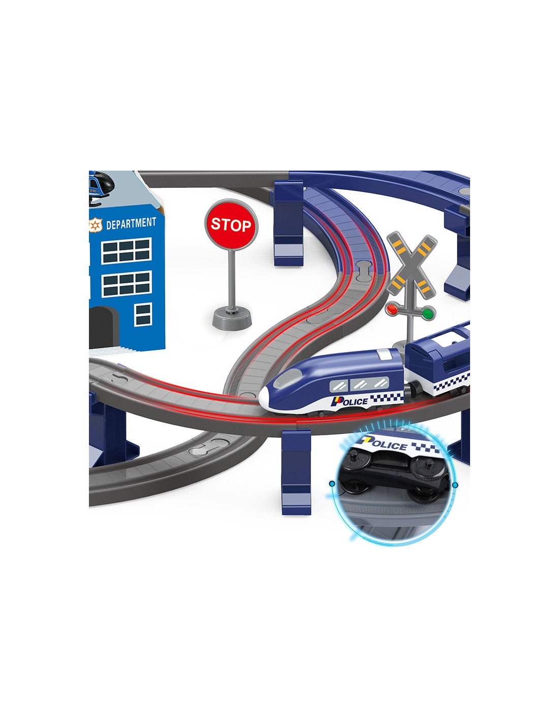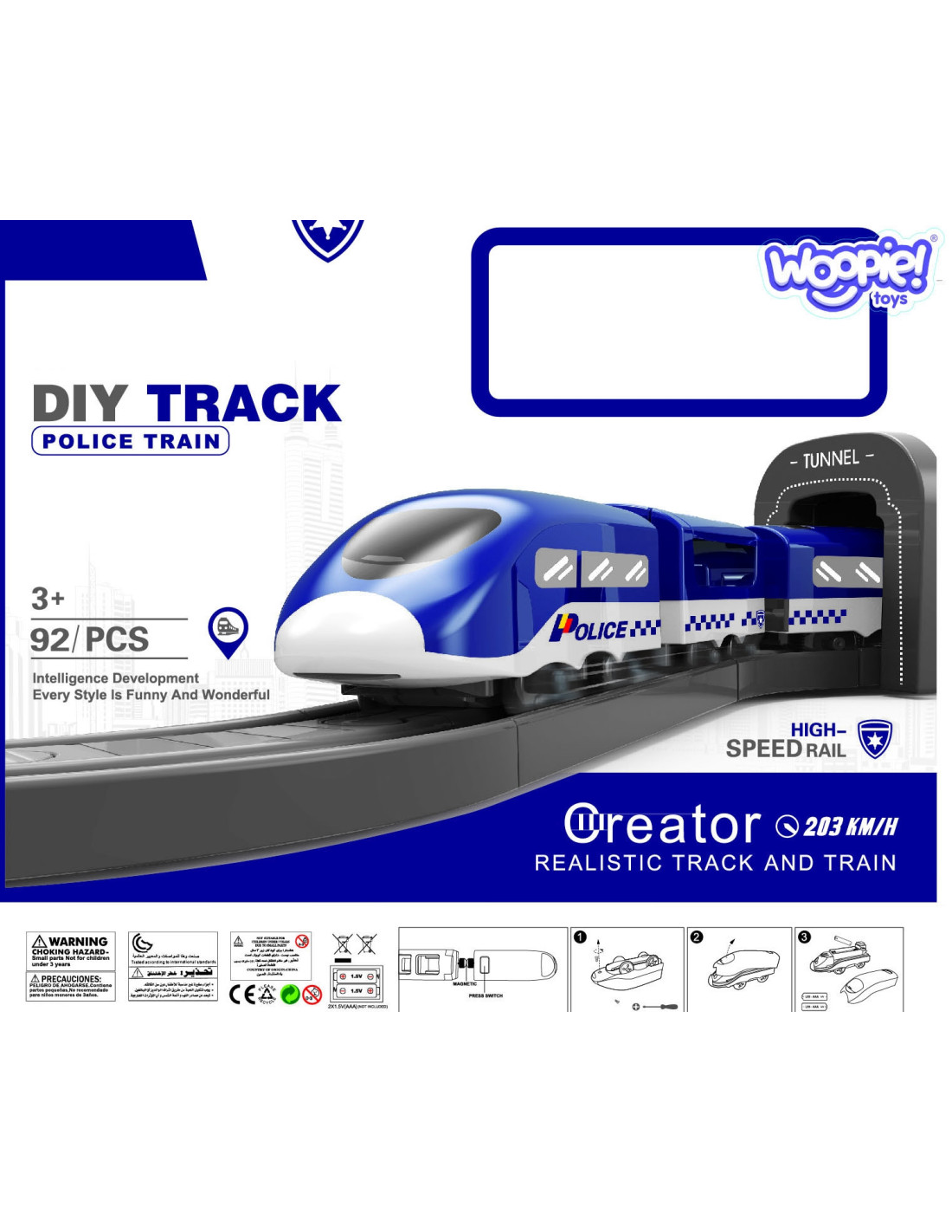 The Police Station Electric Train from the renowned Woopie brand is the perfect choice for your little automotive enthusiasts. This colorful train will delight children of all ages, providing numerous attractions and endless excitement. The set contains 92 pieces , including a modern battery-powered locomotive, track elements, police cars , and a helicopter. This toy offers not only tons of fun but also vast developmental opportunities for children. It particularly develops spatial awareness, technical skills, and, of course, imagination. The train is packaged in a unique box, making it perfect for a gift.