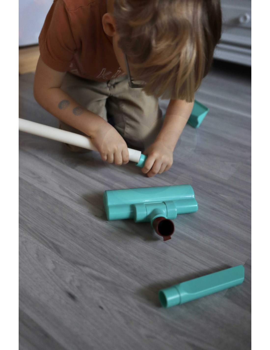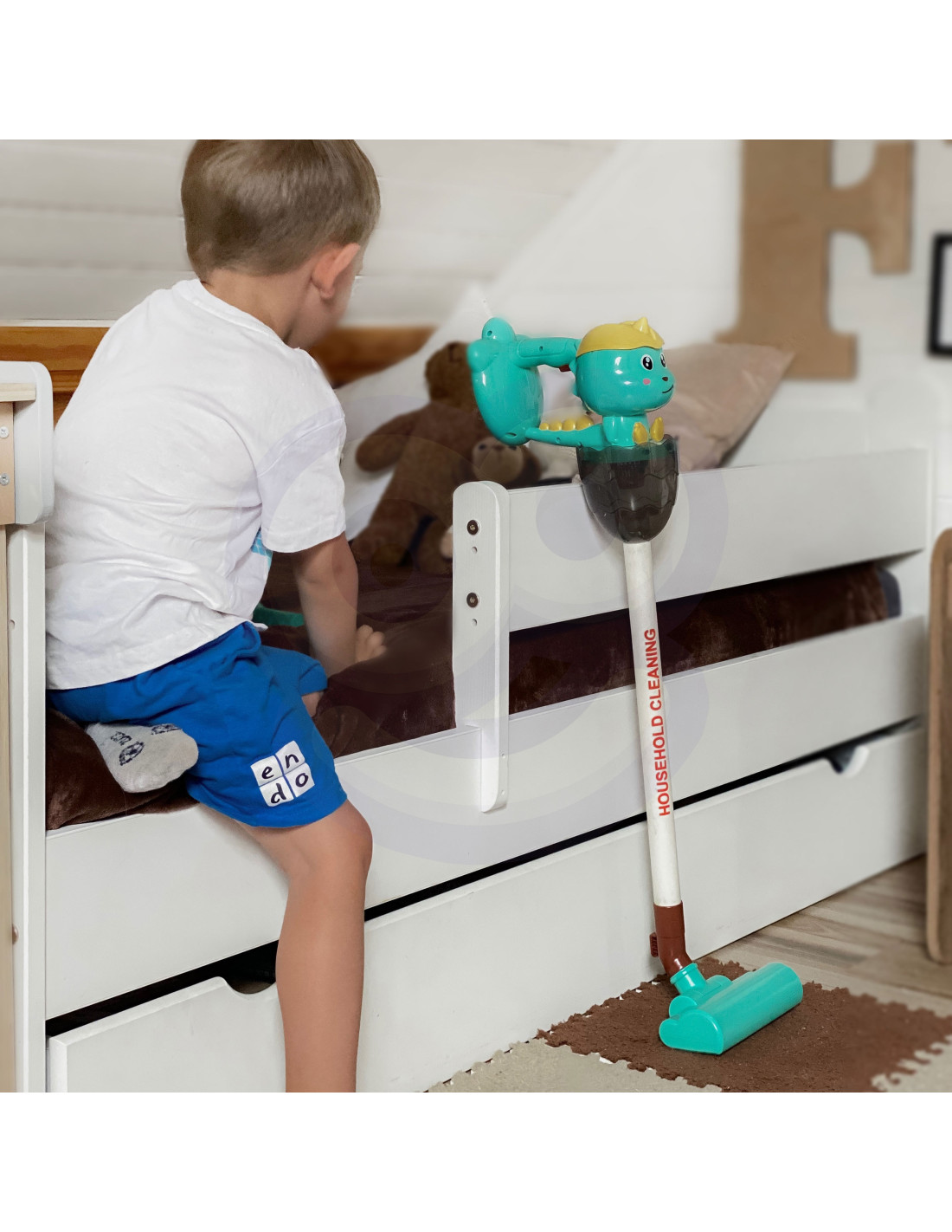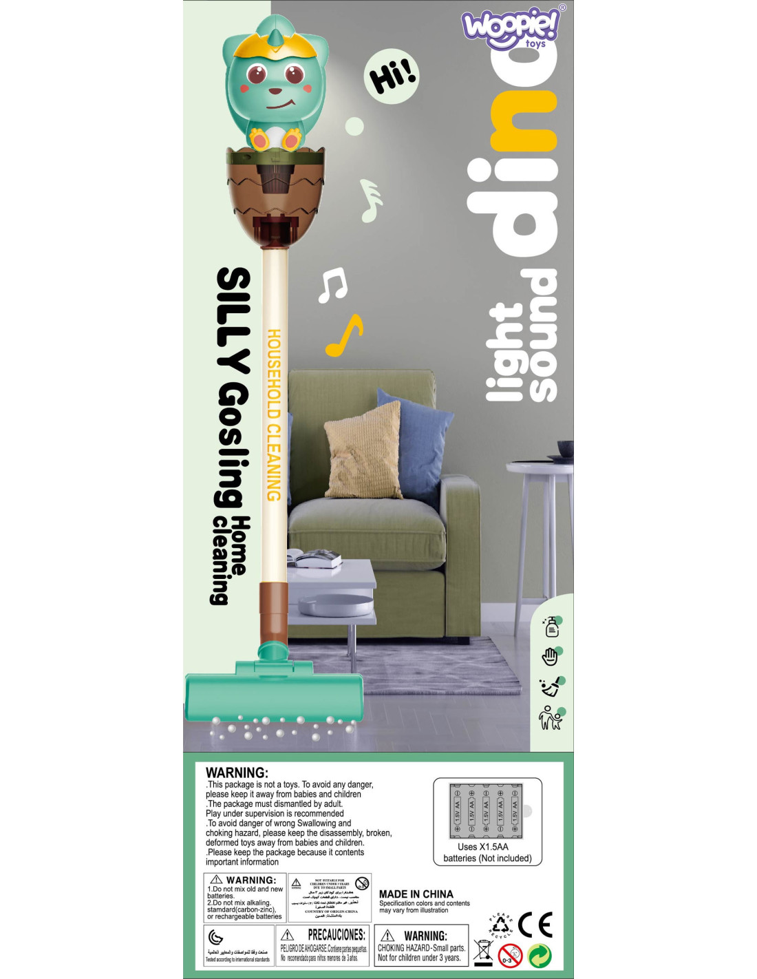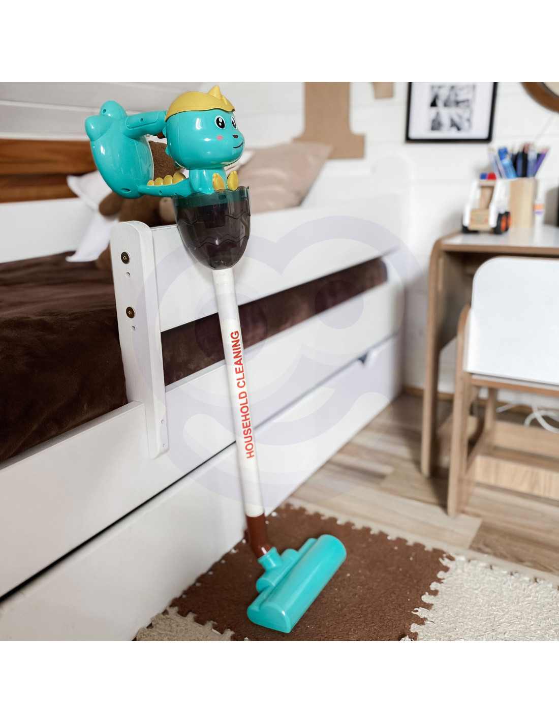 The Dino 3-in-1 vacuum cleaner from Woopie is the perfect choice for little home helpers. The suction function , sounds , and lights make cleaning even more realistic and engaging. The first click on the handle turns on the vacuum cleaner, the second activates a cheerful melody, and the third turns it off. The removable plastic waste container is easy to empty. The Dino Vacuum Cleaner has three brushes , allowing children to use the vacuum cleaner independently in three modes. The toy is made of high-quality , child-safe materials . The vacuum cleaner has a convenient handle , allowing children to carry it from place to place. It makes an ideal gift to help children imitate their parents , because what child wouldn't want to be an adult?