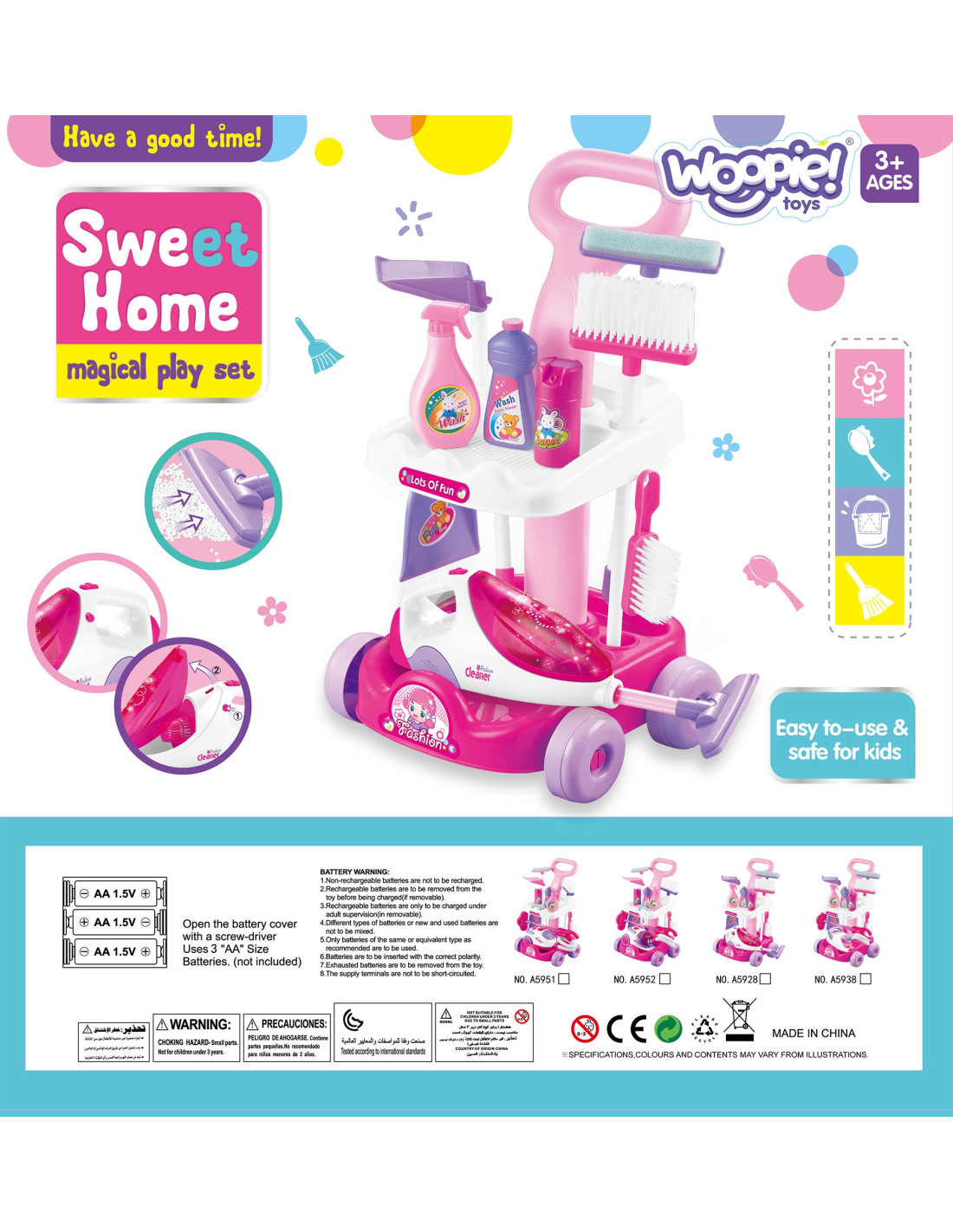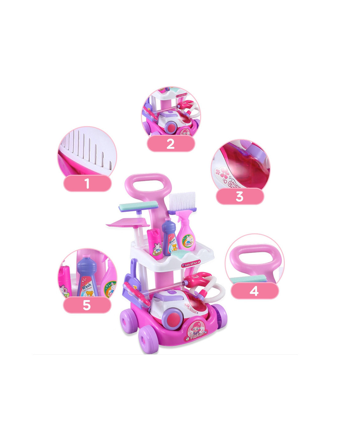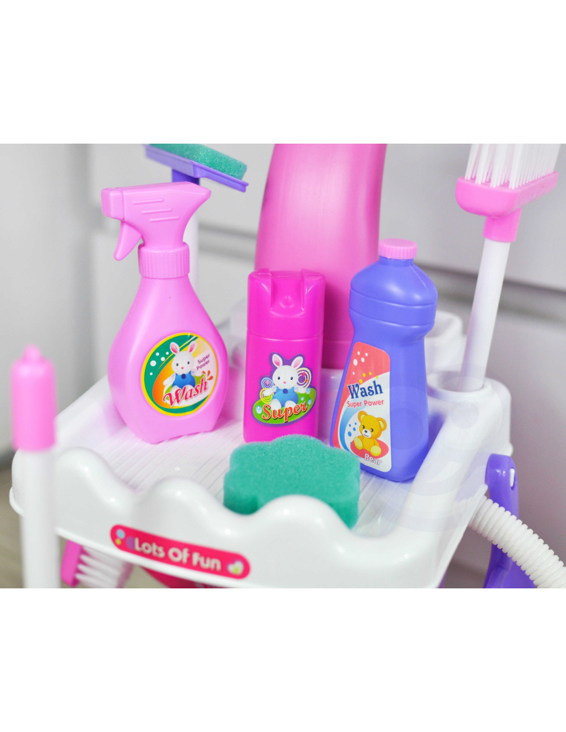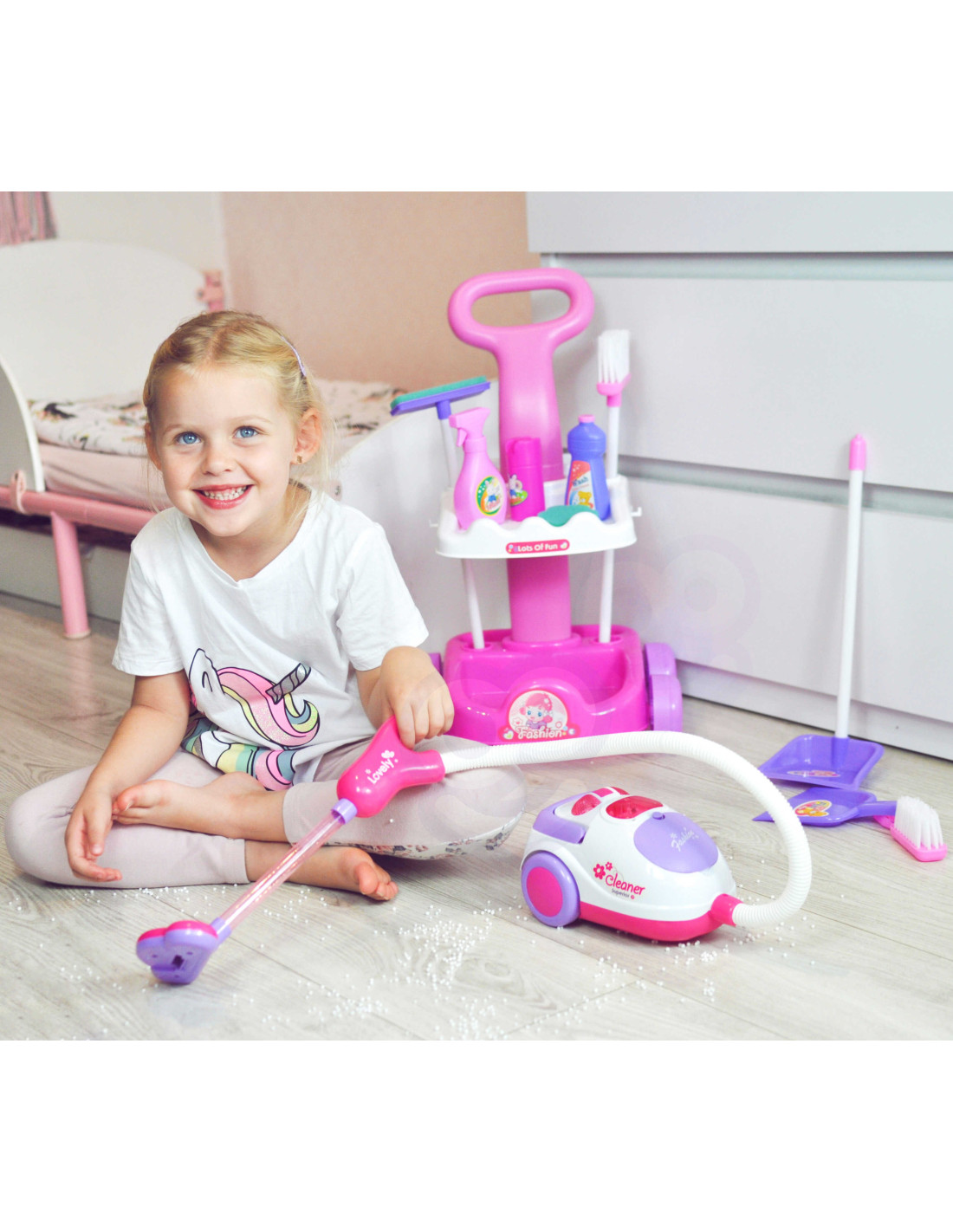 A cleaning set from the renowned brand Woopie is the perfect gift idea for a little girl. This highly professional set replicates the real- life cleaning equipment used by adults. The pink and white cart is equipped with additional accessories so that children can help parents clean. The vacuum cleaner is equipped with an on/off switch and a power indicator light. Playing with cleaning from a young age can be a great way to learn to keep things clean . Little ones love imitating adults. With a set like this, it will be much easier!