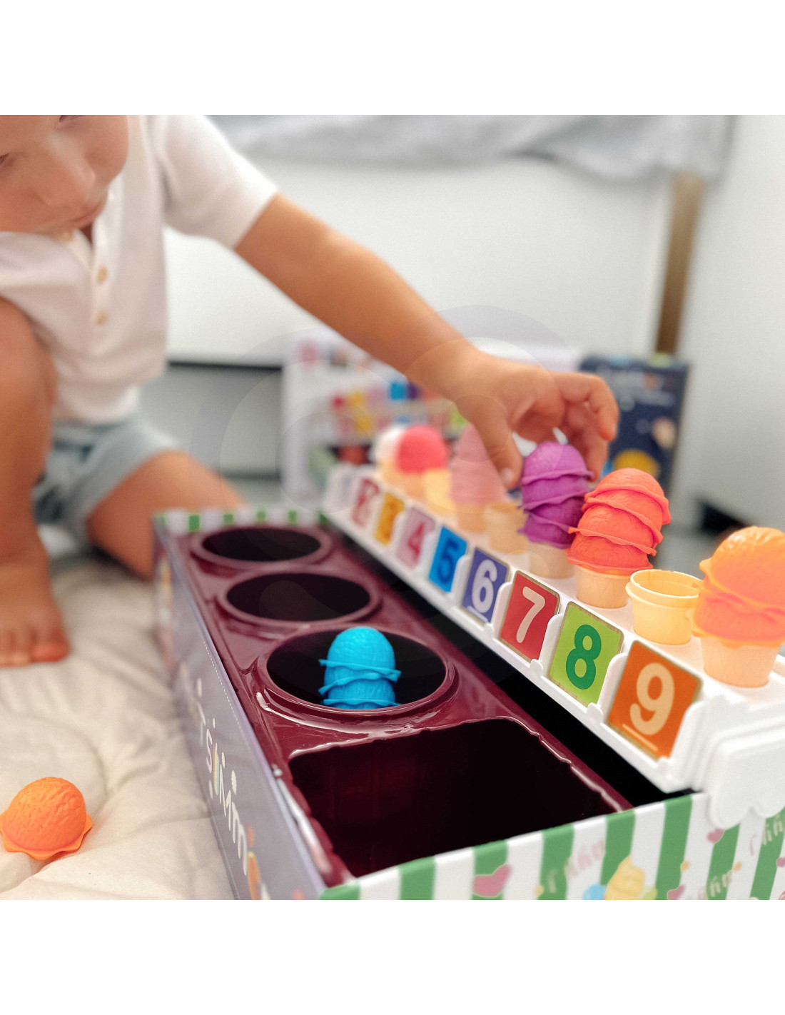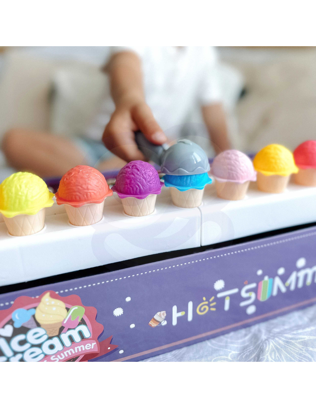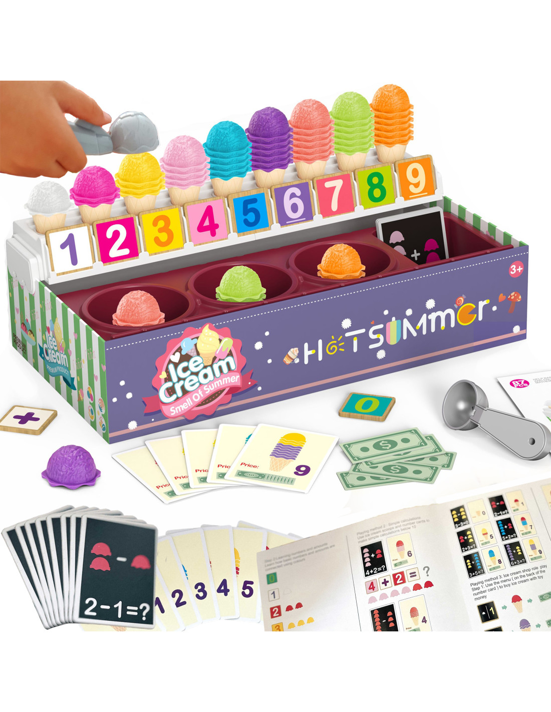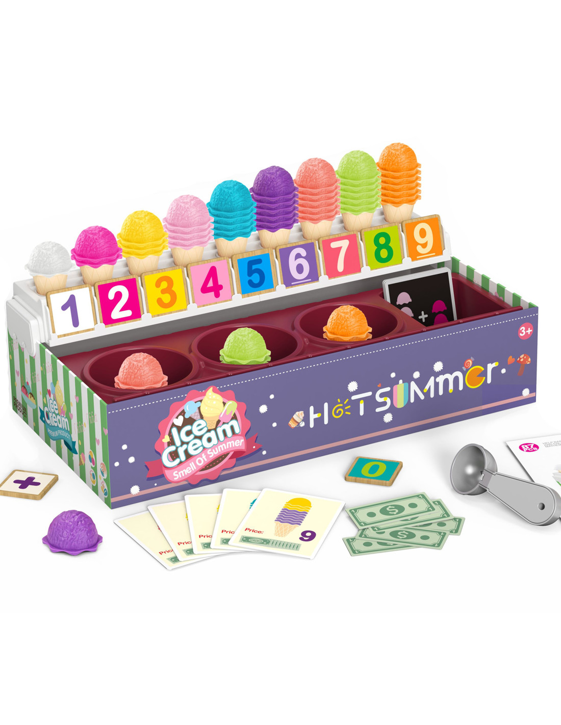 The Ice Cream Parlor set from WOOPIE not only lets you play as a little ice cream vendor, but also teaches counting, numbers, colors, and addition. The set includes 87 pieces , including ice cream scoops, wafers, order cards, money, number tokens, and an ice cream scoop. The number of ice cream scoops varies depending on the color, and the order cards include simple math problems . Through role-playing, children develop their communication skills , reduce stress in everyday situations, and provide an excellent lesson in empathy .