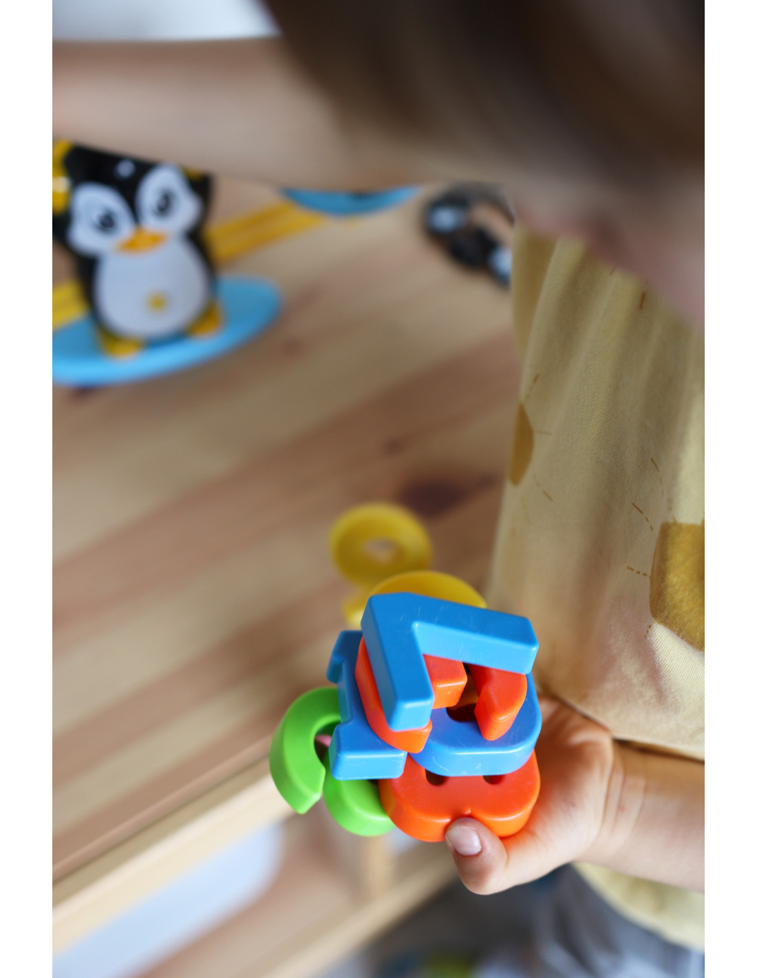 The Penguin Balanced Scale from WOOPIE will develop your child's cognitive skills. Place a number on one side of the scale and the appropriate number of penguins on the other. If the answer is correct, the bowls will be level. The set also includes cards with various mathematical examples. You can create your own mathematical operations for your child and add variety to their playtime. The scale will be a great opportunity to play together with your child, during which your little one will learn cooperation and effective communication . This toy will make learning math a real pleasure and encourage your little one to continue learning . The toy develops cognitive skills, including size recognition and manual dexterity , and stimulates imagination , encouraging creative and unconventional thinking.