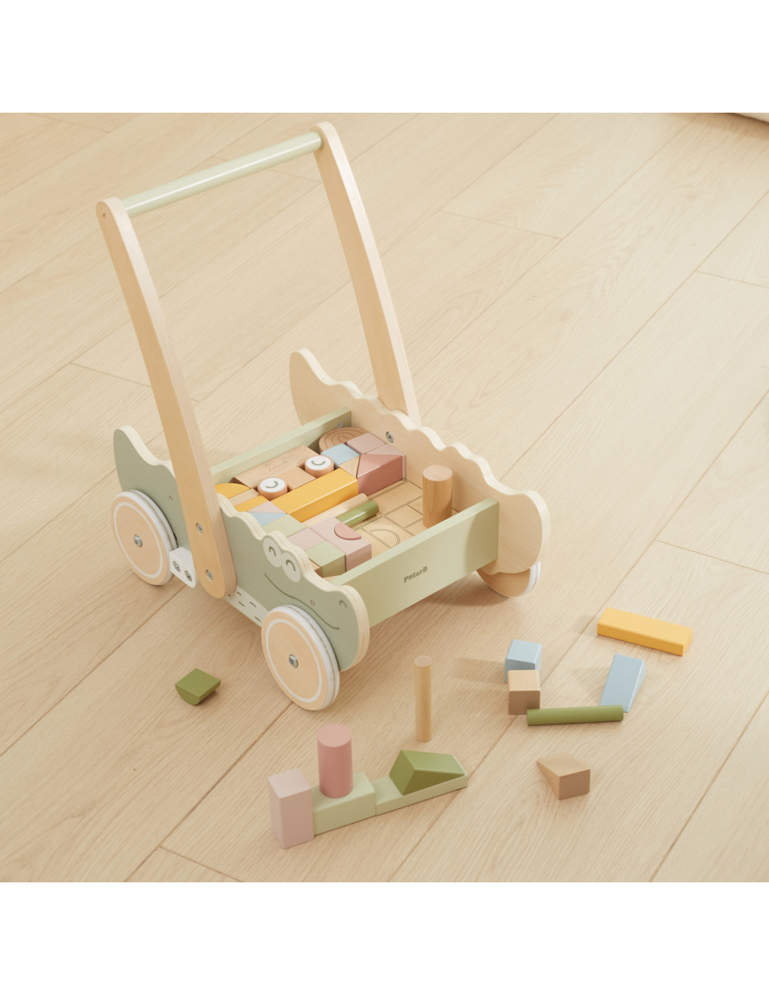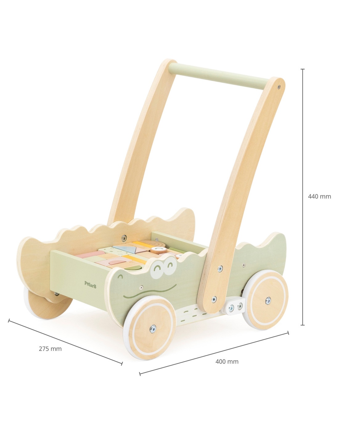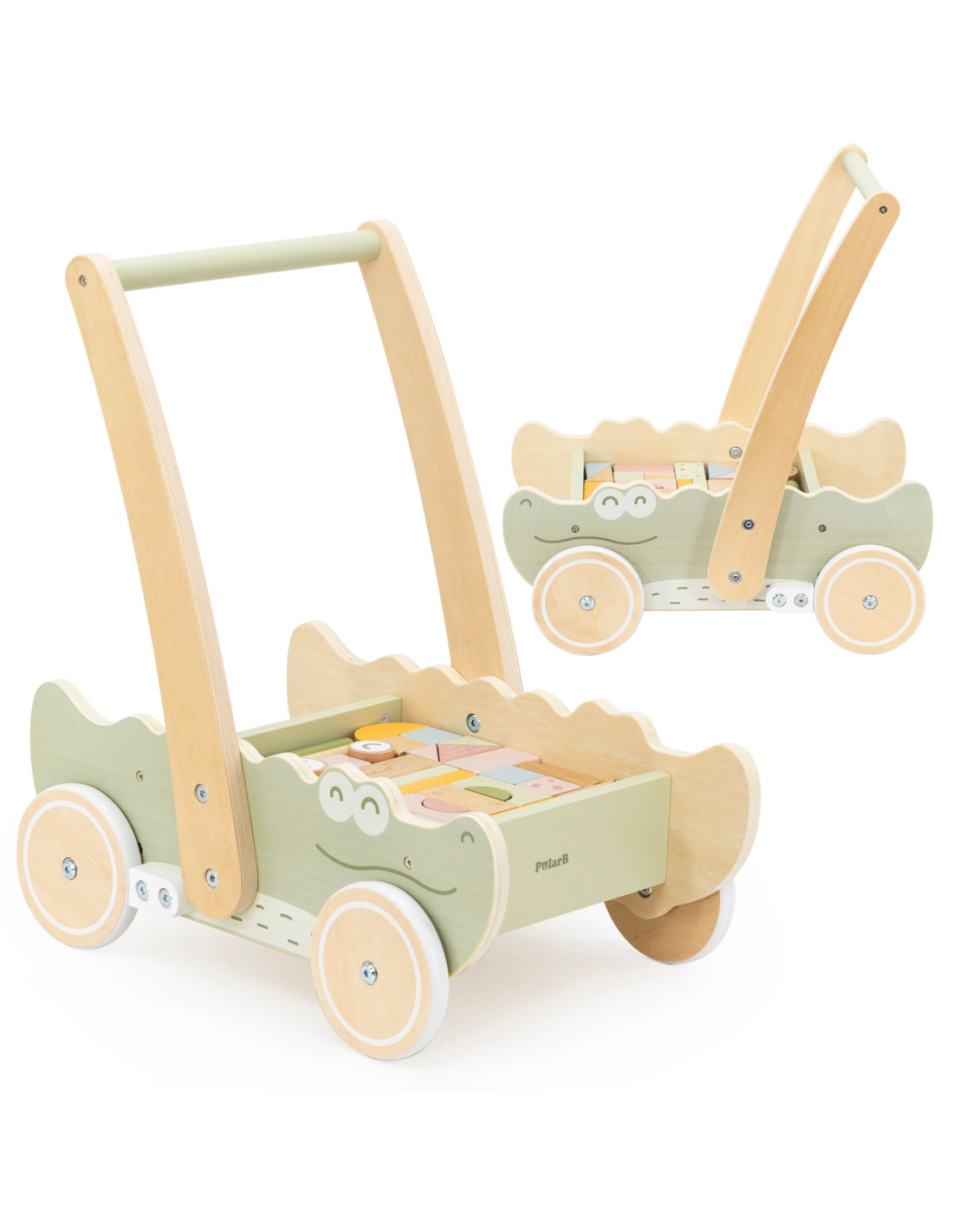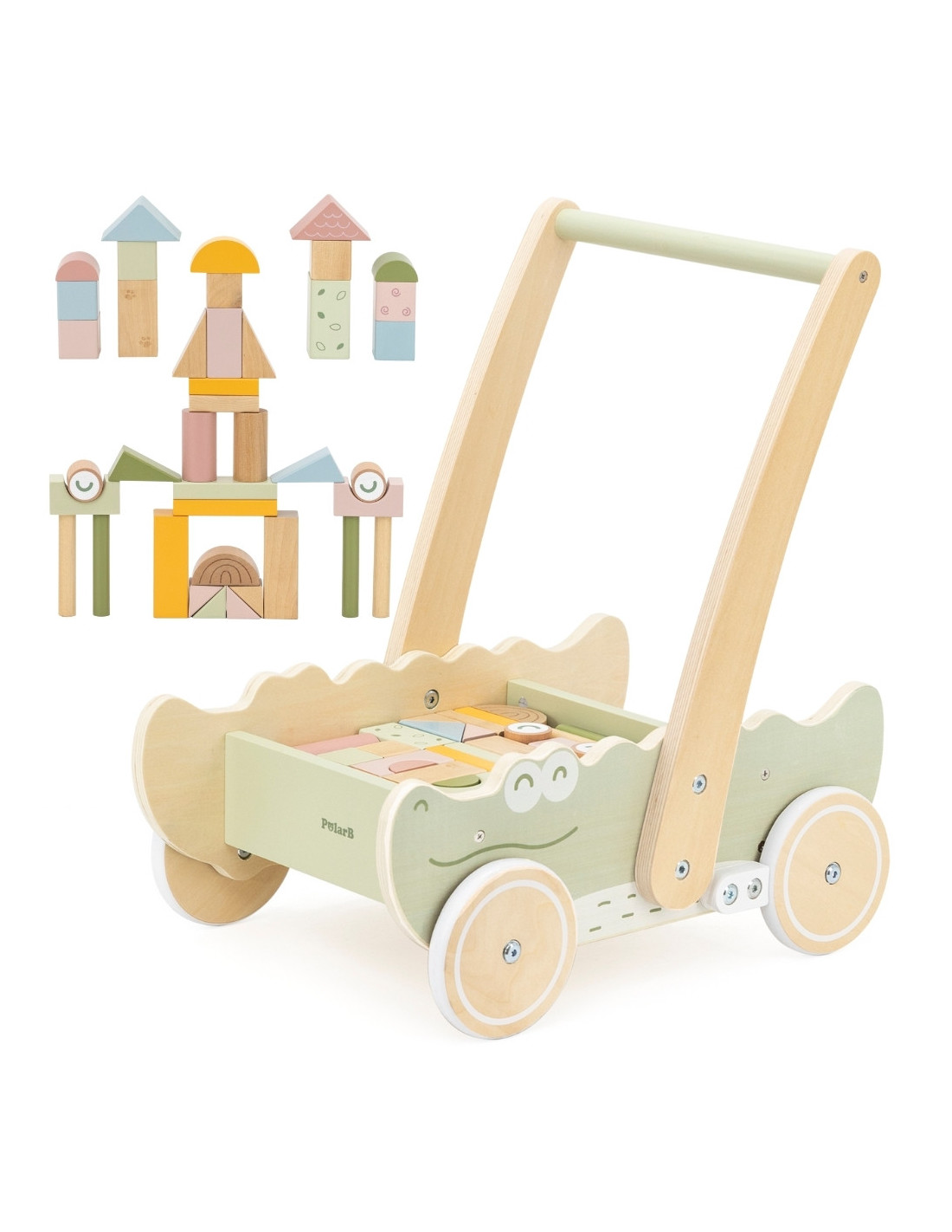 Discover the joy of first steps with our adorable crocodile -shaped push walker ! This multi-functional toy is the perfect companion for your little one's development. The stable construction and comfortable handle provide safe support as they learn to walk, while the colorful blocks inside the walker encourage creative play and motor skills development.