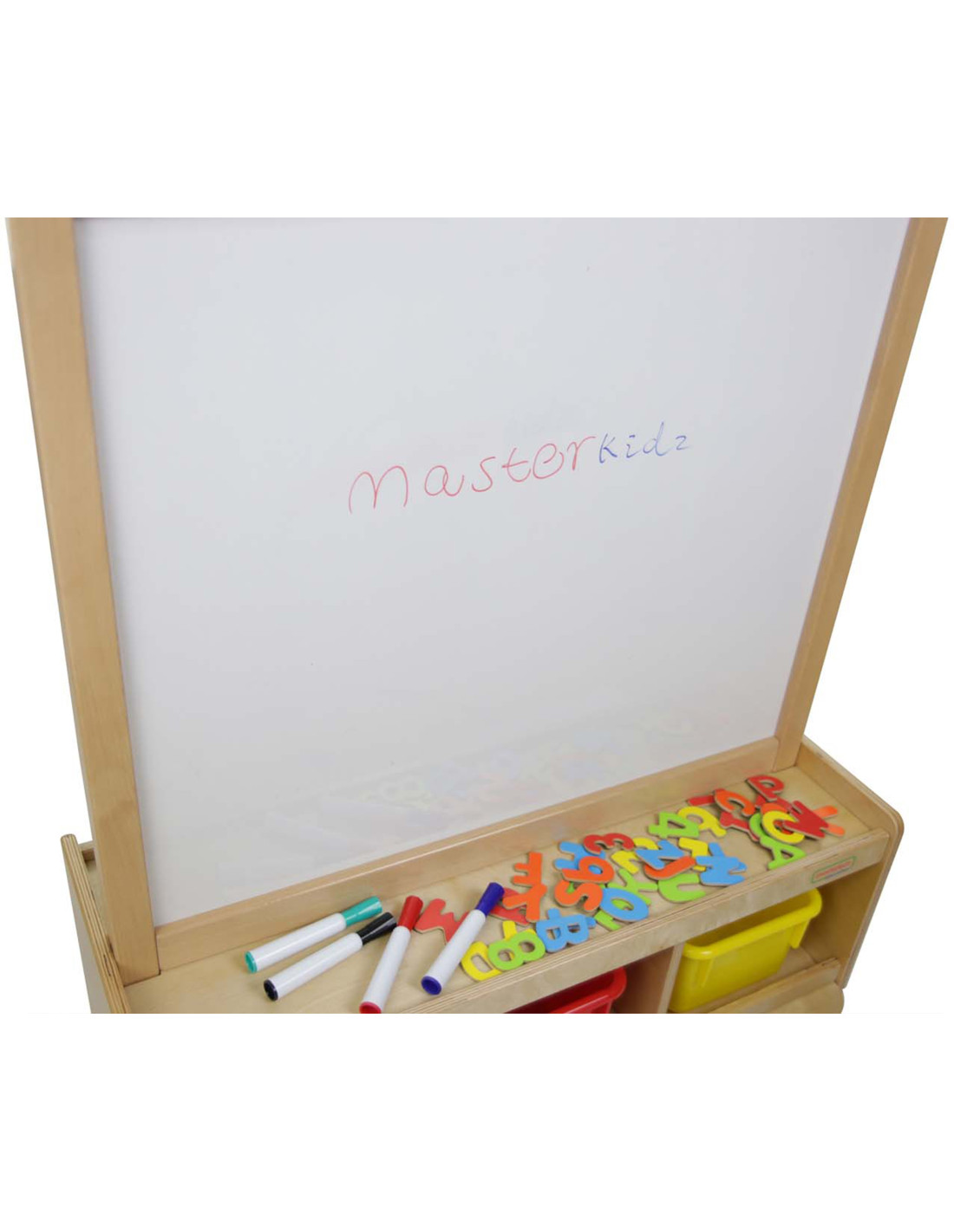 The double-sided magnetic board from Masterkidz is a great solution for educational spaces, supporting children's creativity, learning, and play. Its solid construction of natural wood, the ability to use two different surfaces, and its ease of movement make it ideal for both home and educational settings. Its simple and functional design allows children to freely draw, write, and engage in collaborative play.